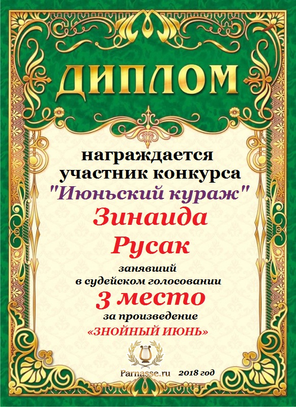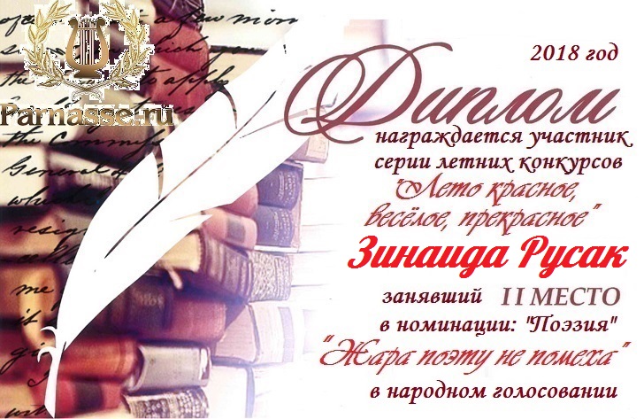 ТРЕТЬЕ МЕСТО в судейском голосовании конкурса "Жара поэту не помеха". Поздравляем, Зинаида!
