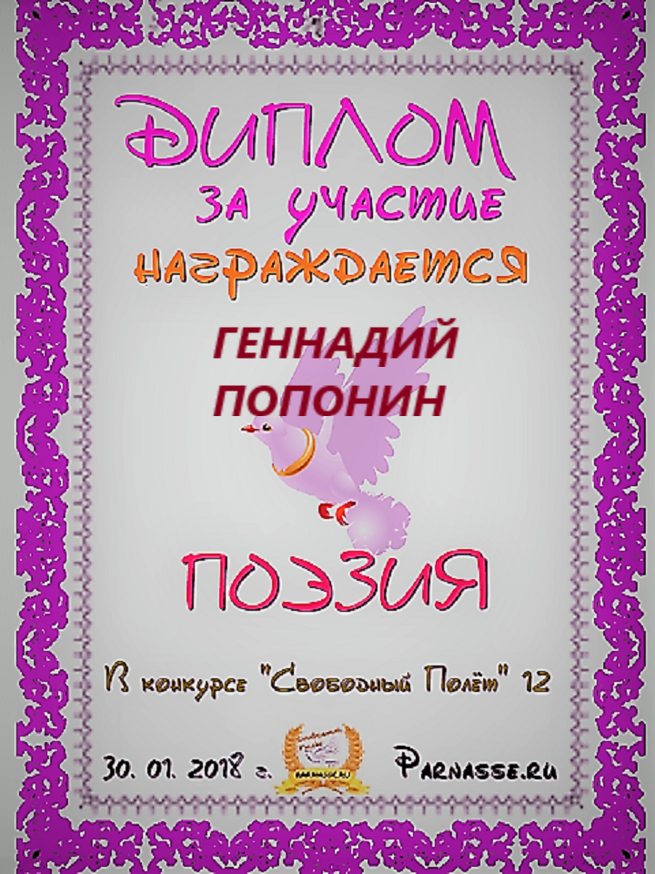 Диплом за участие в конкурсе "Свободный Полёт" 12