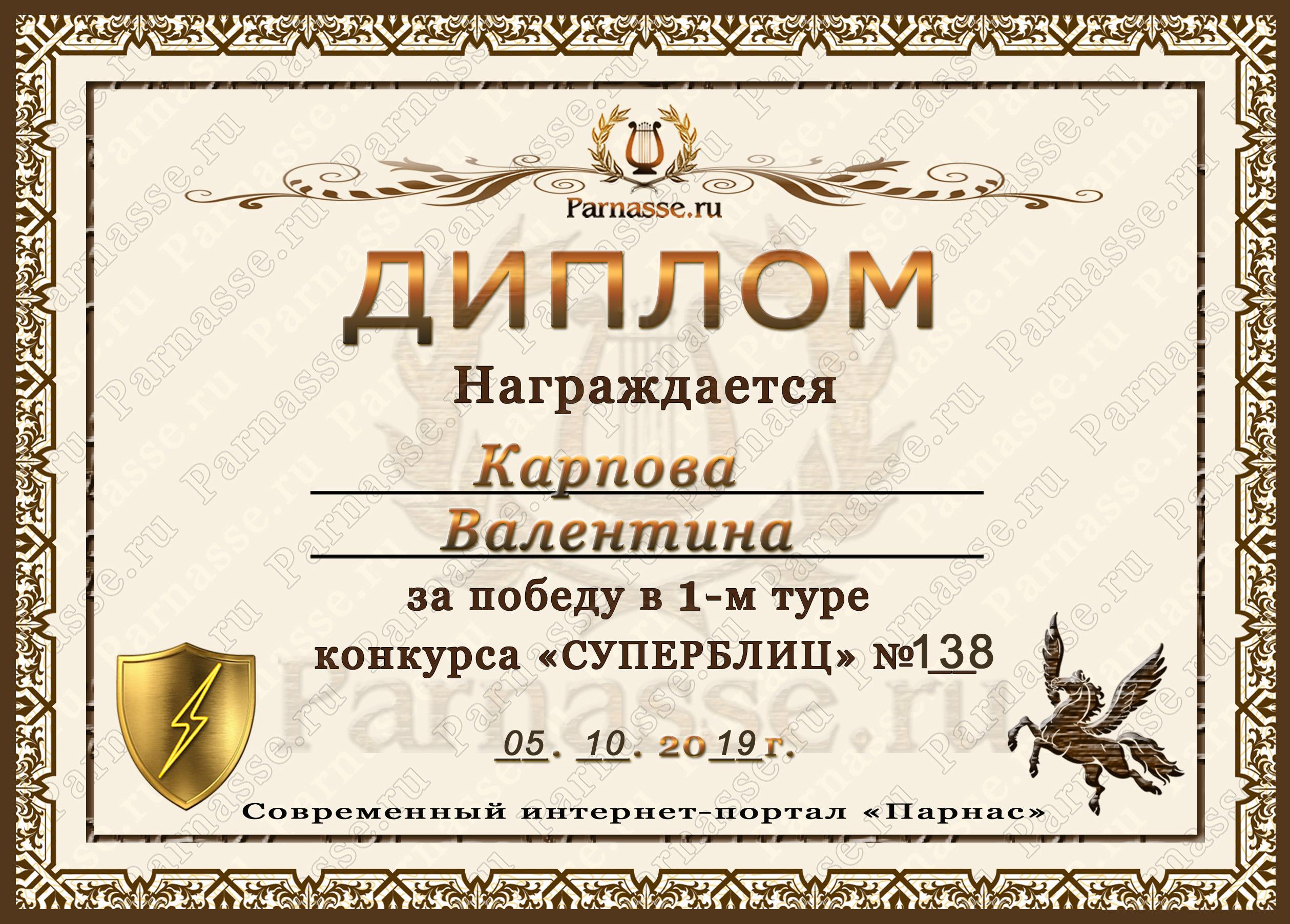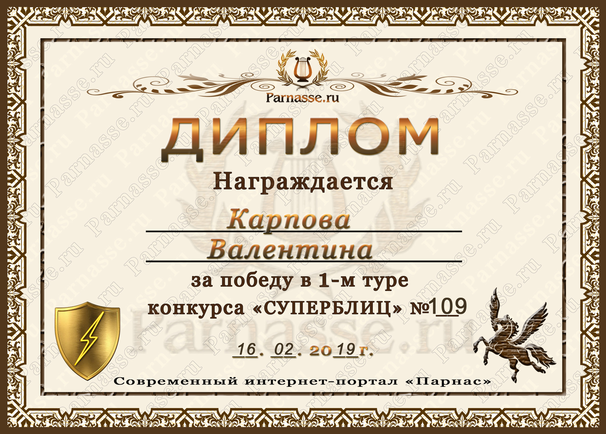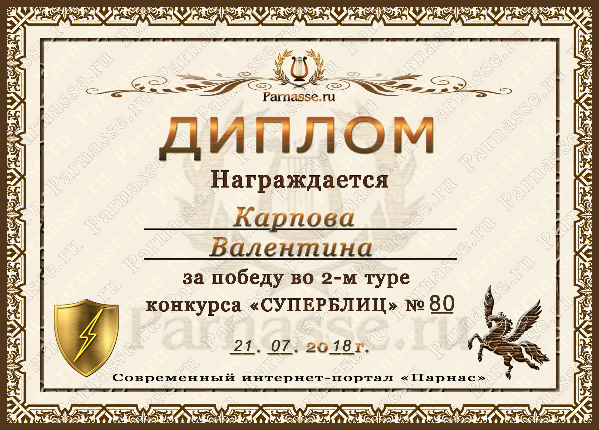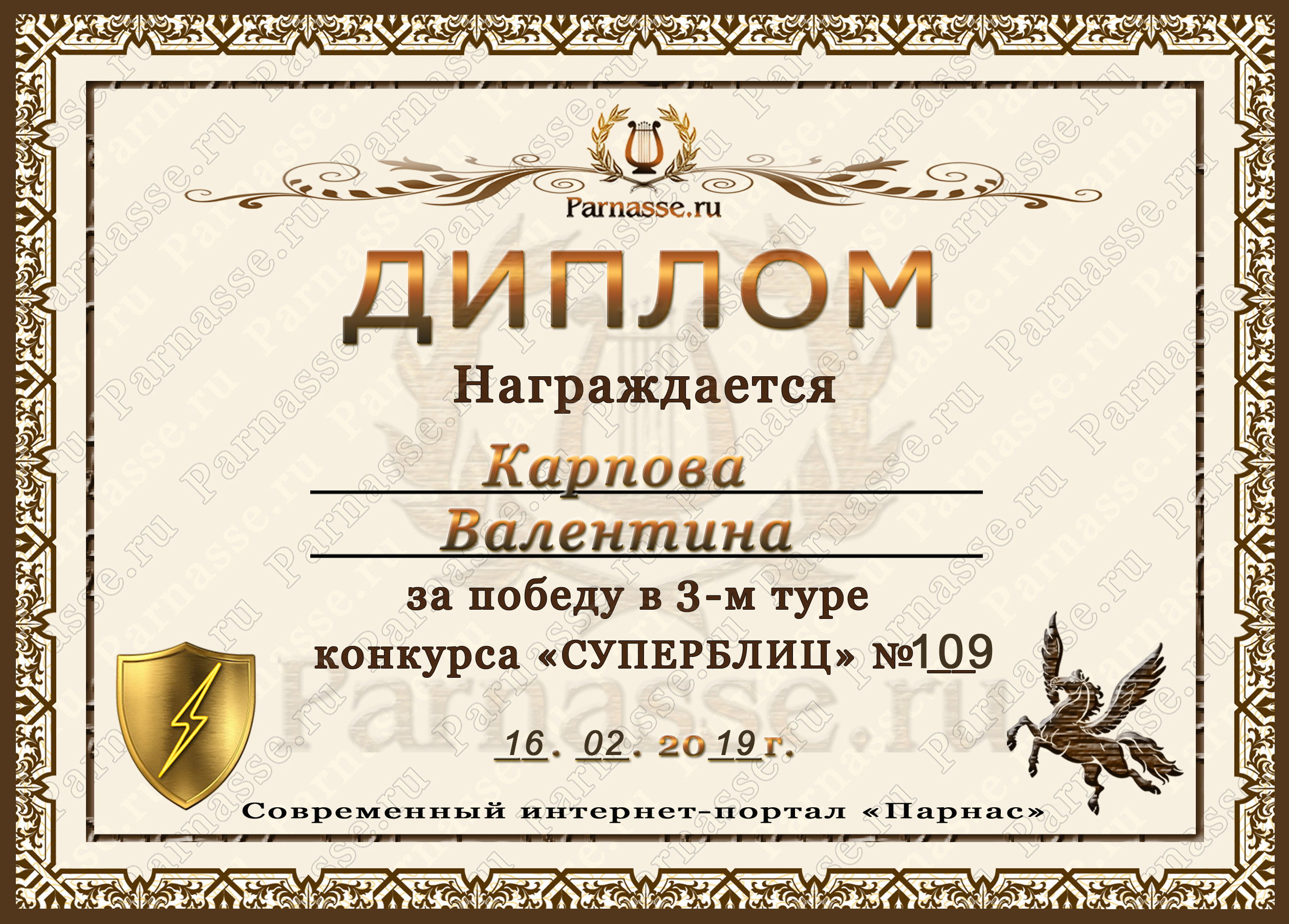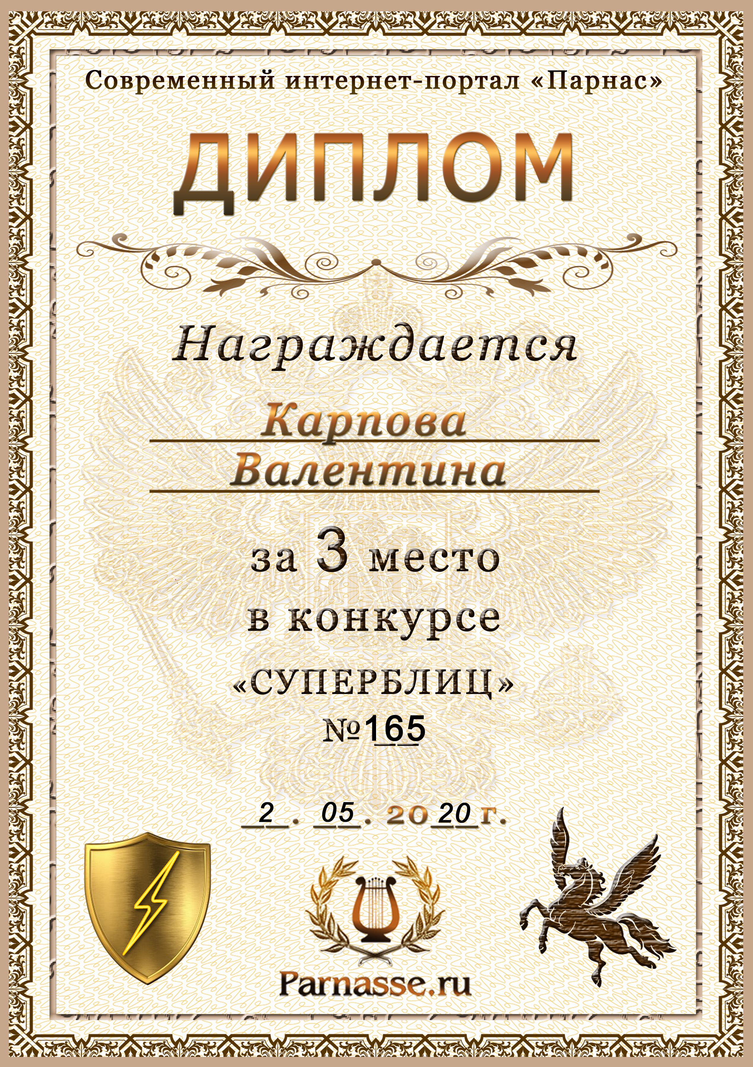 Диплом за победу во 2 туре в конкурсе СУПЕРБЛИЦА № 162! ПОЗДРАВЛЯЮ!