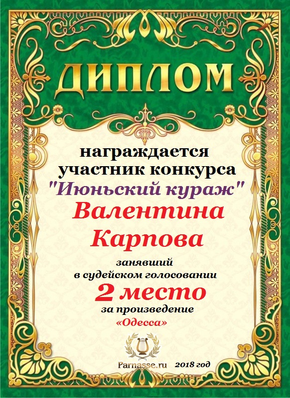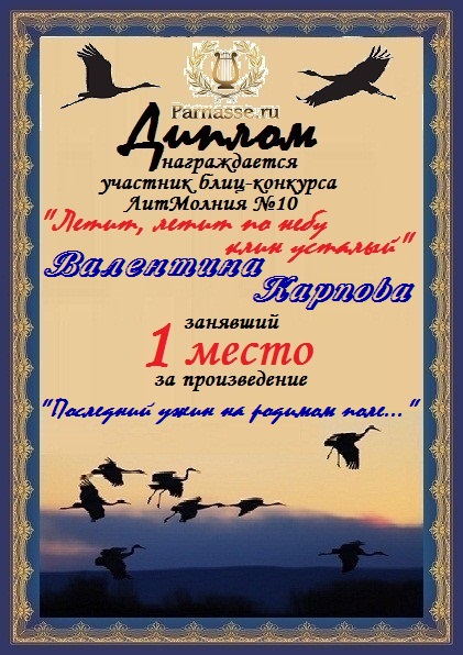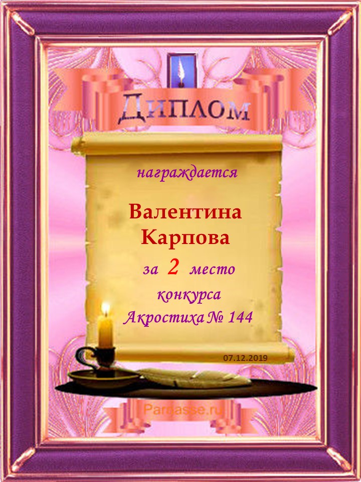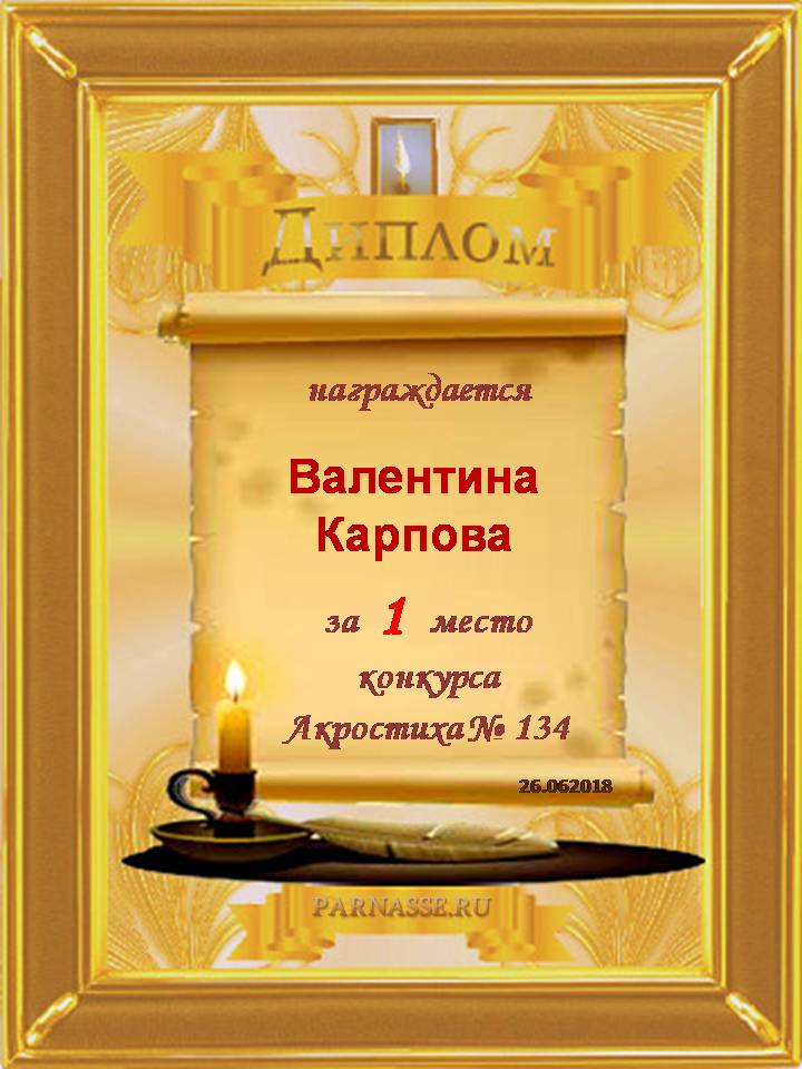 Диплом за 1 место в 144 конкурсе АКРОСТИХА (Альтернатива)! ПОЗДРАВЛЯЮ!