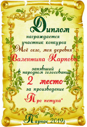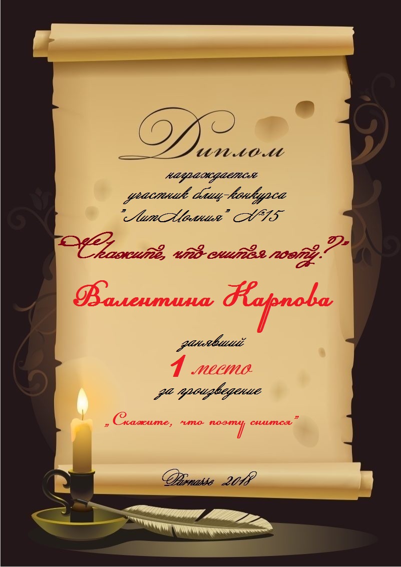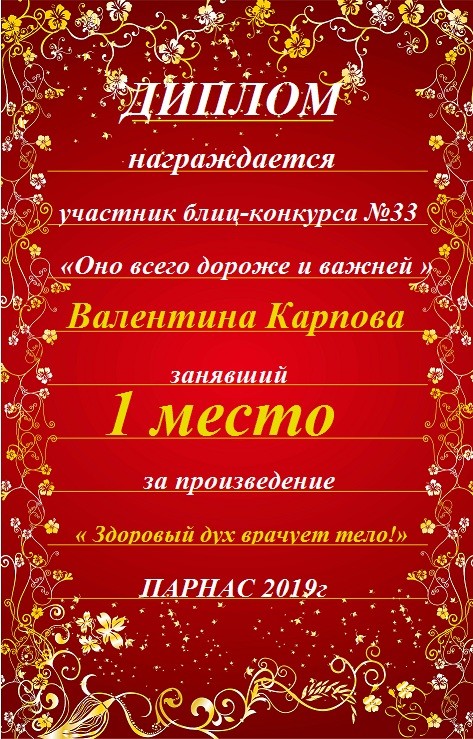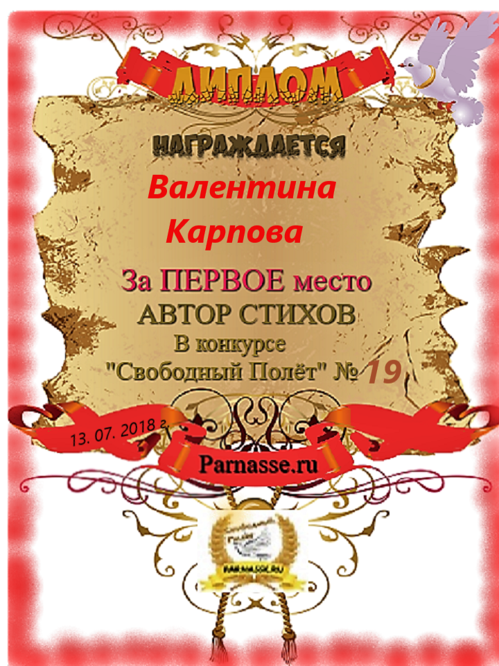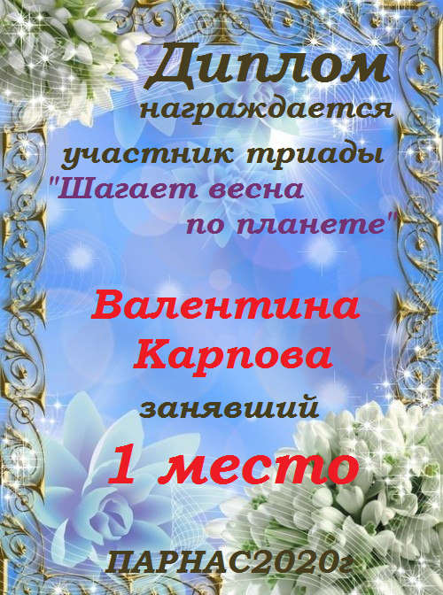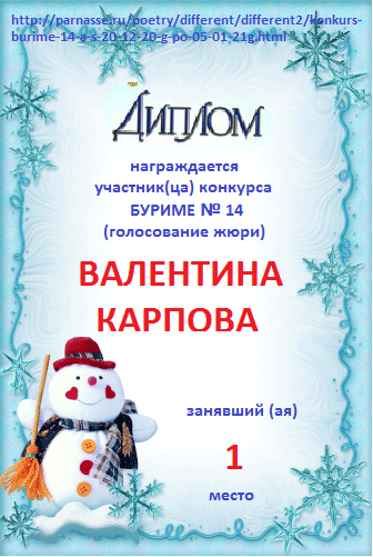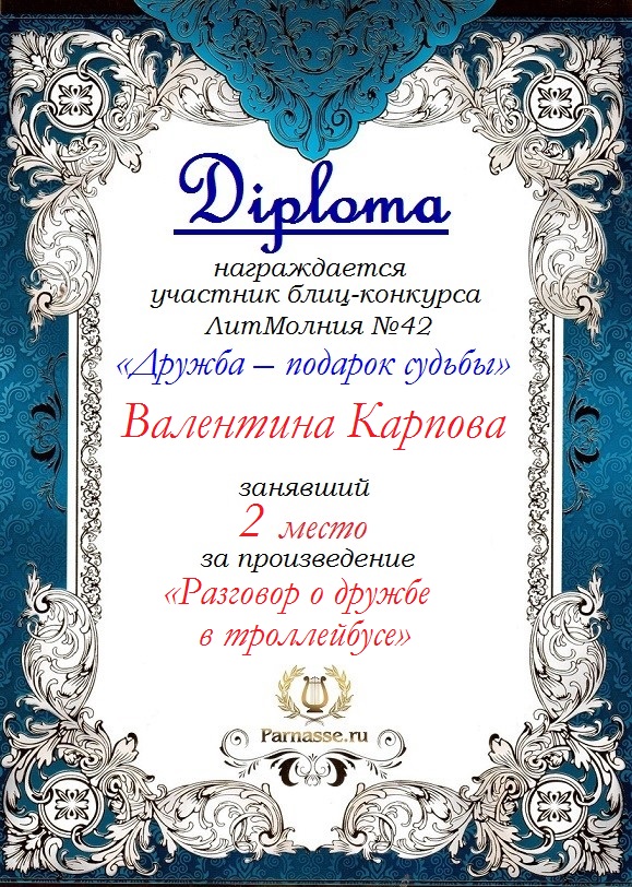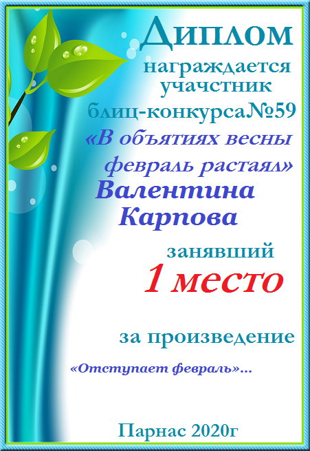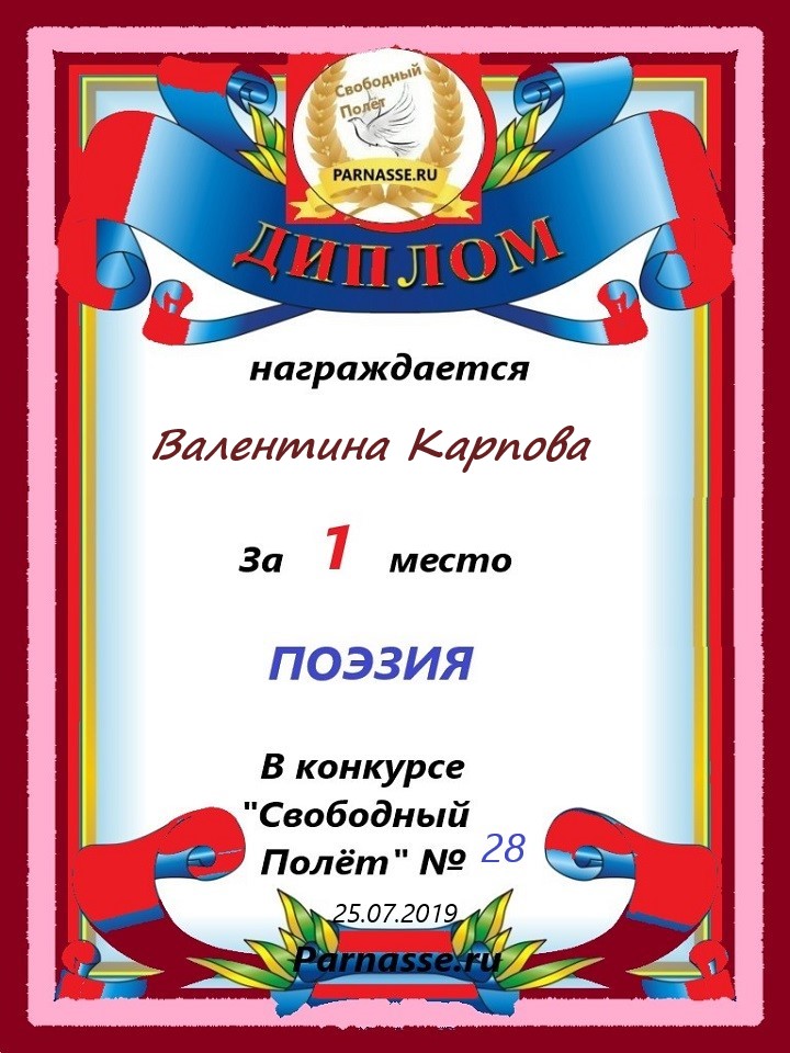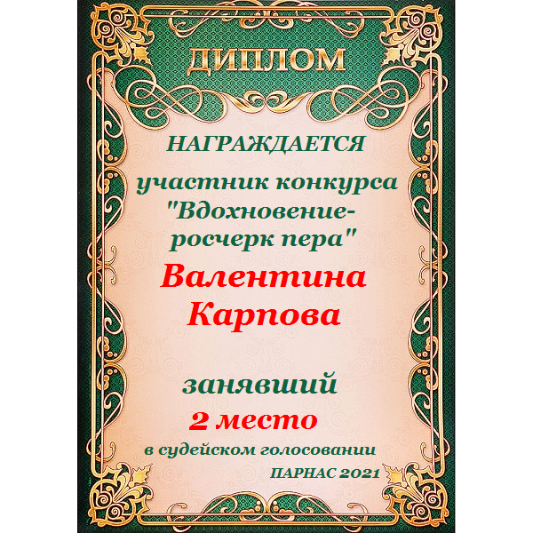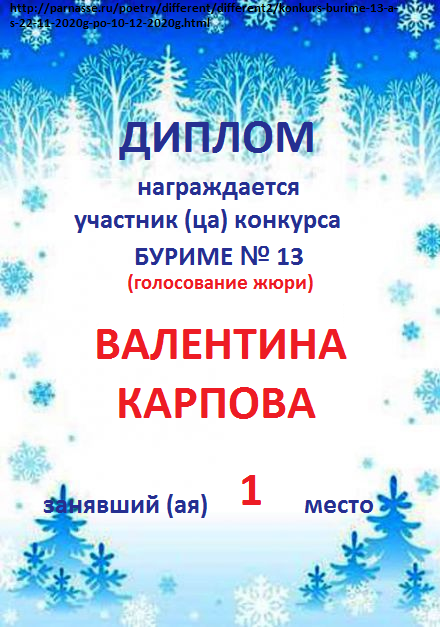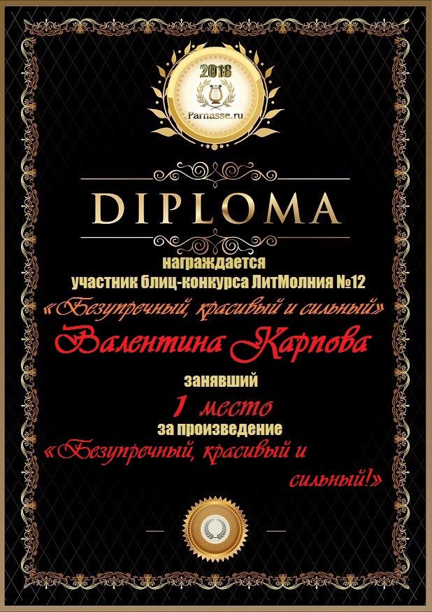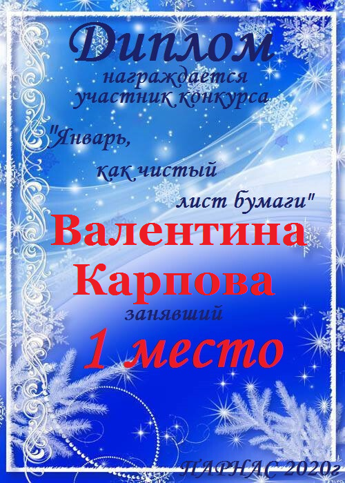 Диплом за 1 место в 138 конкурсе АКРОСТИХА (Альтернатива)! ПОЗДРАВЛЯЮ!
