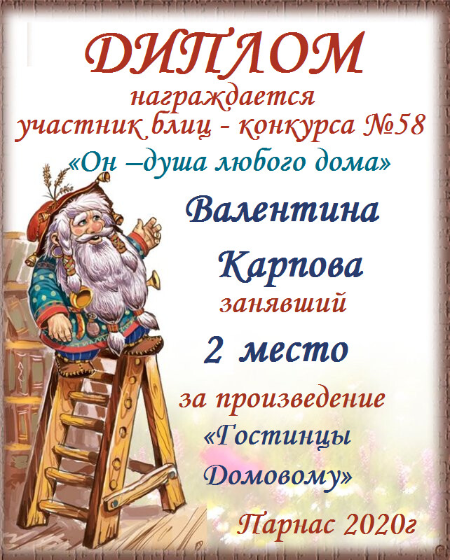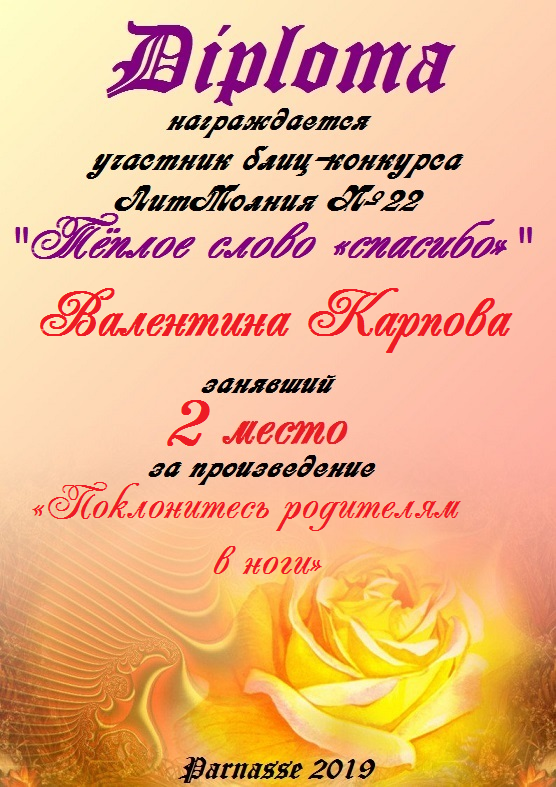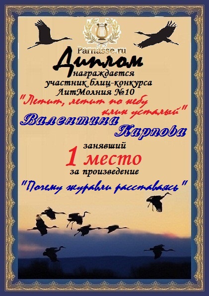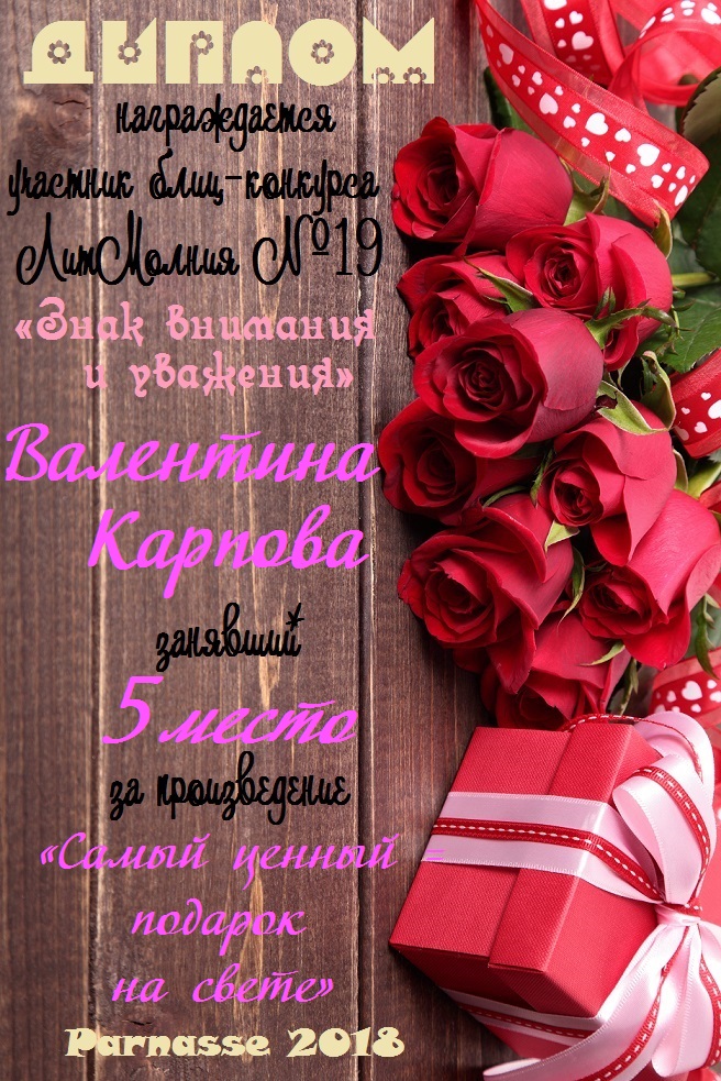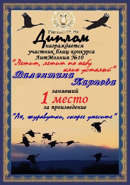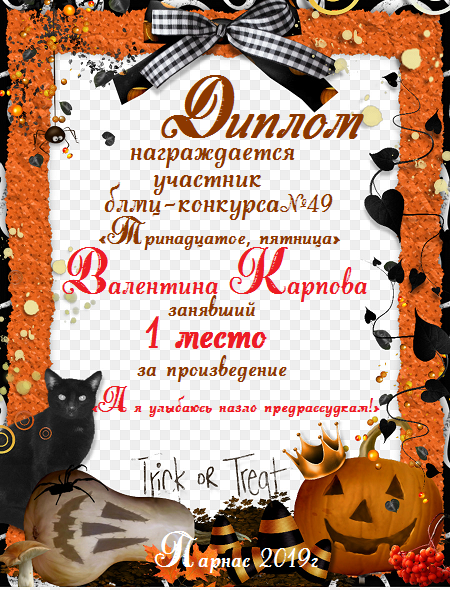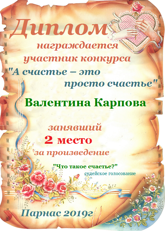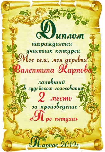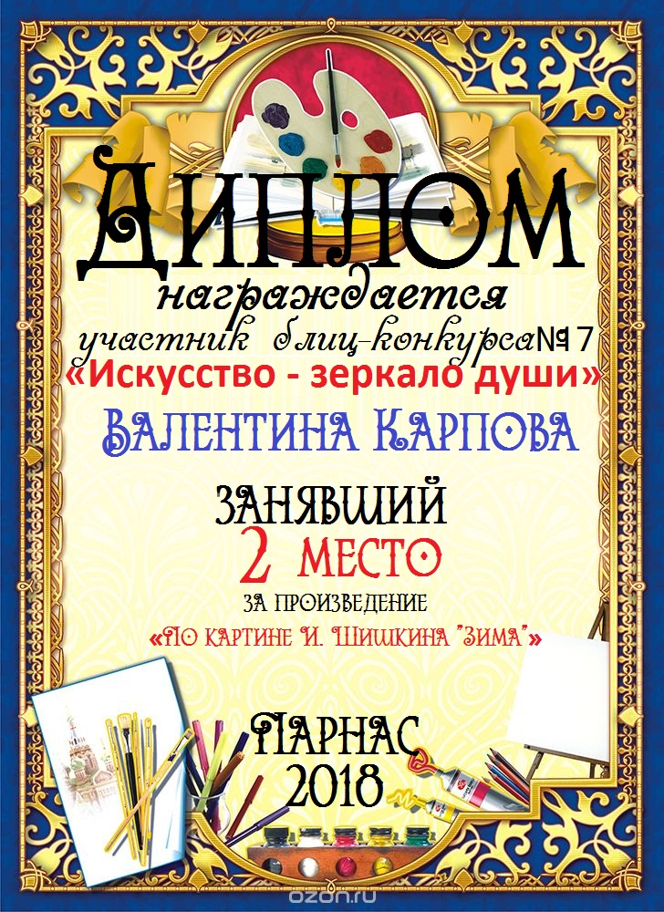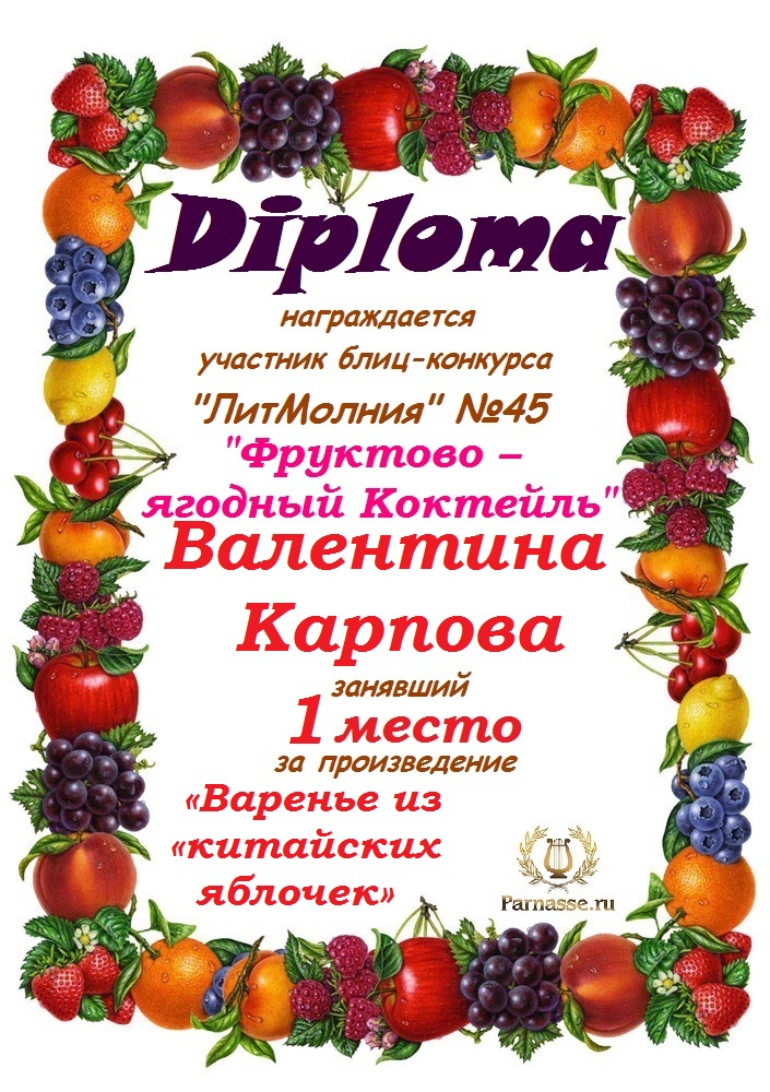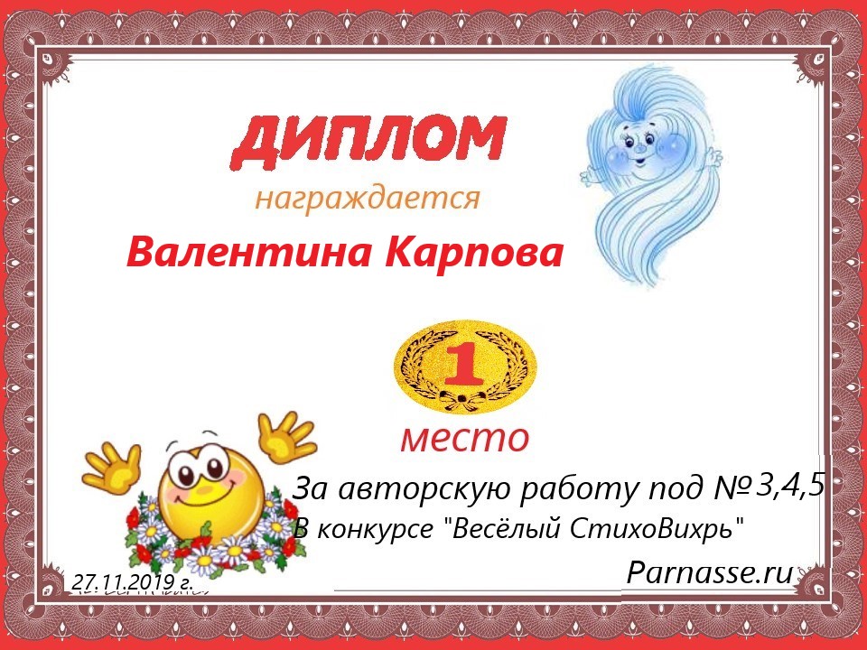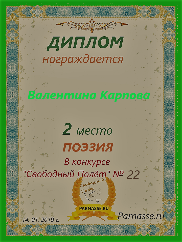 Диплом за 1 место в 138 конкурсе АКРОСТИХА (Альтернатива)! ПОЗДРАВЛЯЮ!