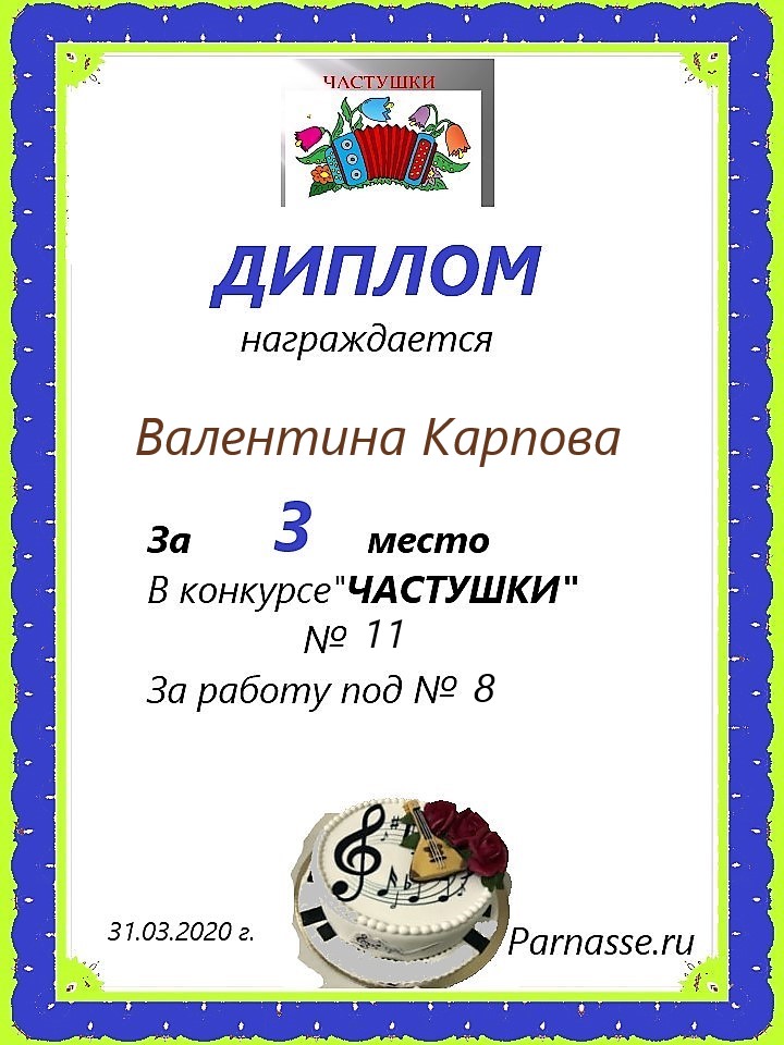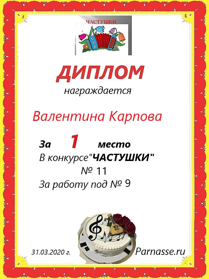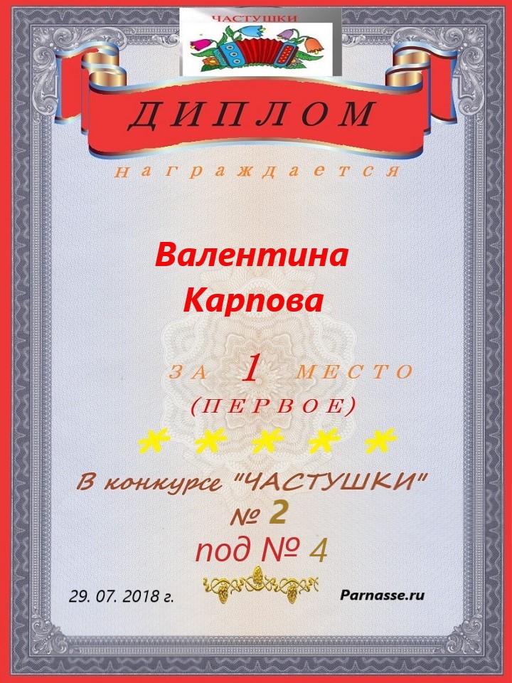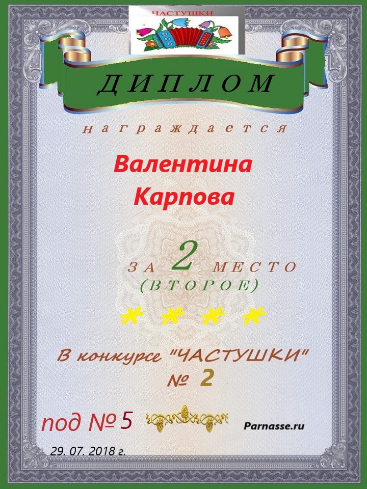 в конкурсе "ЧАСТУШКИ" № 18...за работу под № 34