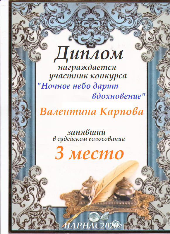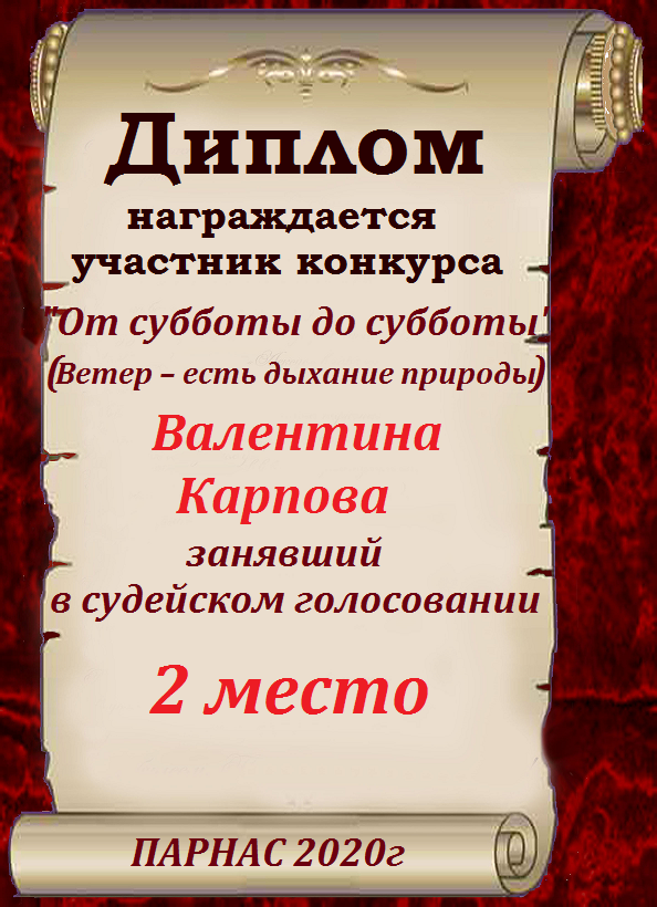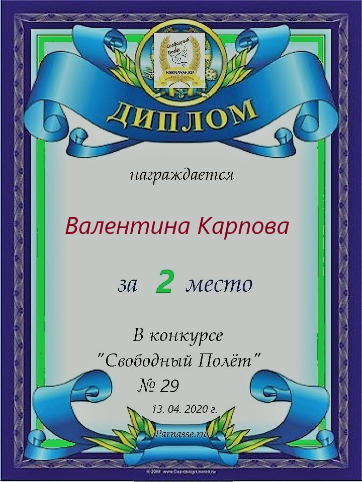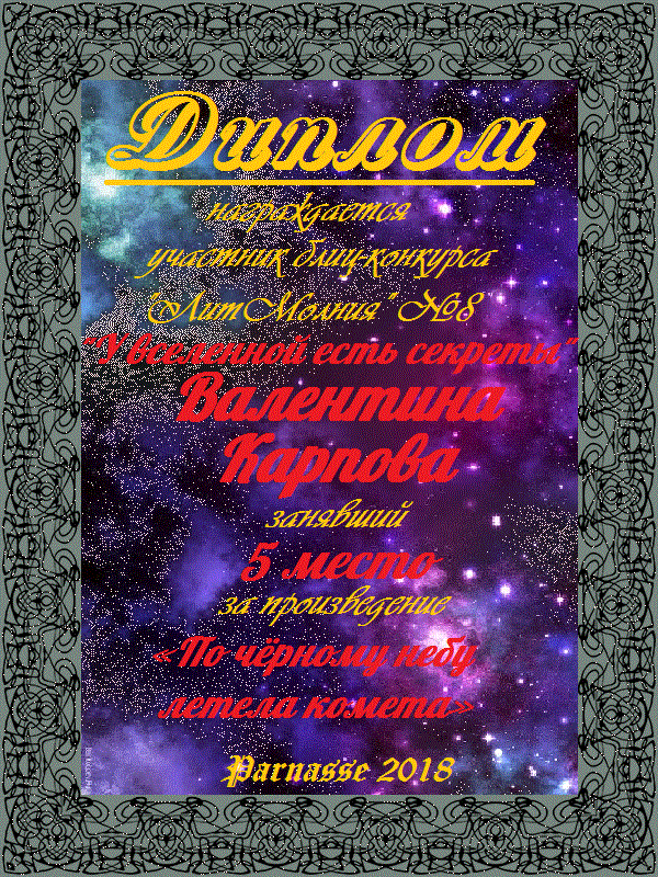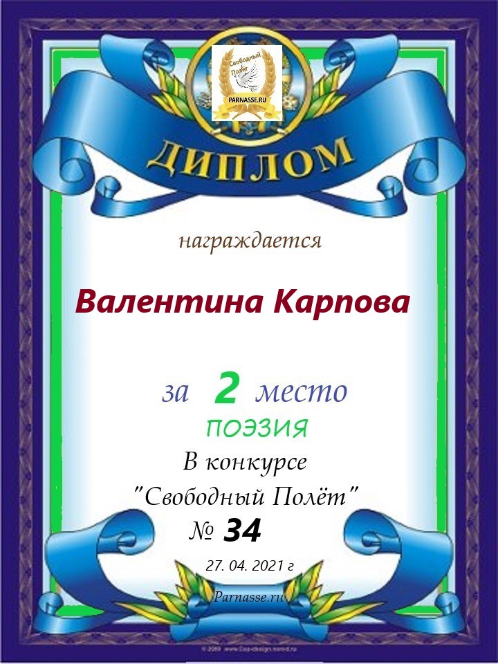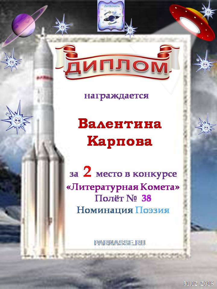 Поздравляю с занятым 2 местом в конкурсе «Литературная Комета – Полёт № 34» - номинация поэзия