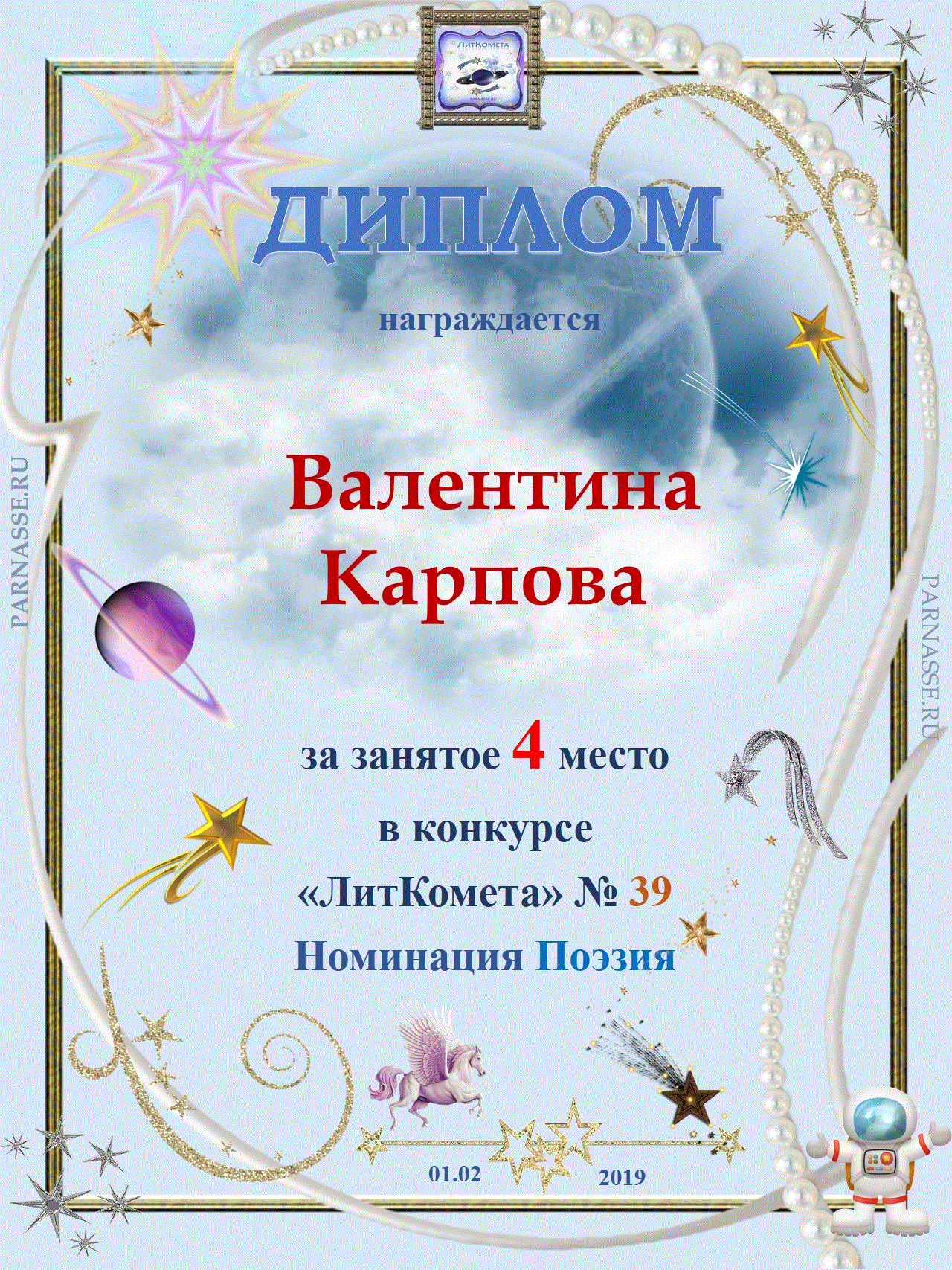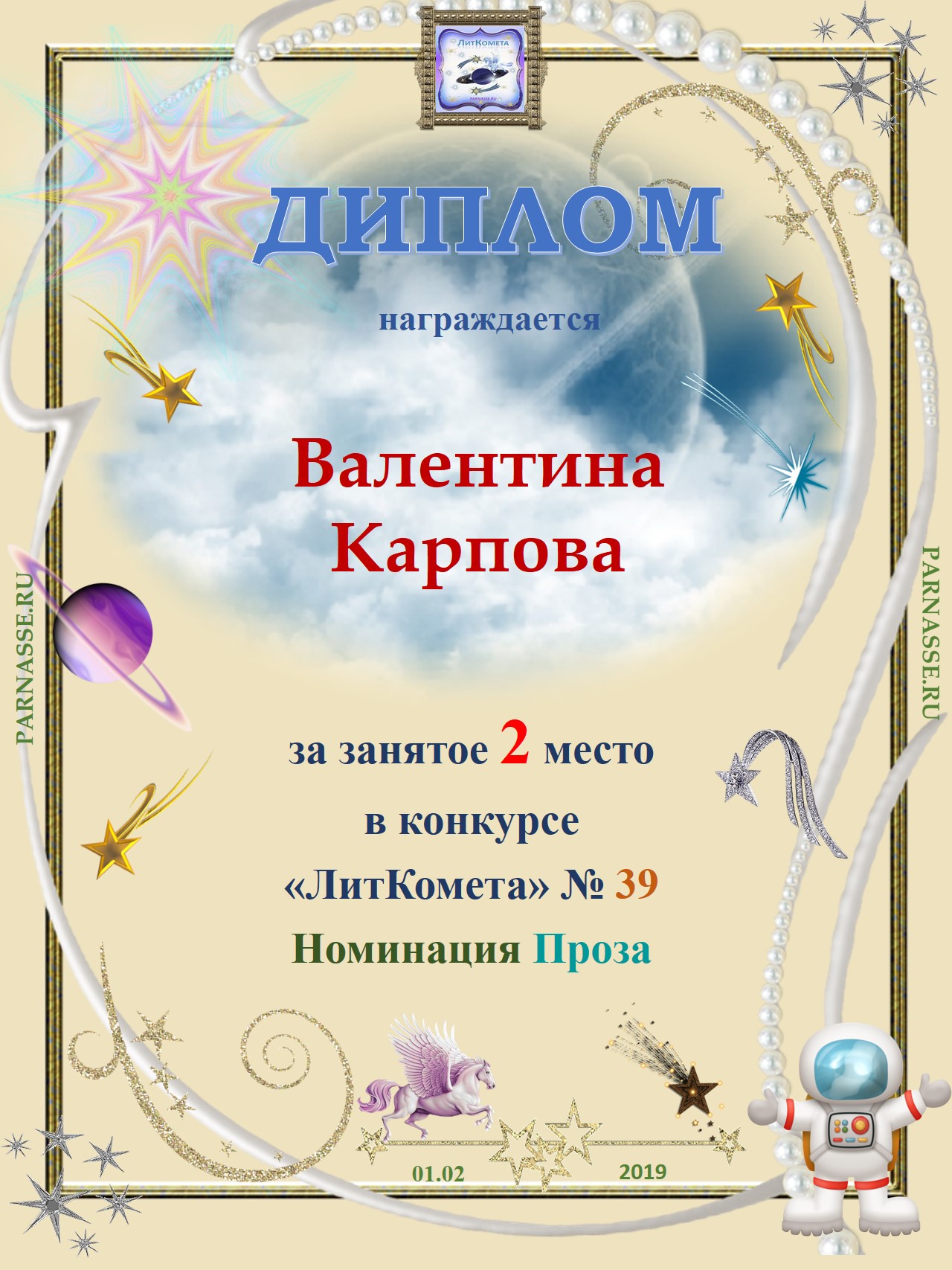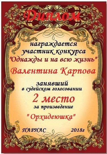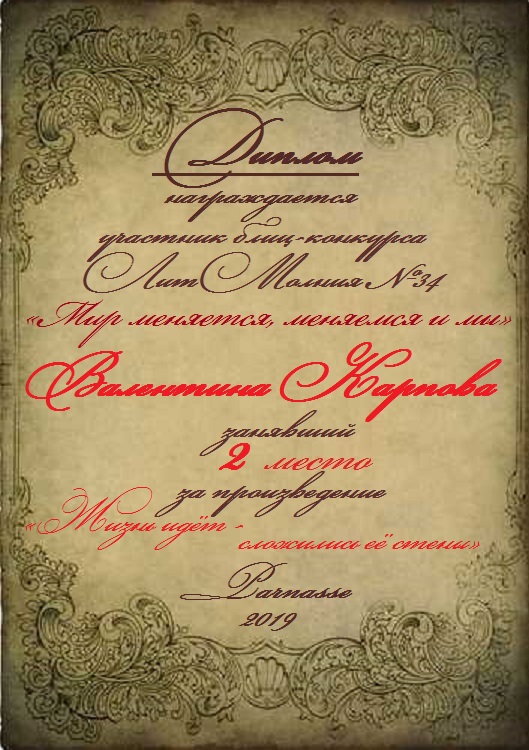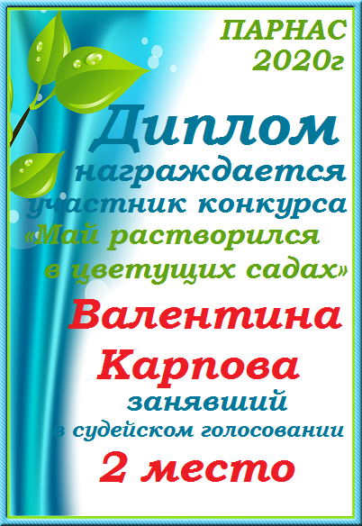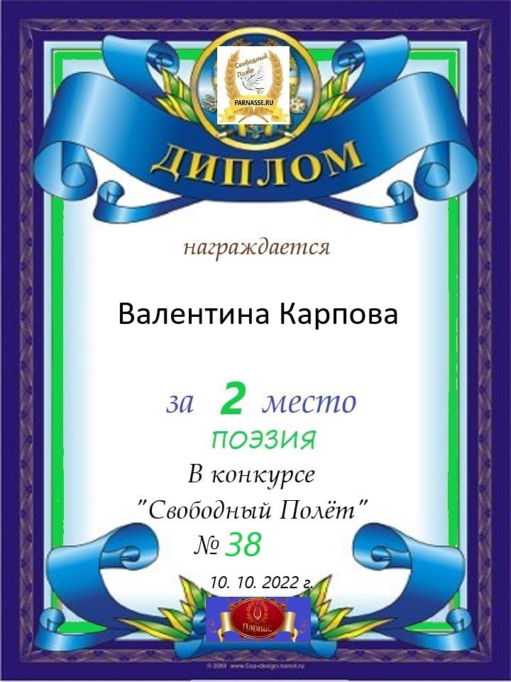 Поздравляю с занятым 2 местом в конкурсе «Литературная Комета – Полёт № 34» - номинация поэзия