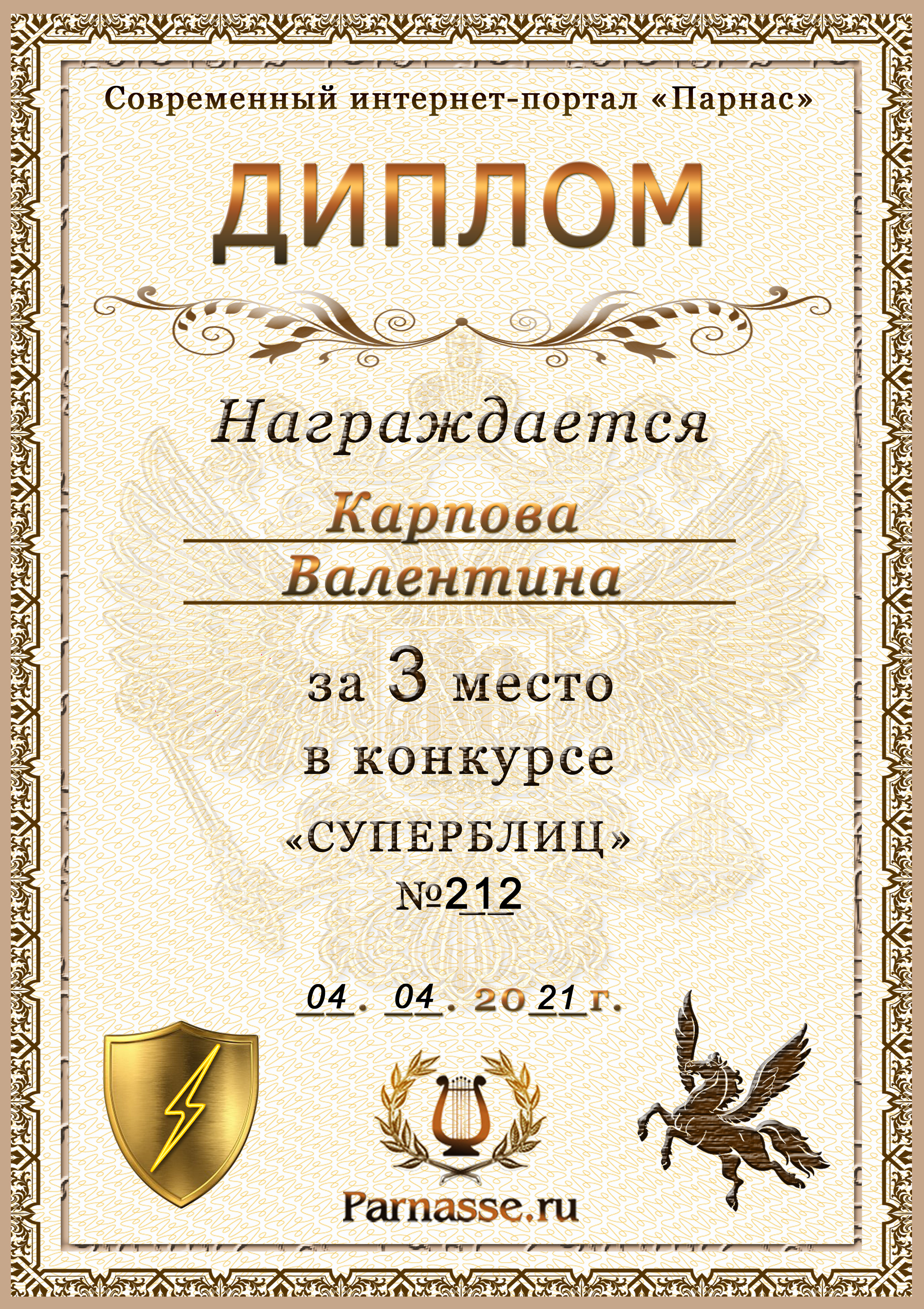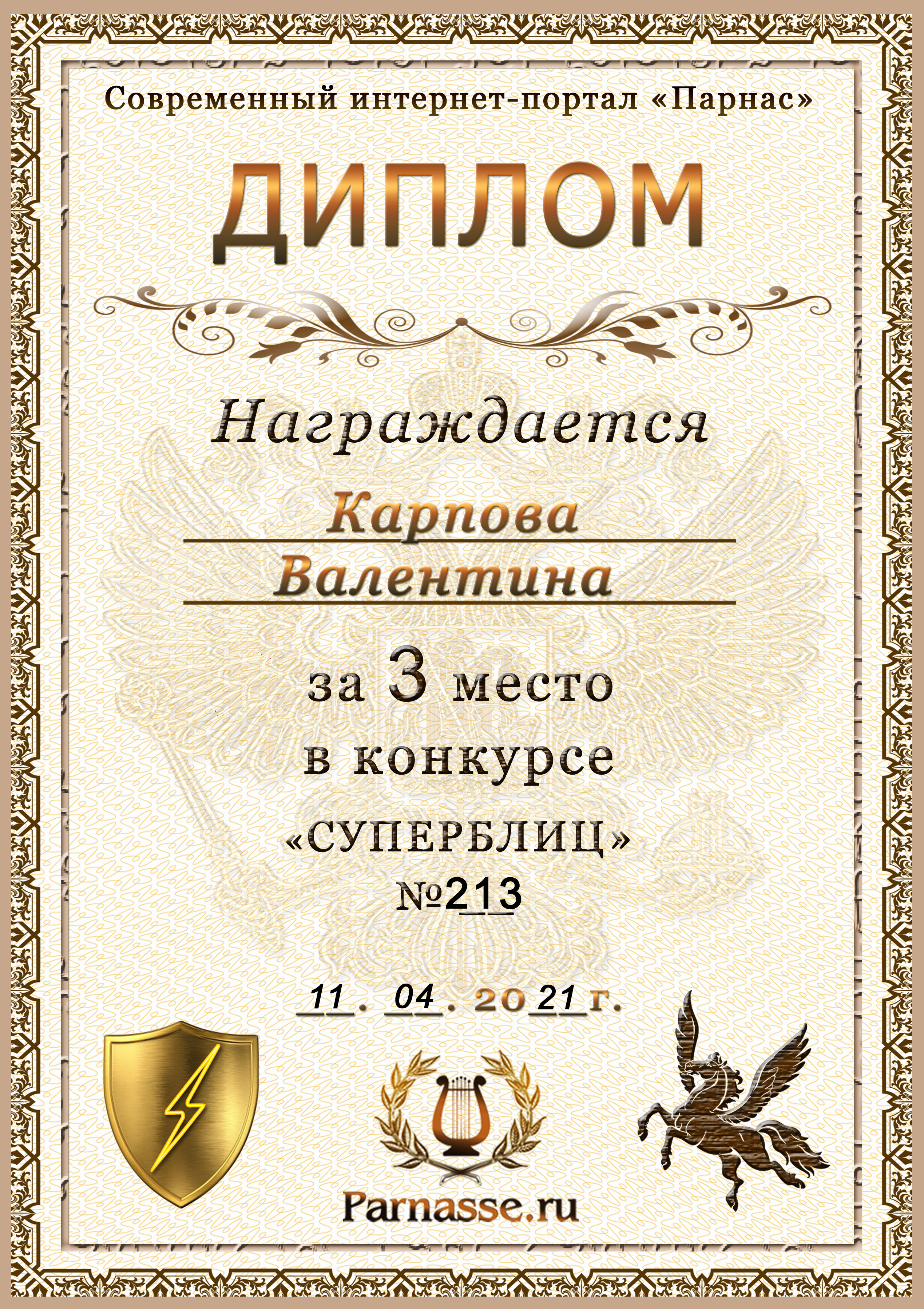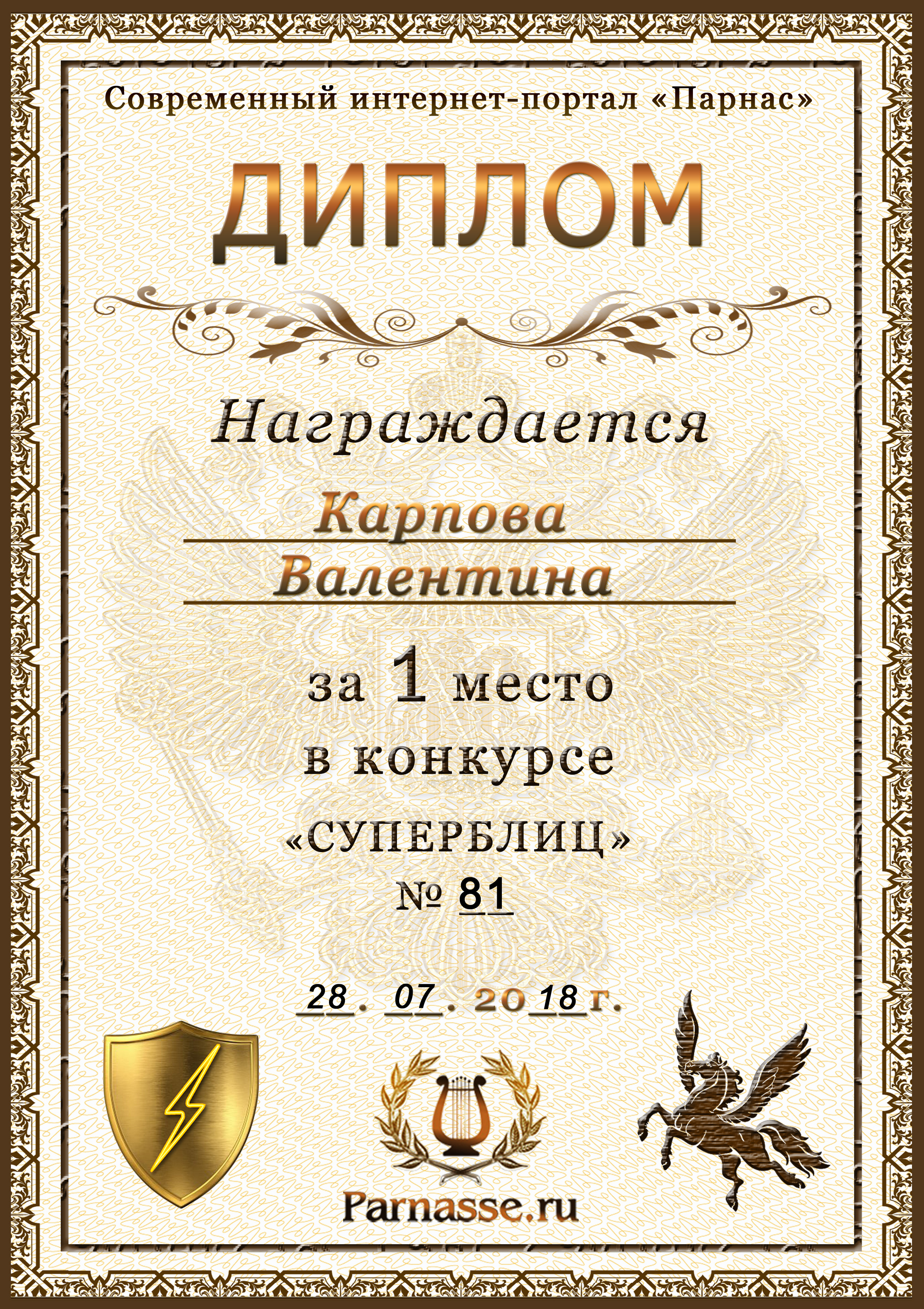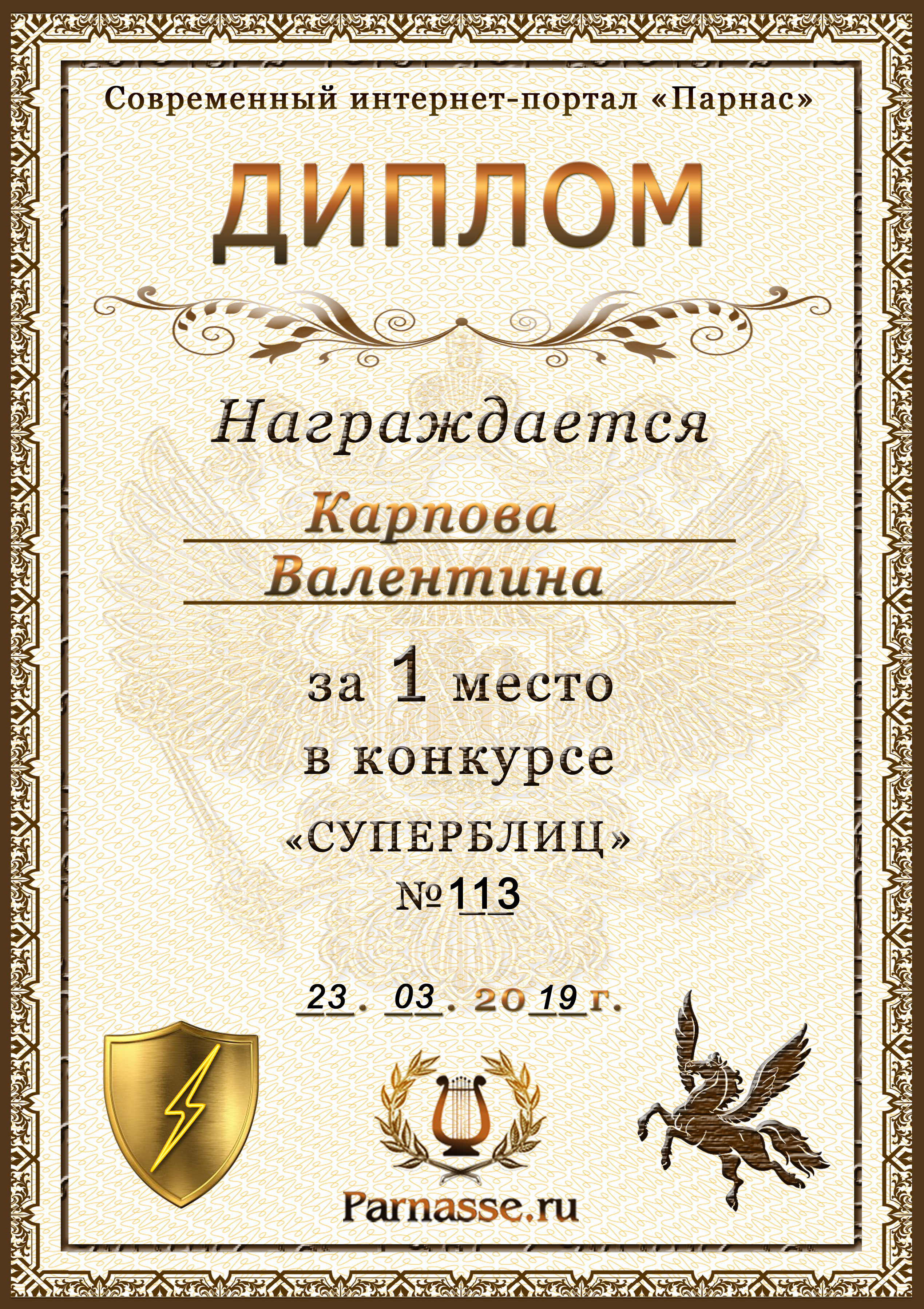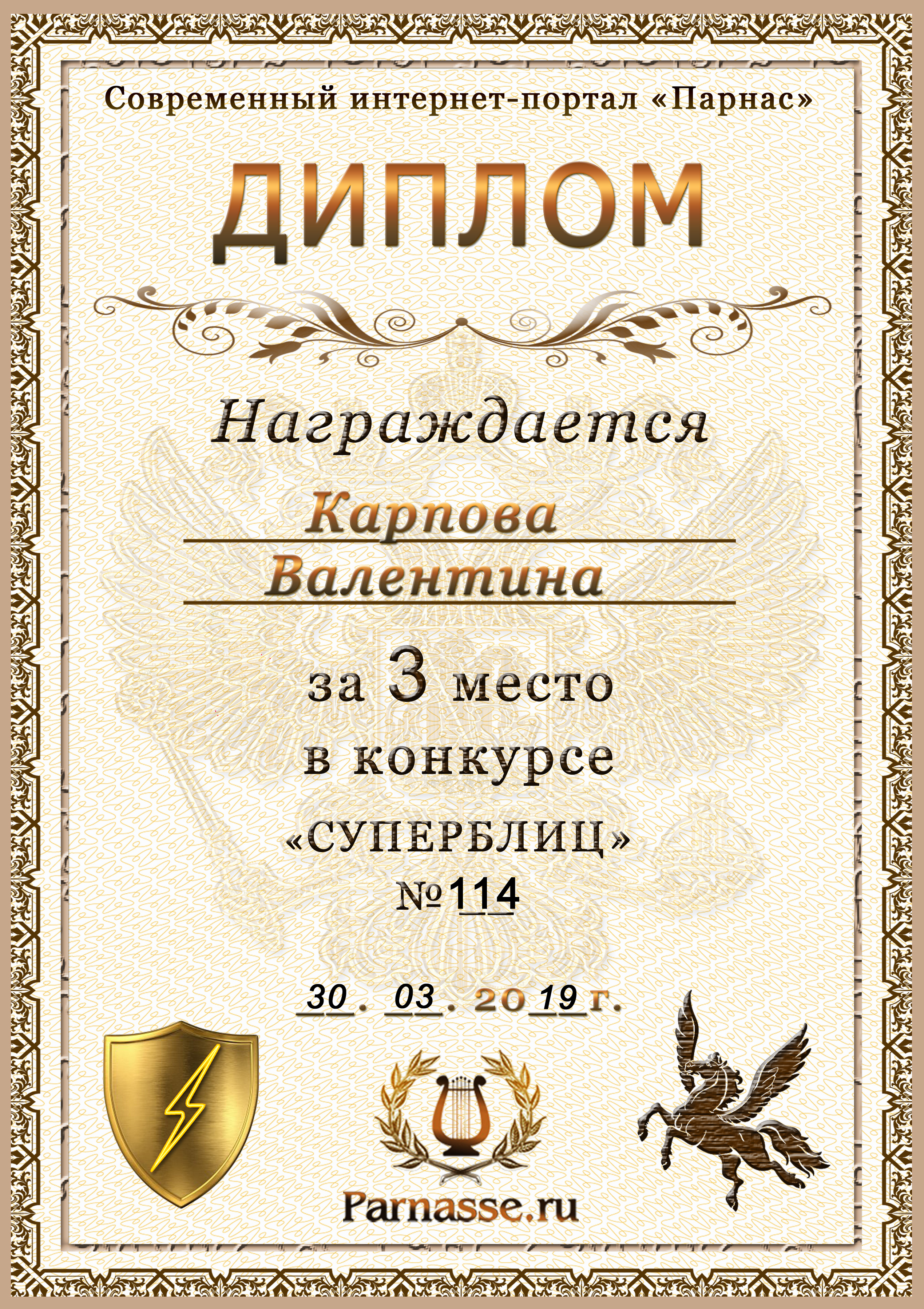 Диплом за победу во 2 туре в конкурсе СУПЕРБЛИЦА № 128! ПОЗДРАВЛЯЮ!