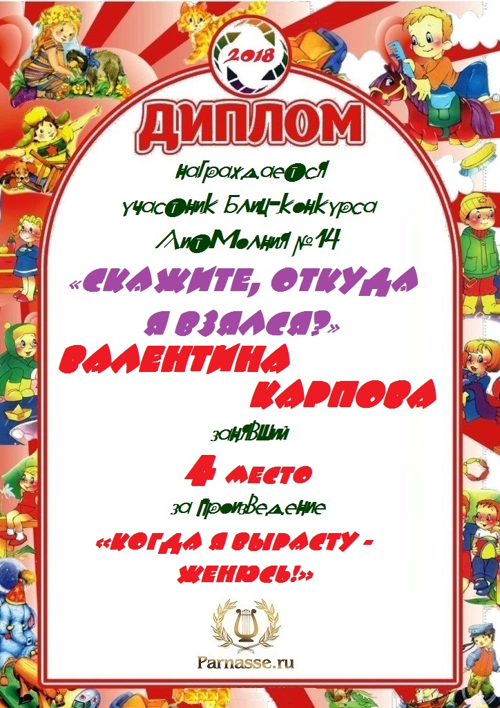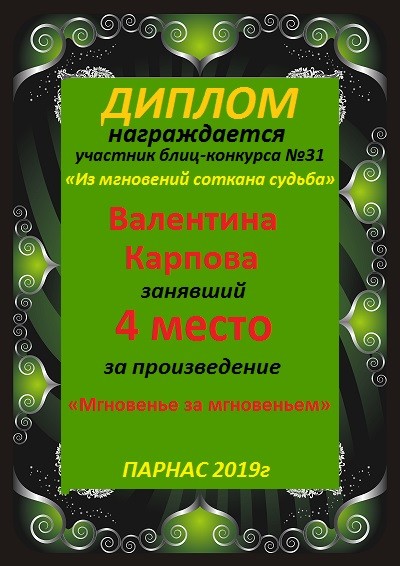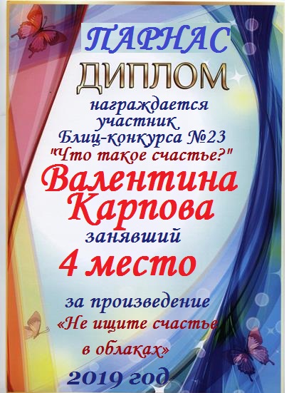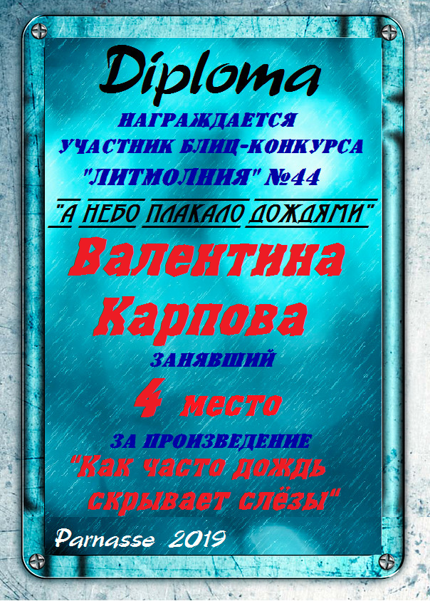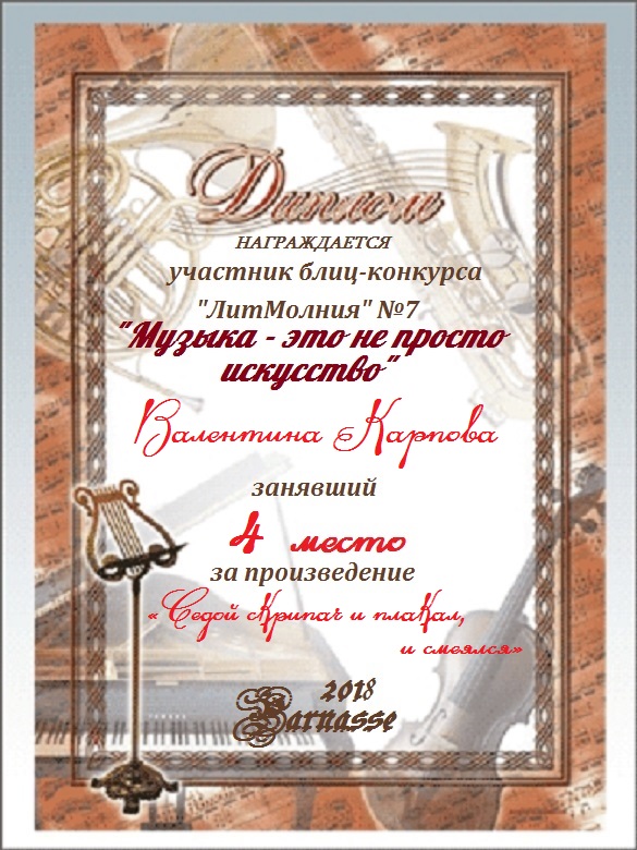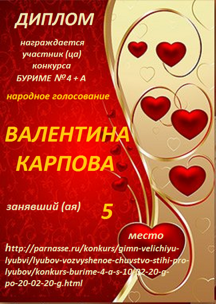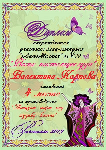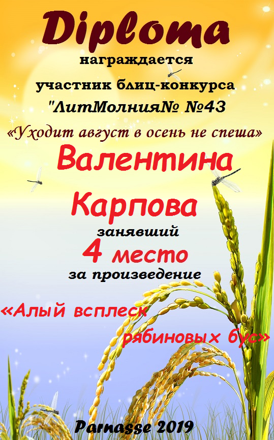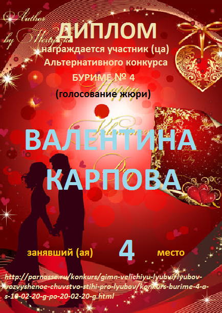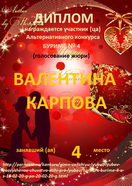Грамота за 4 место в 137 конкурсе АКРОСТИХА (Альтернатива)! ПОЗДРАВЛЯЮ!