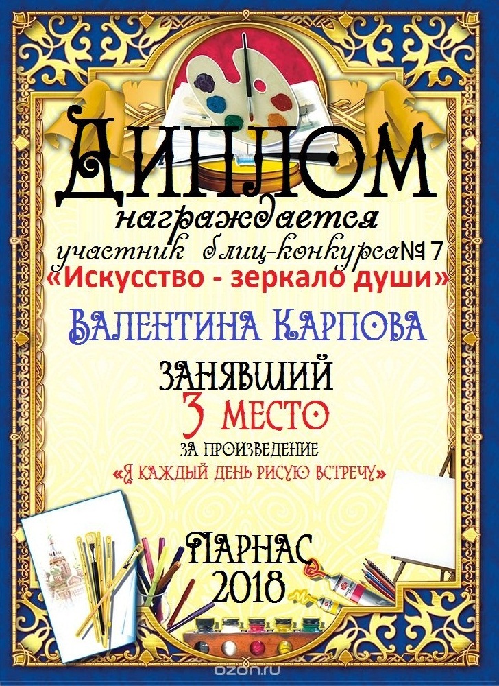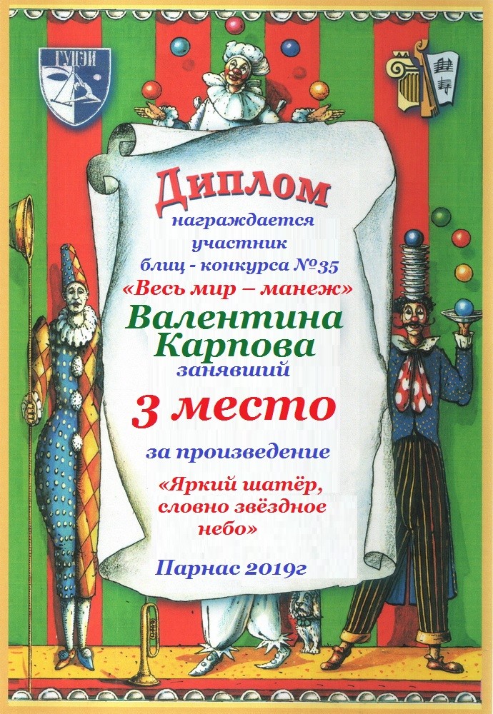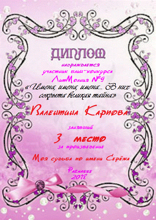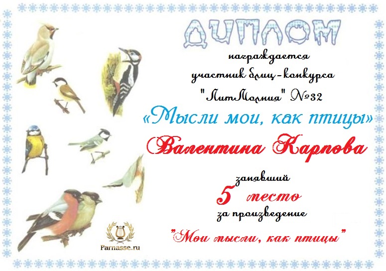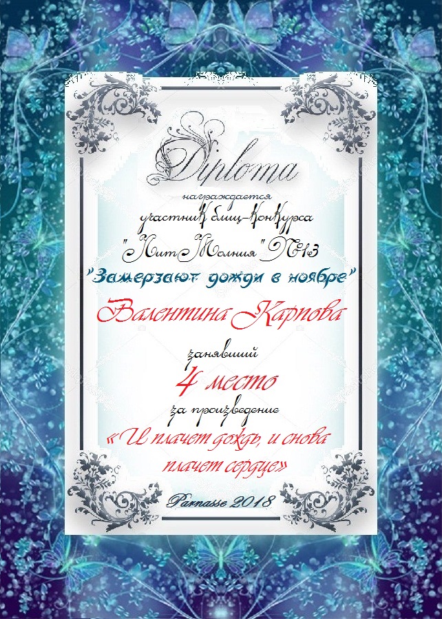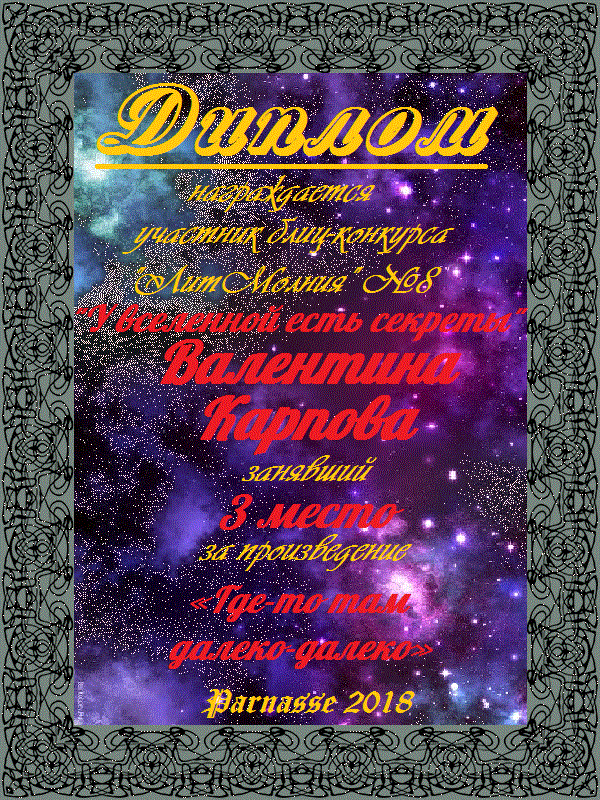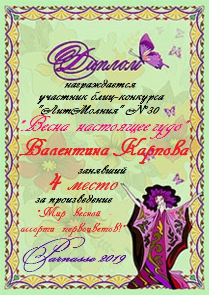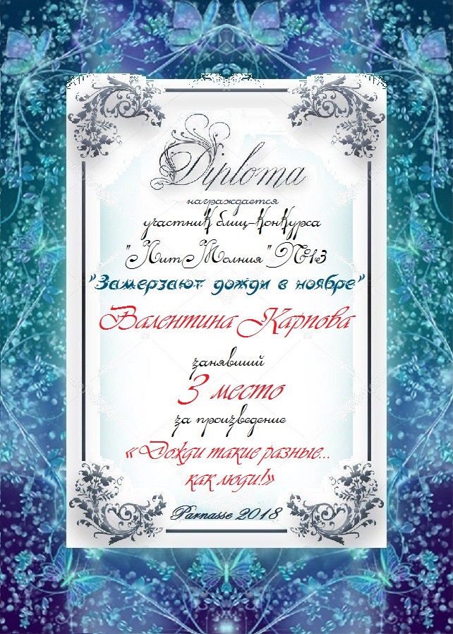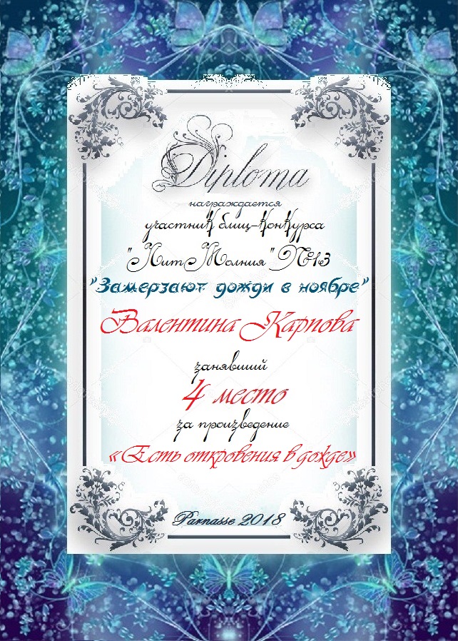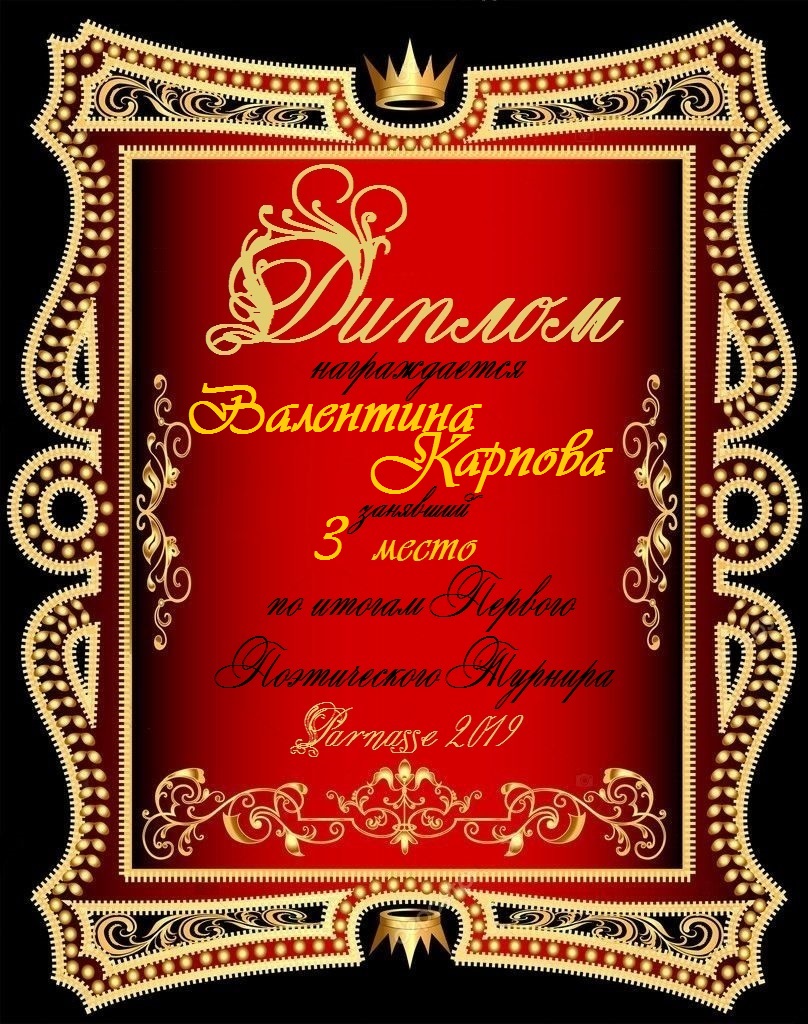 Диплом за 3 место в 134 конкурсе АКРОСТИХА (Альтернатива)! ПОЗДРАВЛЯЮ!