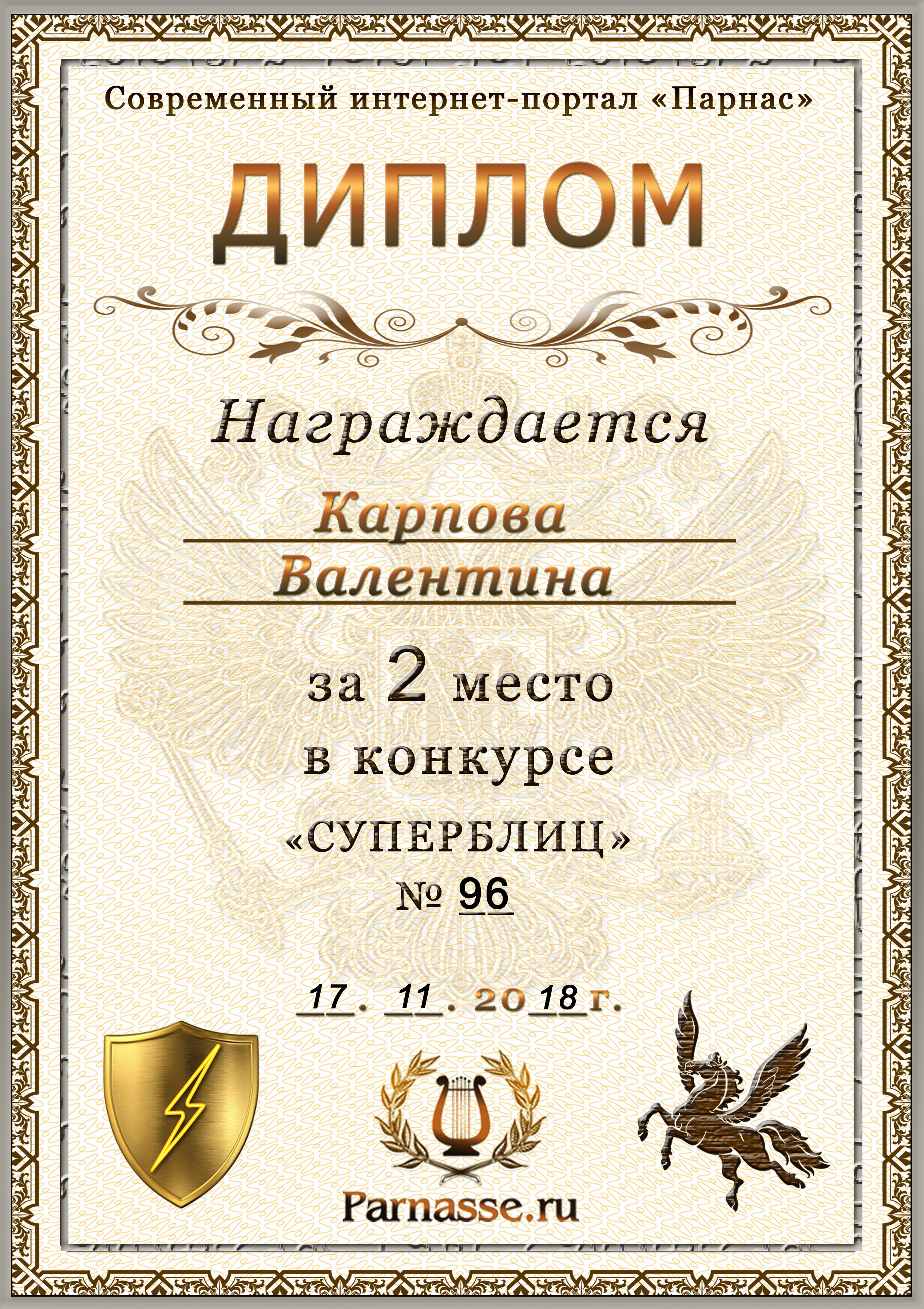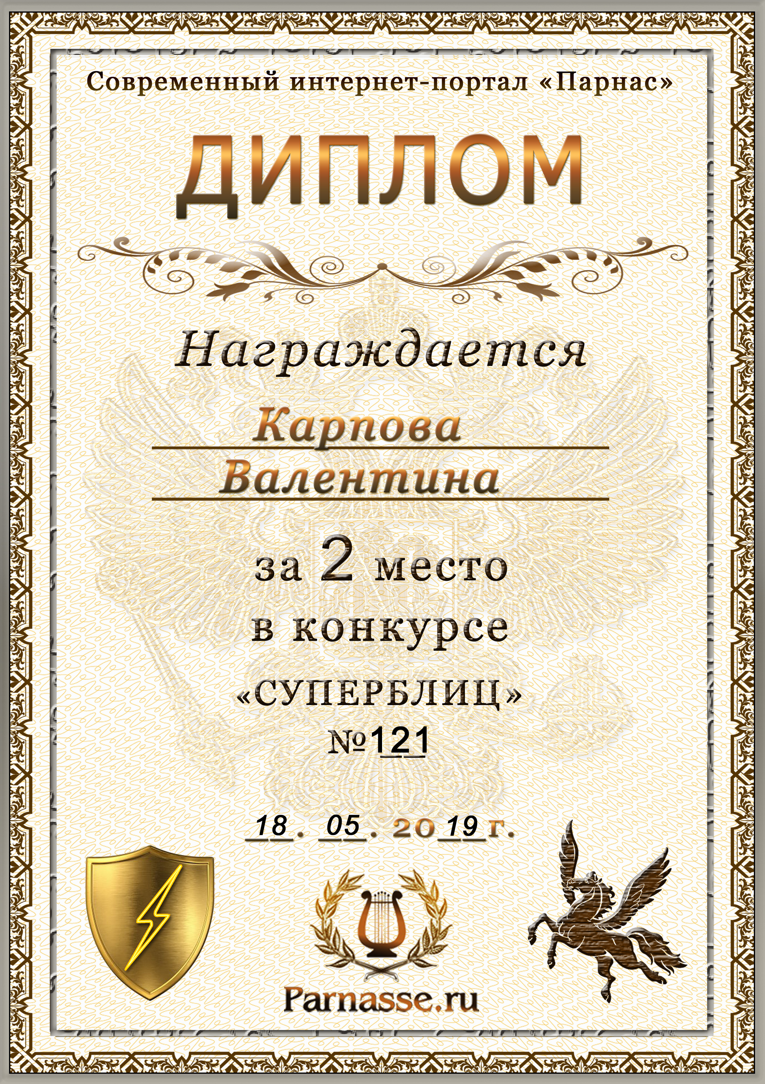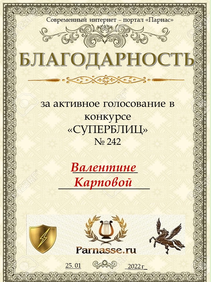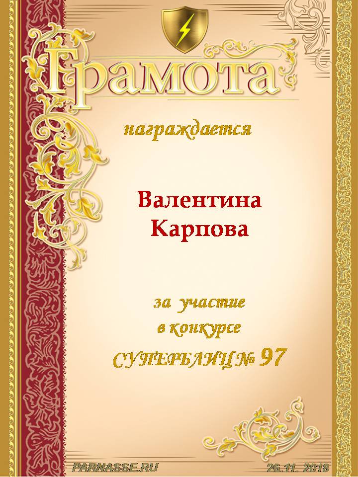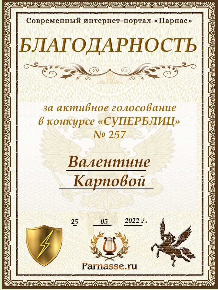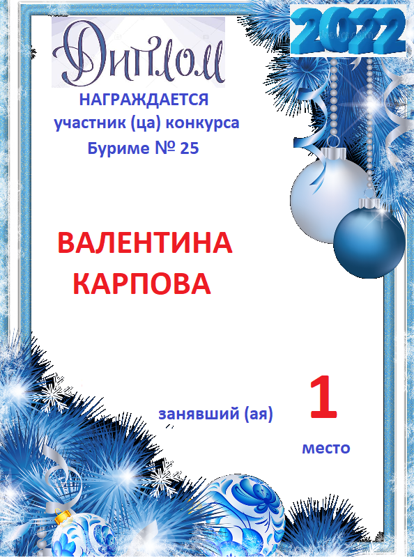 Диплом за победу во 2 туре в конкурсе СУПЕРБЛИЦА № 122! ПОЗДРАВЛЯЮ!