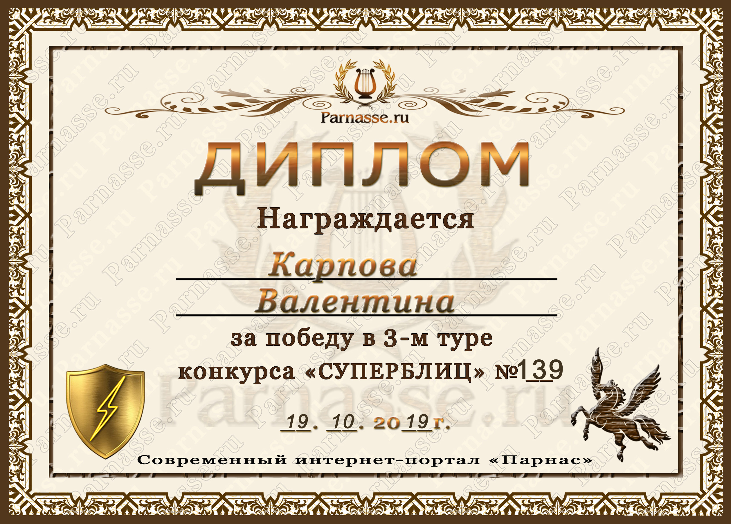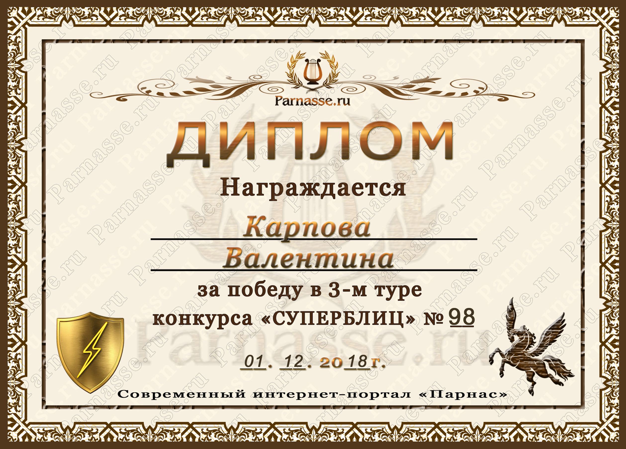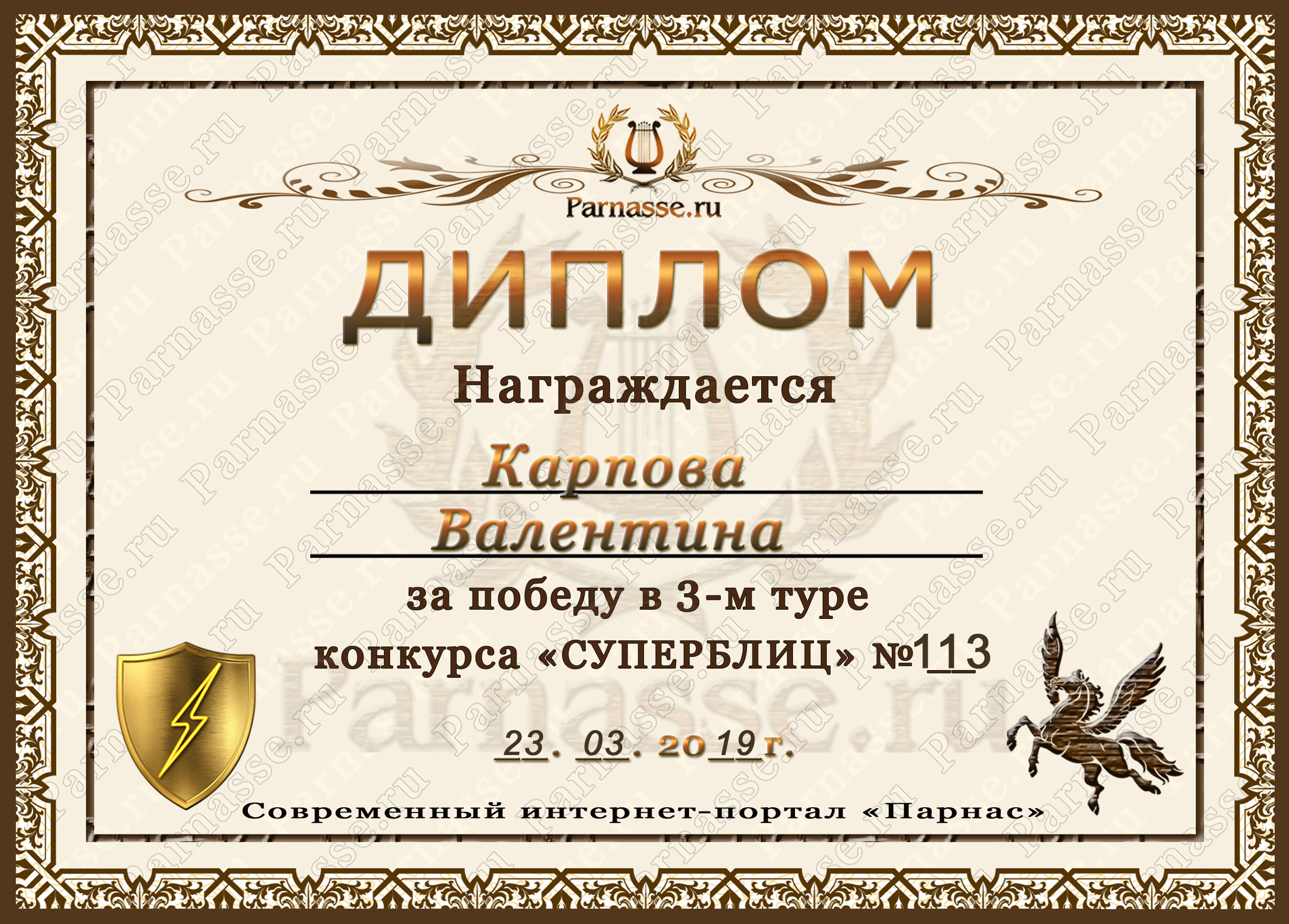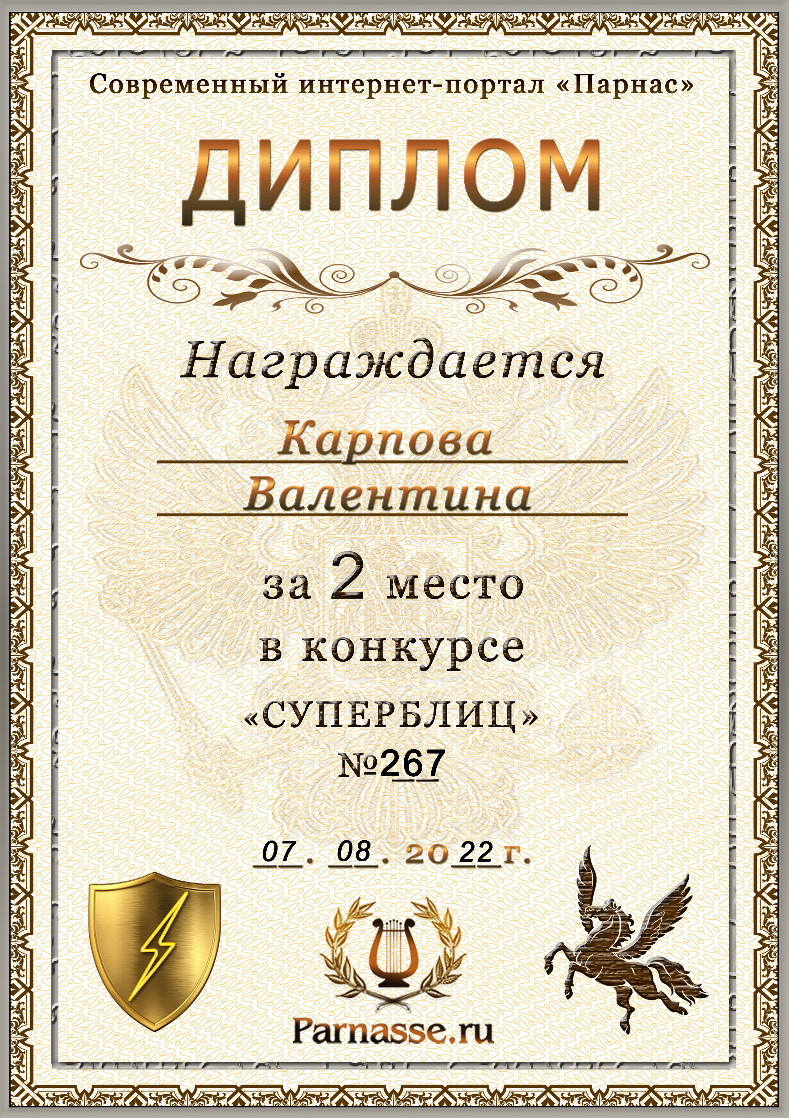 Диплом за победу во 2 туре в конкурсе СУПЕРБЛИЦА № 122! ПОЗДРАВЛЯЮ!