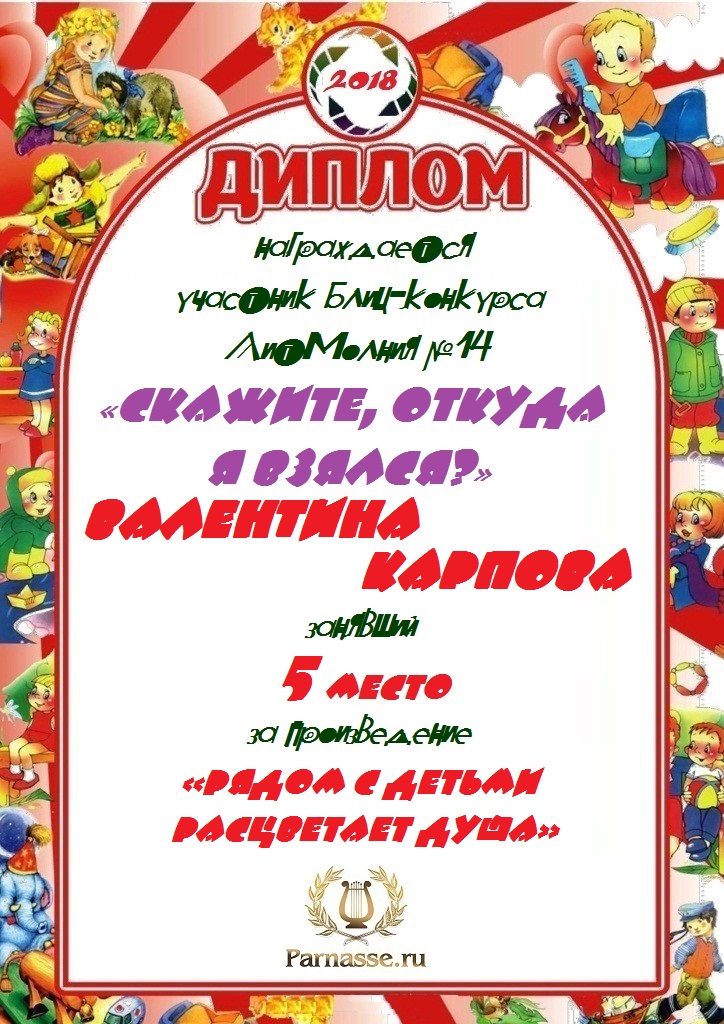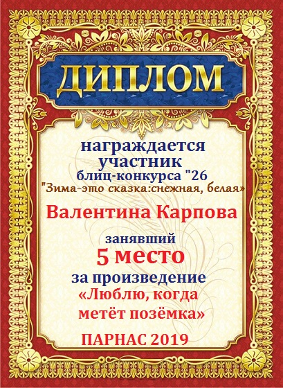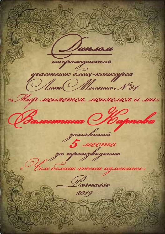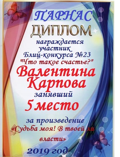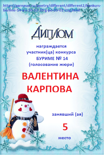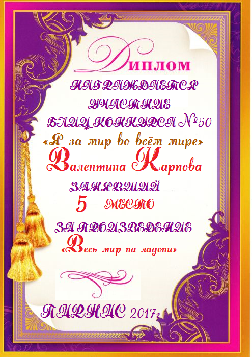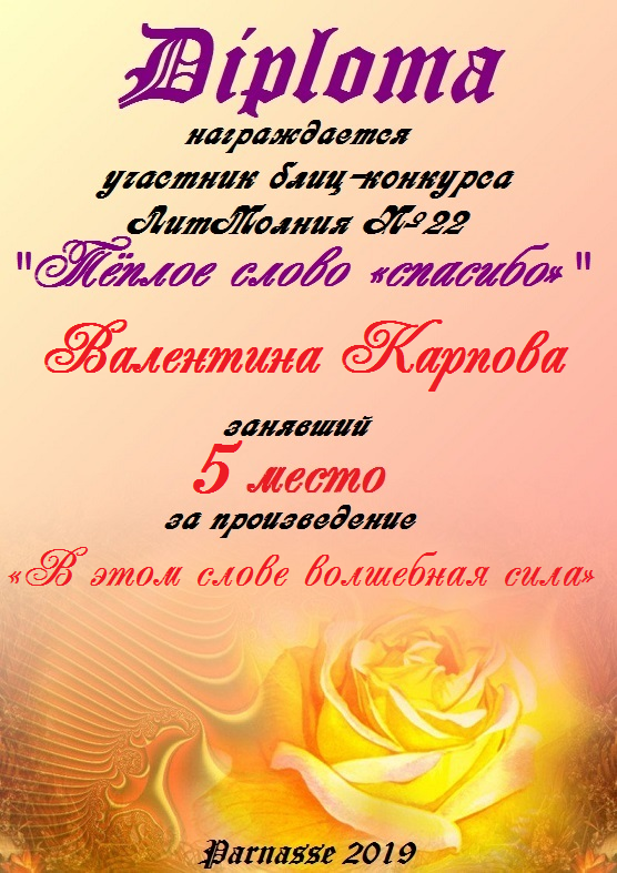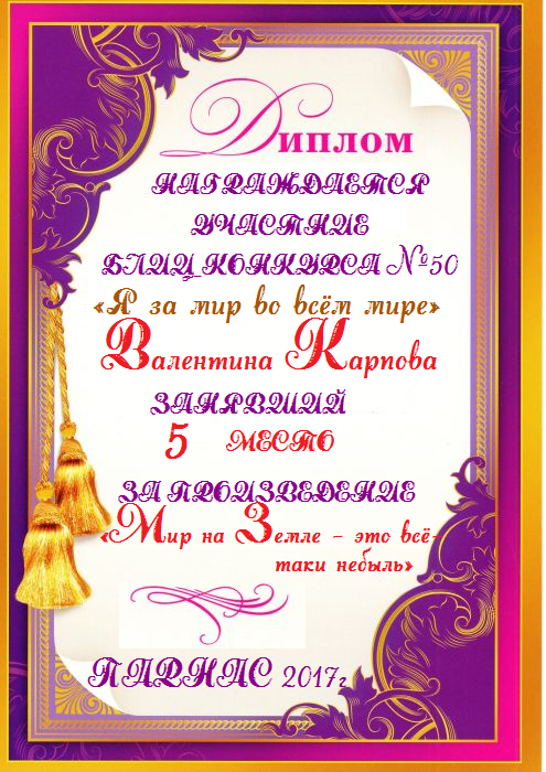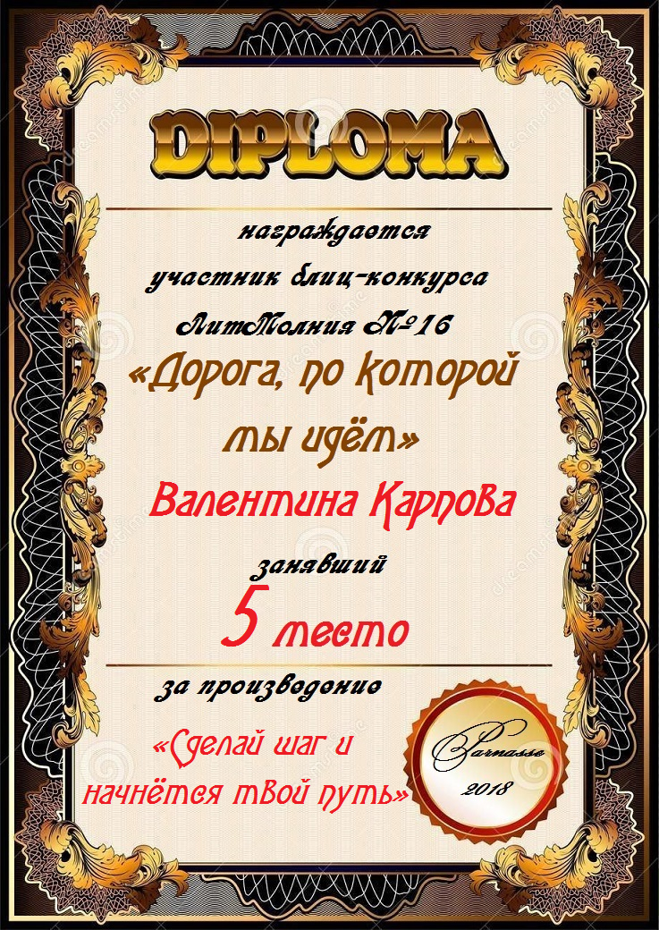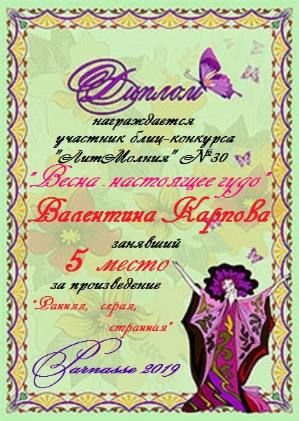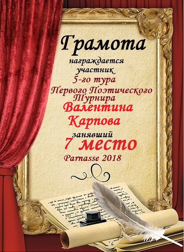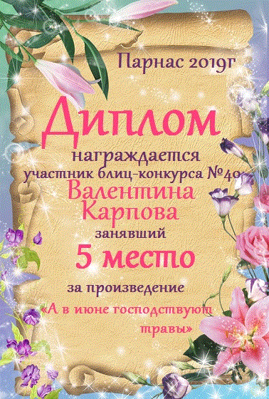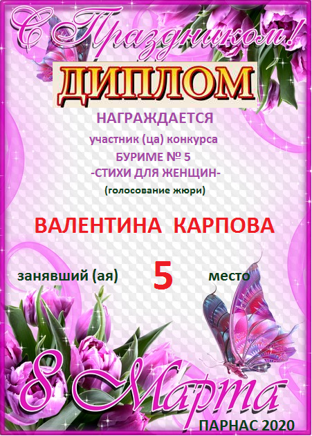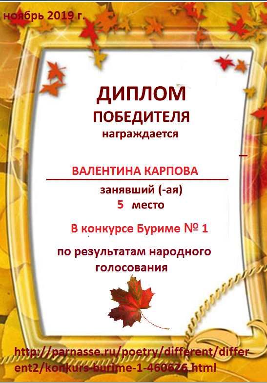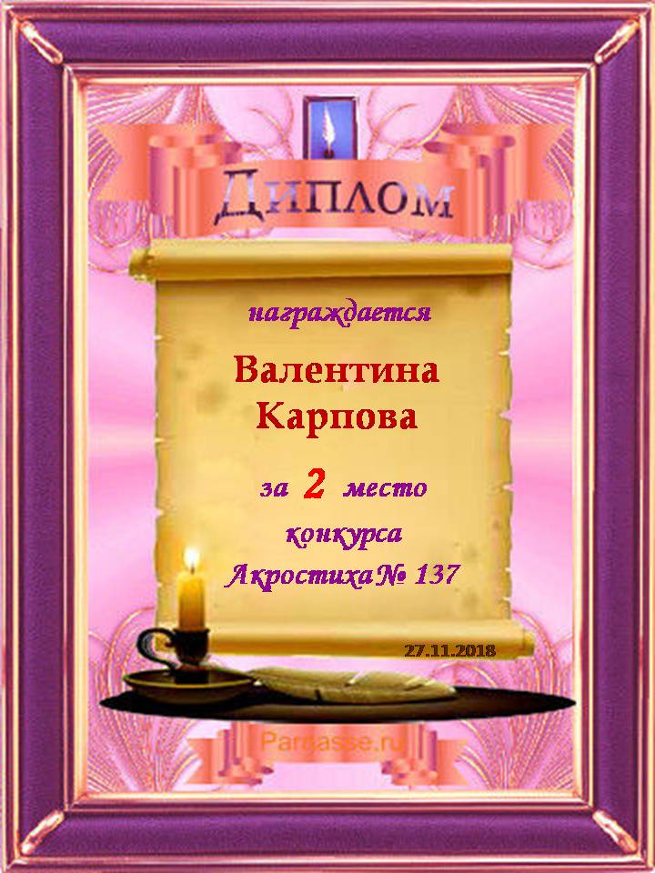 Грамота за 5 место в 137 конкурсе АКРОСТИХА (Альтернатива)! ПОЗДРАВЛЯЮ!