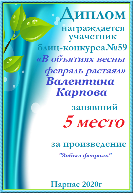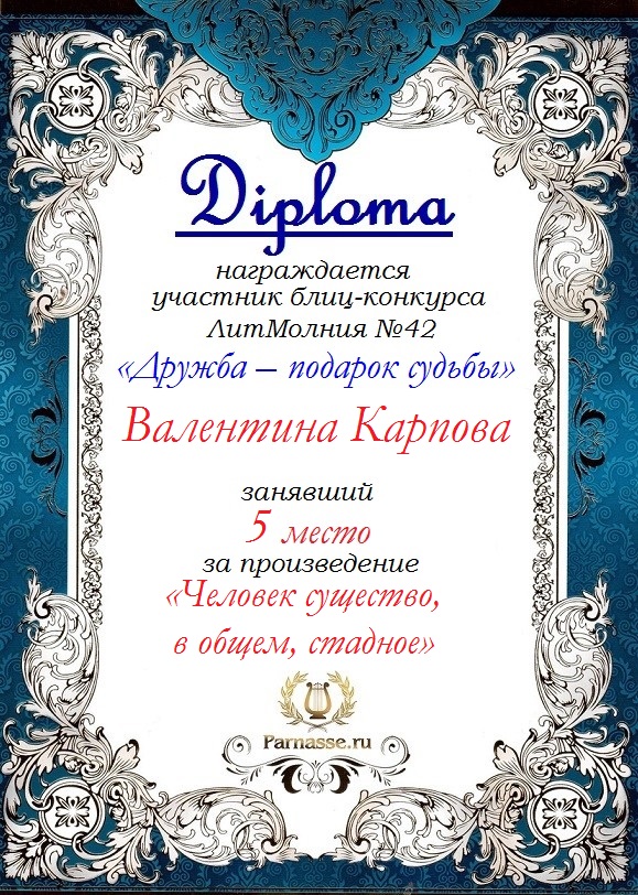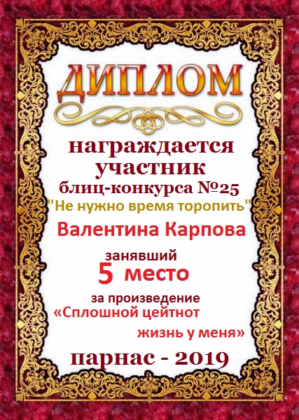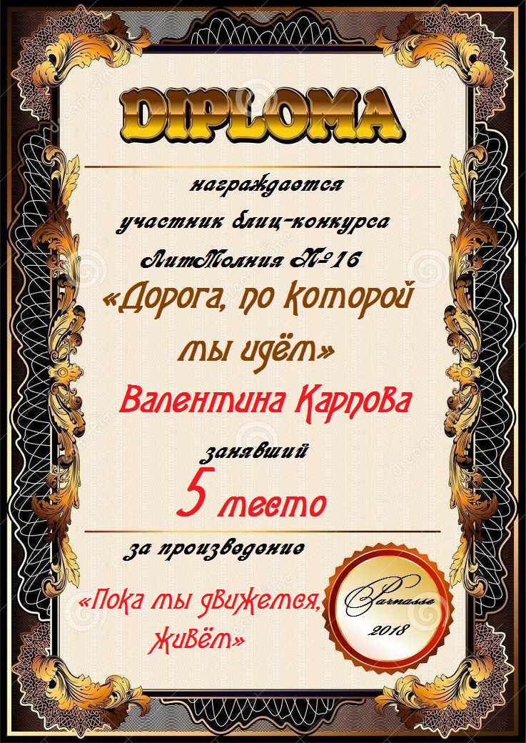 Грамота за 5 место в 136 конкурсе АКРОСТИХА (Альтернатива)! ПОЗДРАВЛЯЮ!