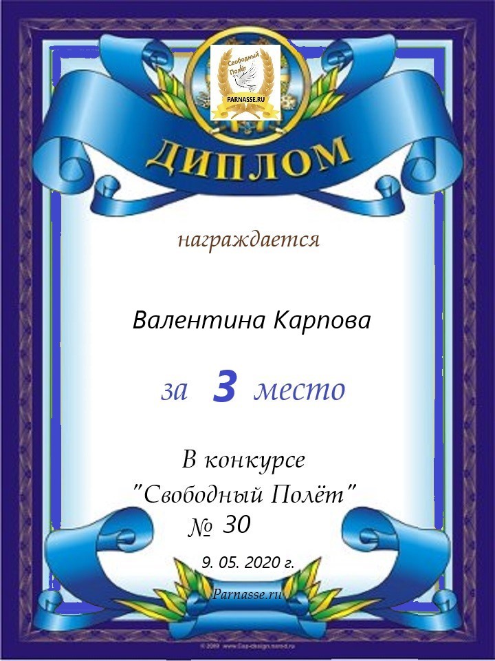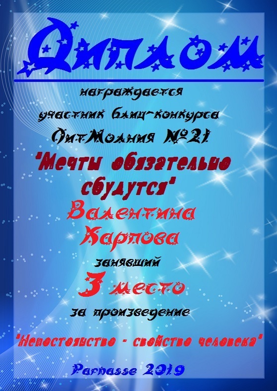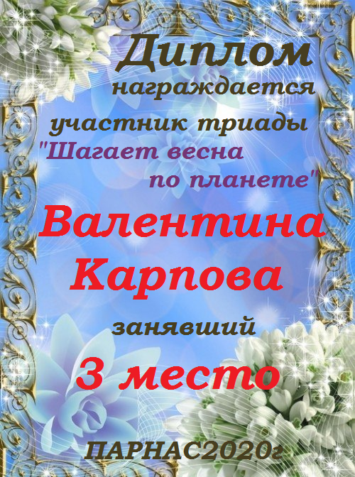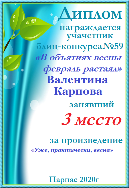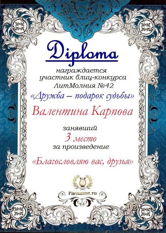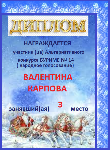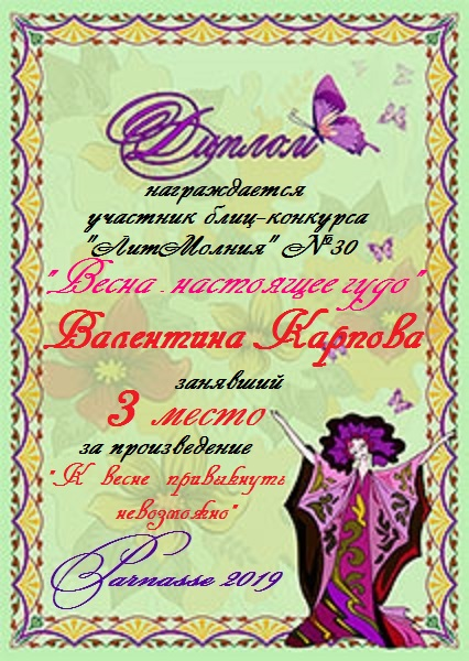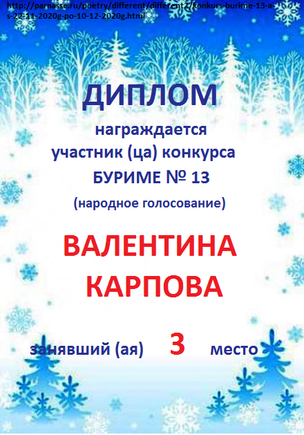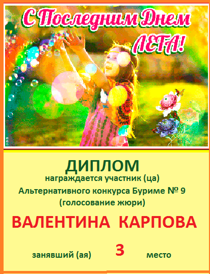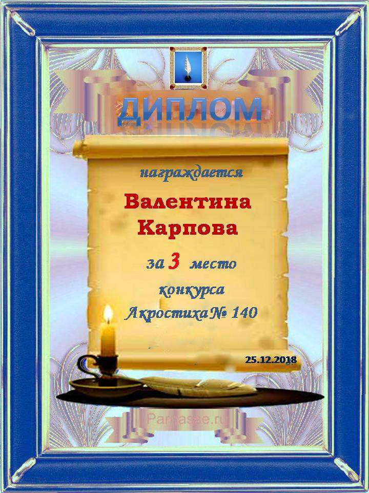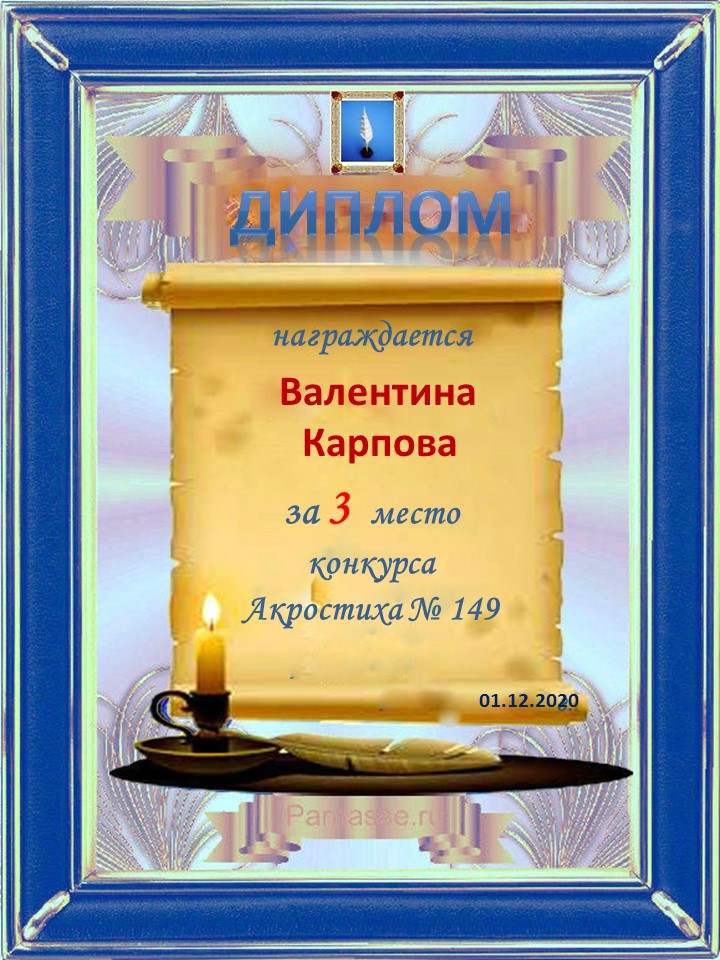 Диплом за 3 место в 146 конкурсе АКРОСТИХА (Альтернатива)! ПОЗДРАВЛЯЮ!