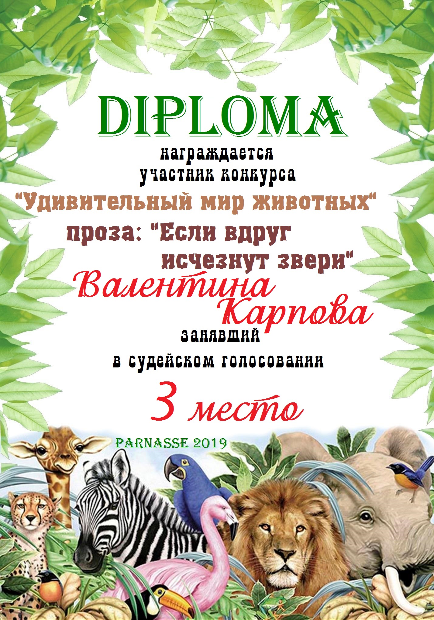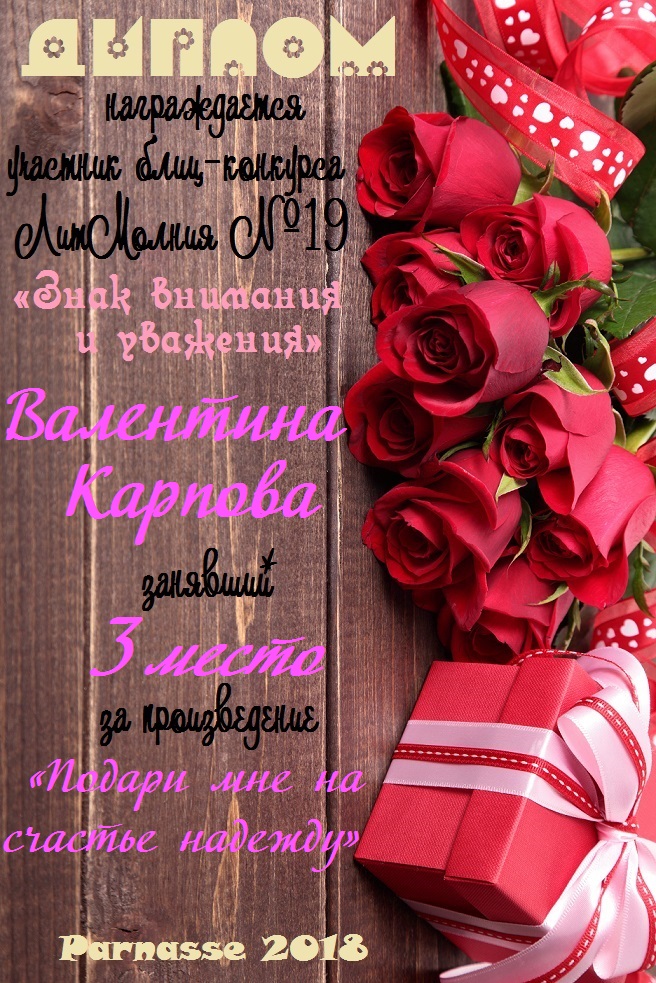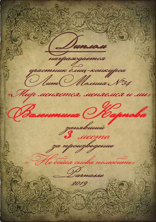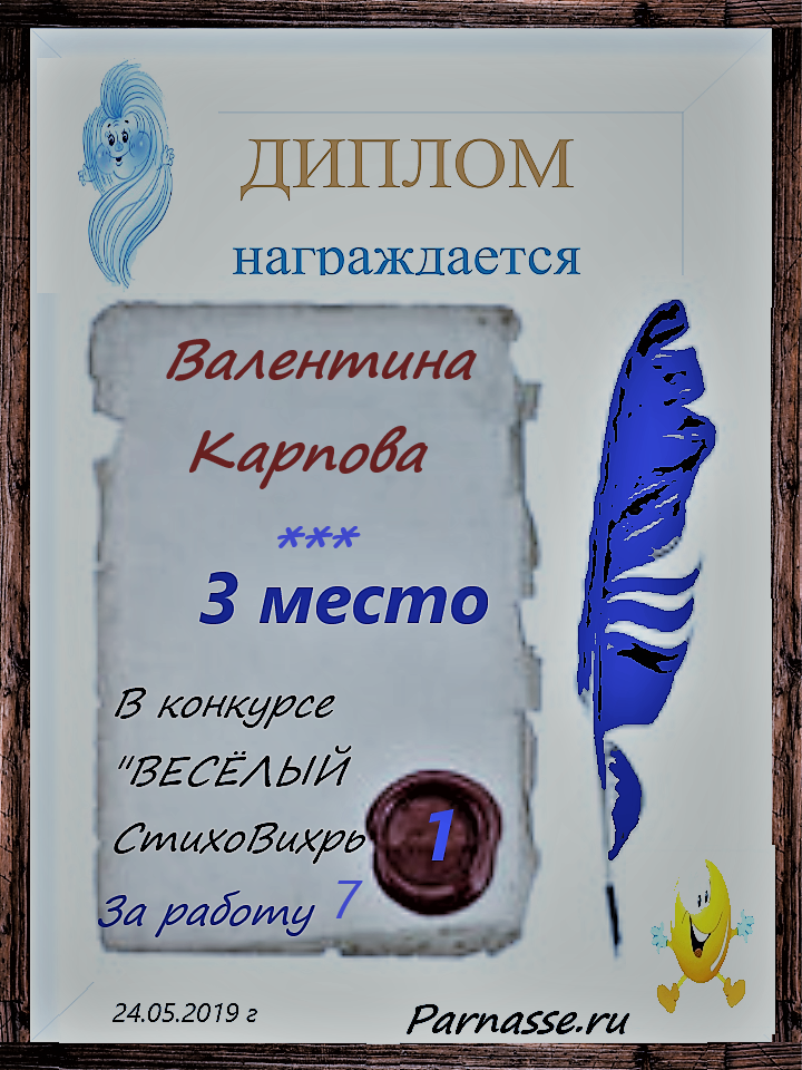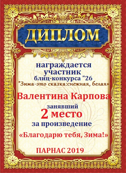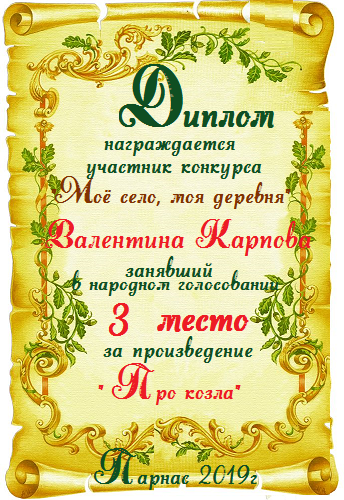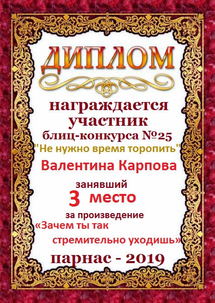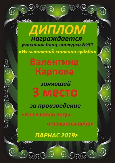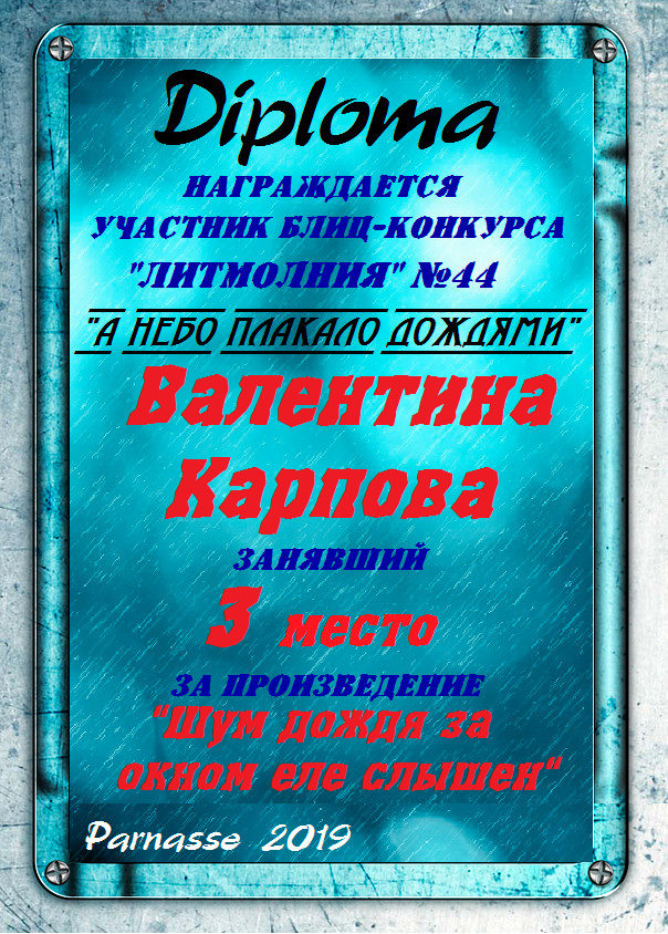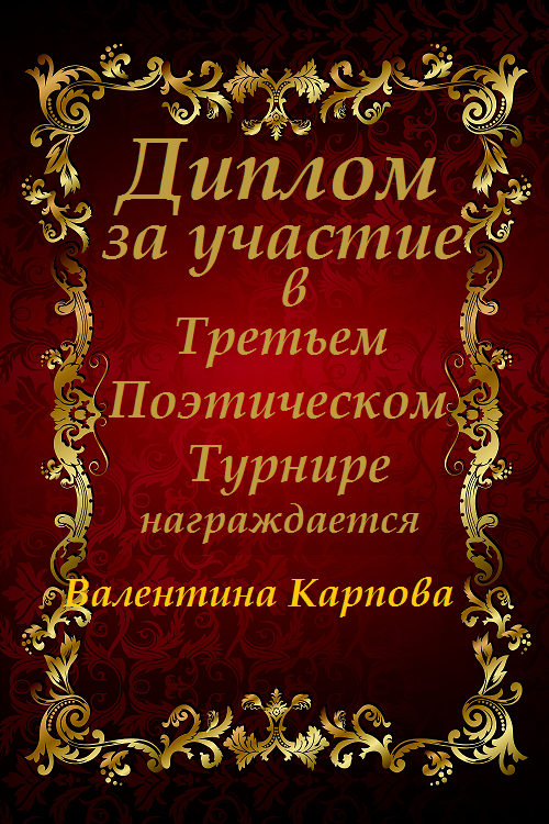 Диплом за 3 место в 146 конкурсе АКРОСТИХА (Альтернатива)! ПОЗДРАВЛЯЮ!