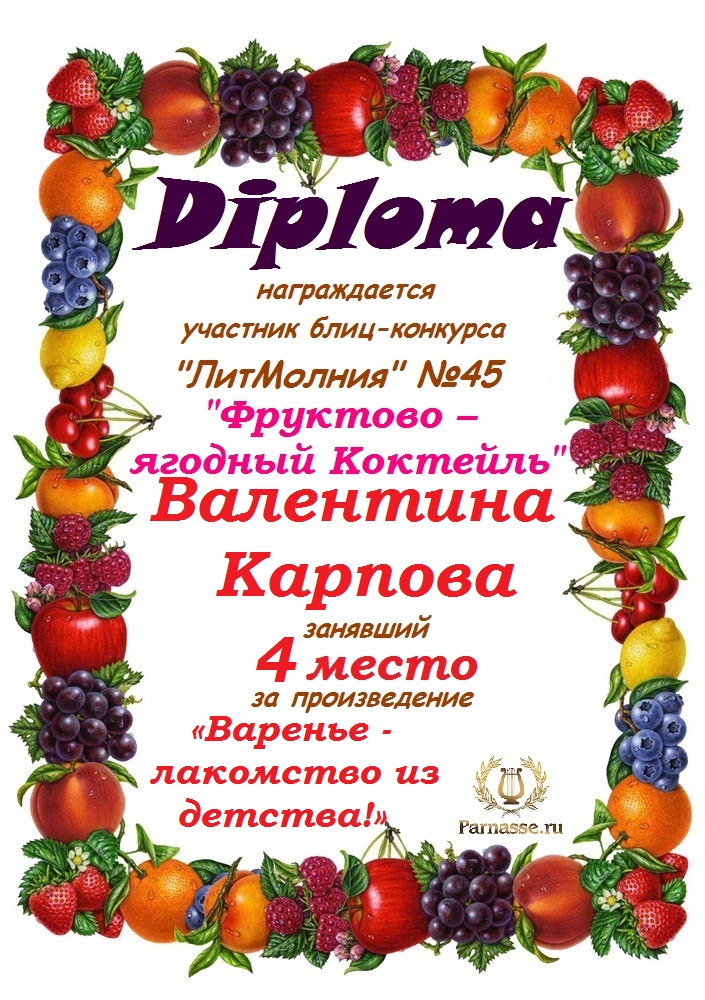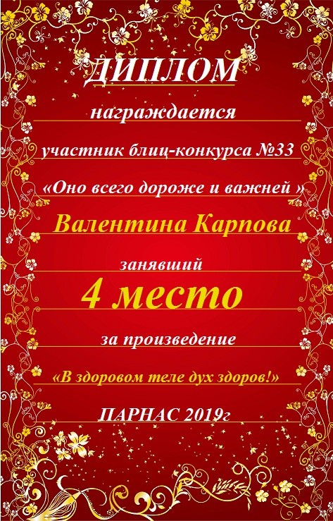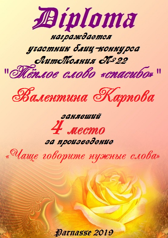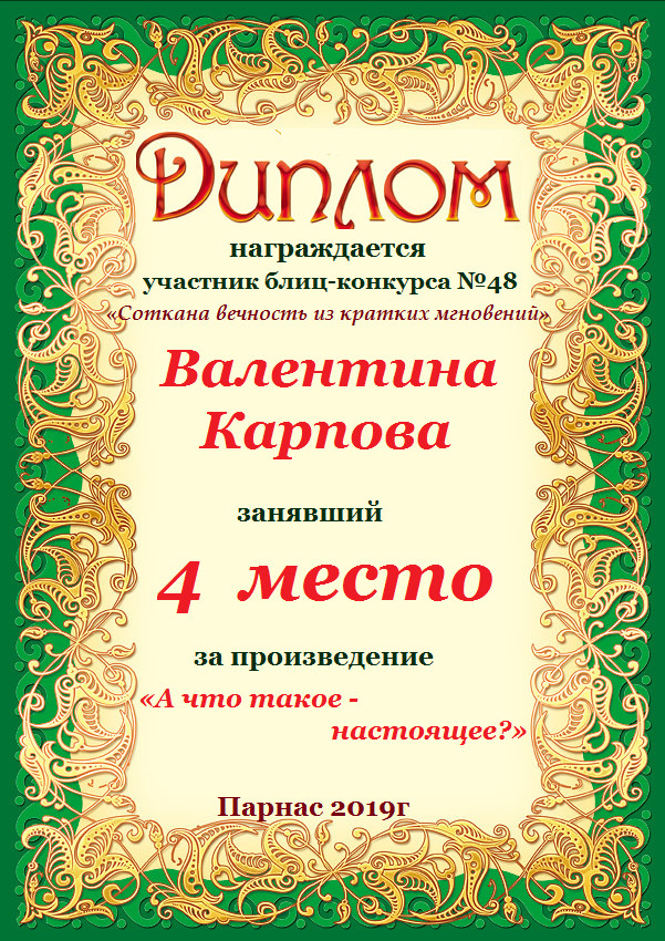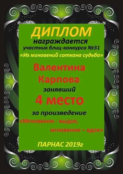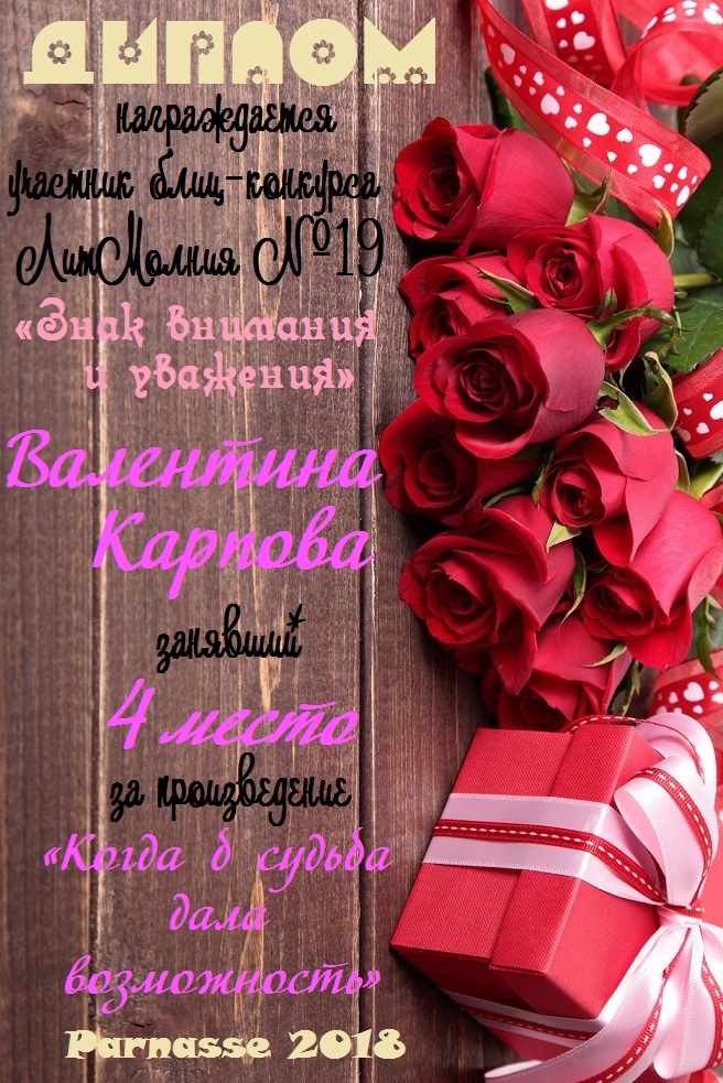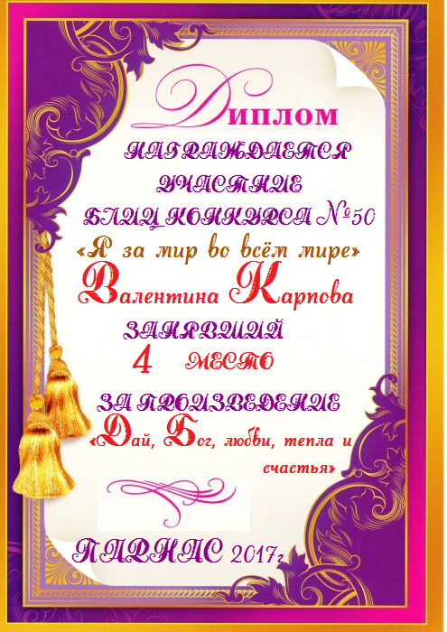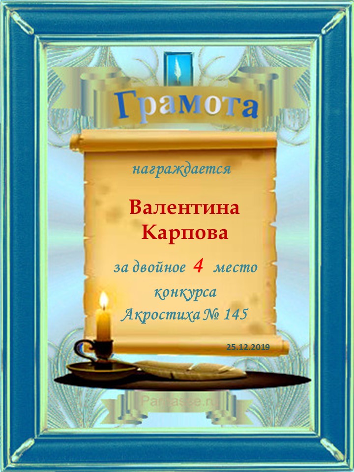 Грамота за 4 место в 145 конкурсе АКРОСТИХА (Альтернатива)! ПОЗДРАВЛЯЮ!
