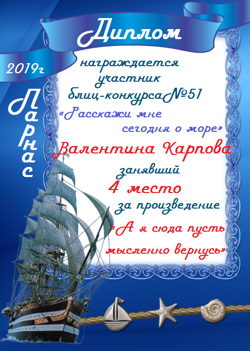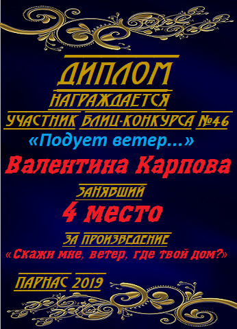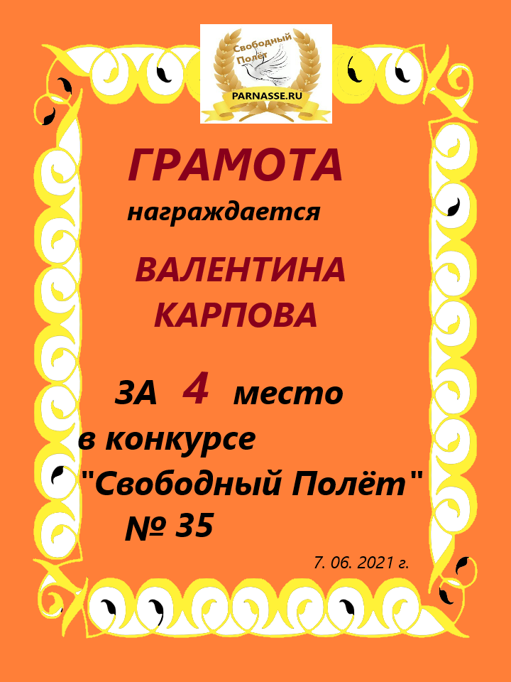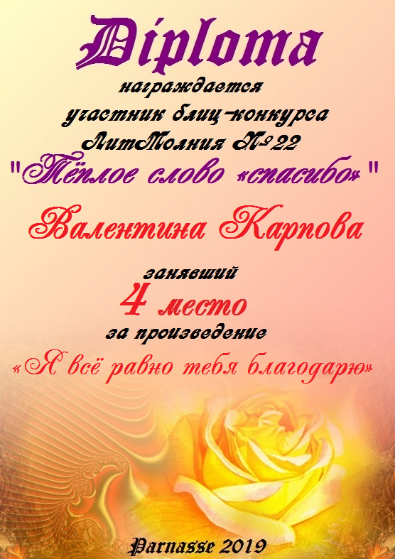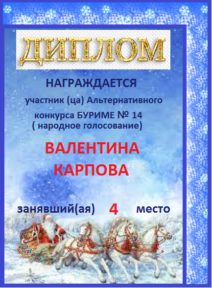 Грамота за 4 место в 148 конкурсе АКРОСТИХА (Альтернатива)! ПОЗДРАВЛЯЮ!