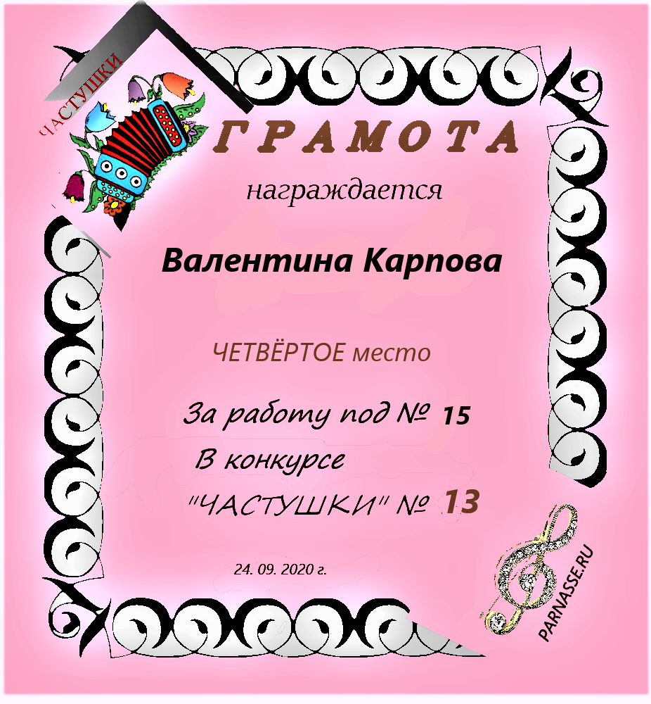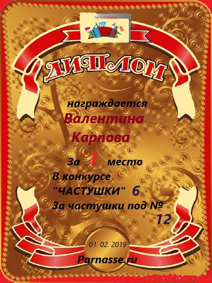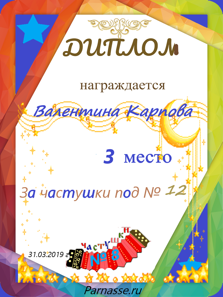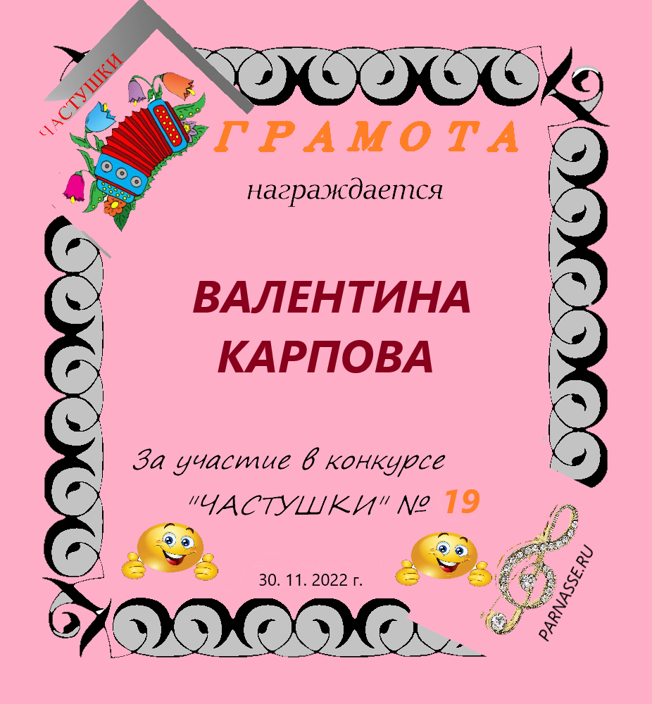 за участие в конкурсе "ЧАСТУШКИ" № 19