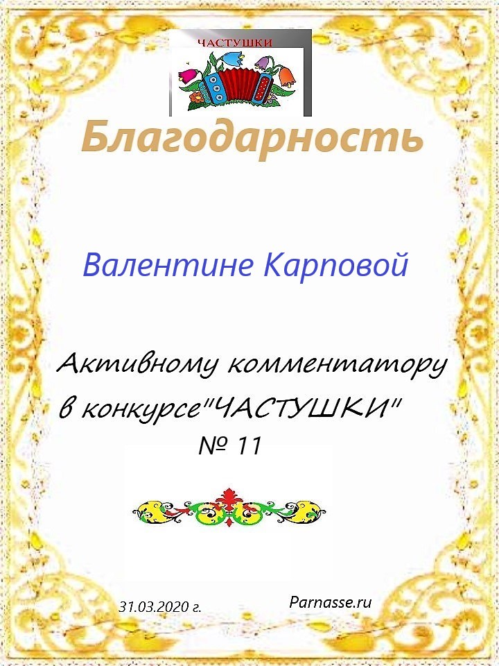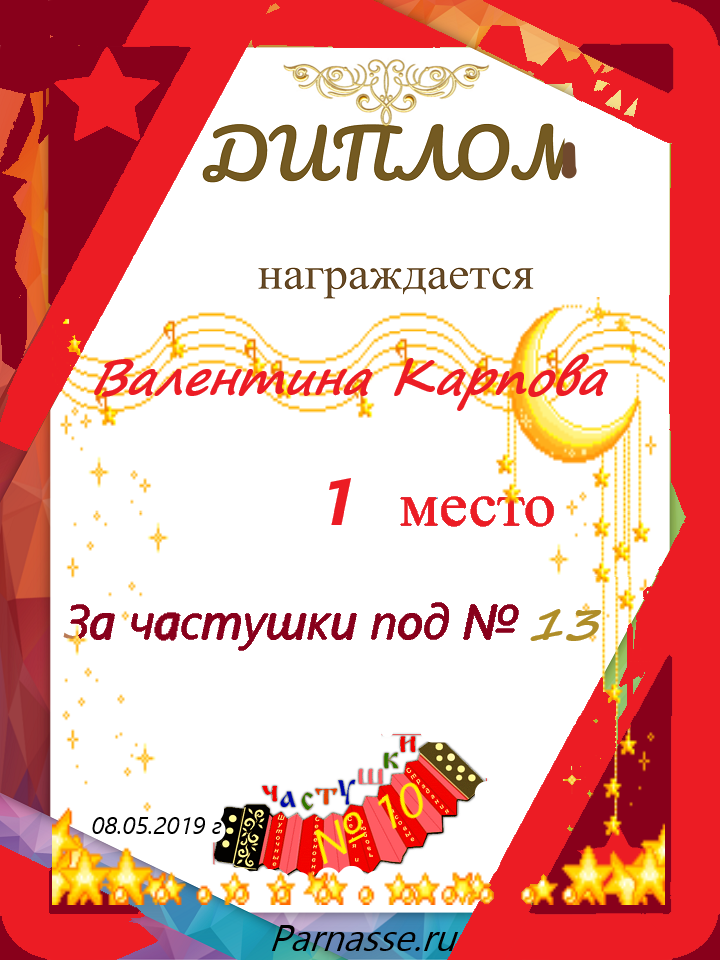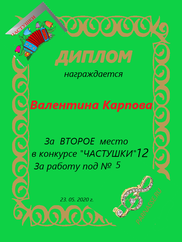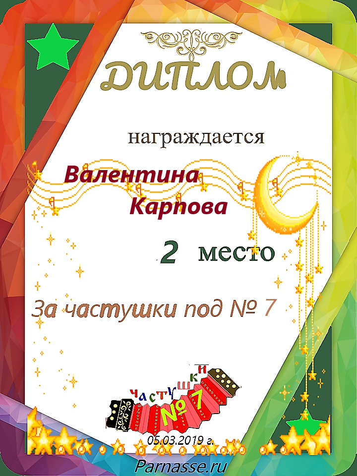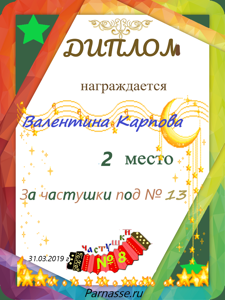 за участие в конкурсе "ЧАСТУШКИ" № 19