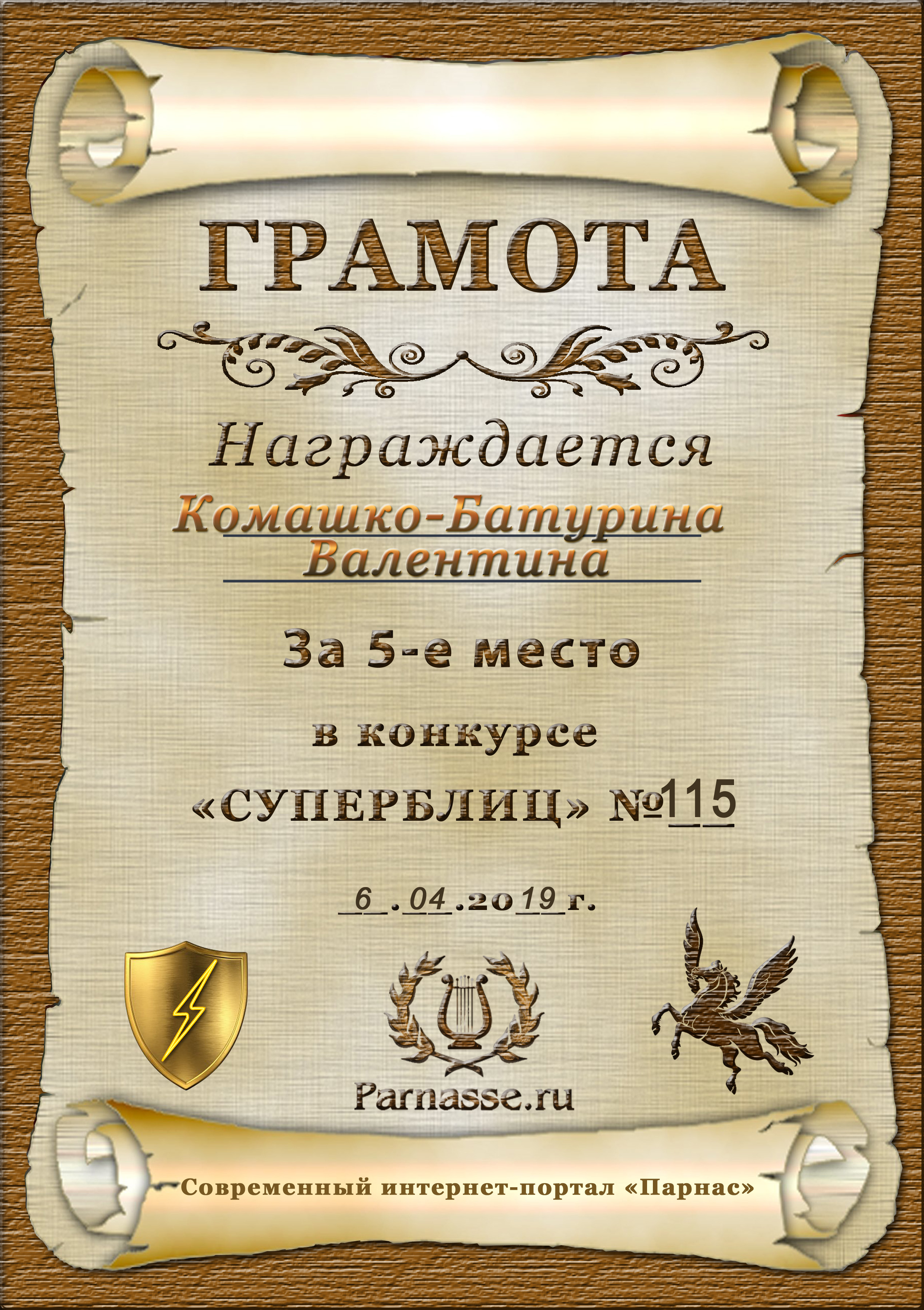 Грамота за двойное 5 место в 3 туре (частушки) 149 конкурса СУПЕРБЛИЦА! ПОЗДРАВЛЯЮ!