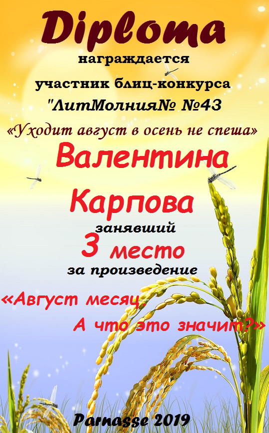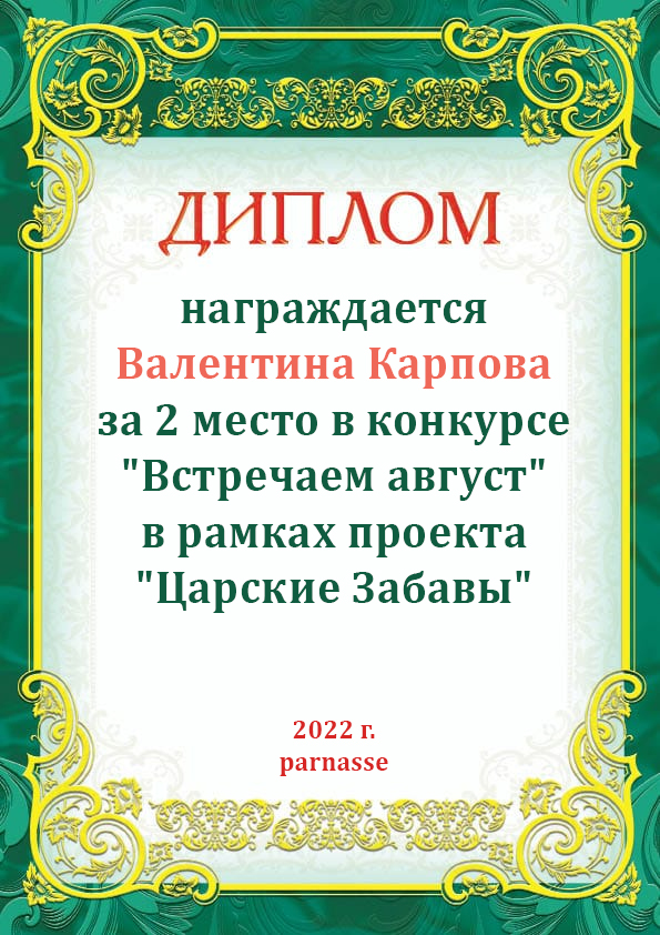 За 2 место в конкурсе "Встречаем август" в рамках проекта "Царские Забавы". Поздравляем!