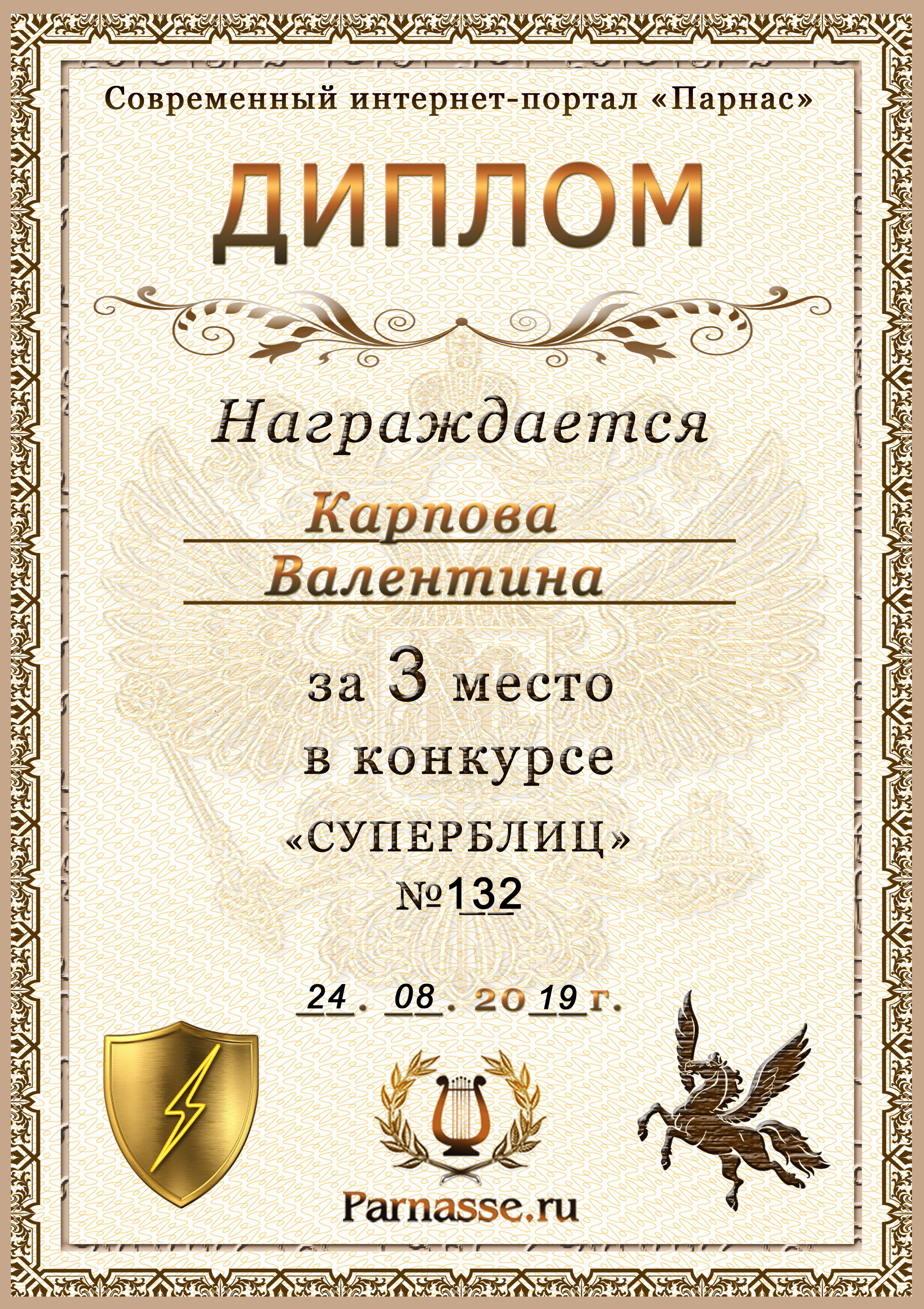 Диплом за победу во 2 туре в конкурсе СУПЕРБЛИЦА № 132! ПОЗДРАВЛЯЮ!