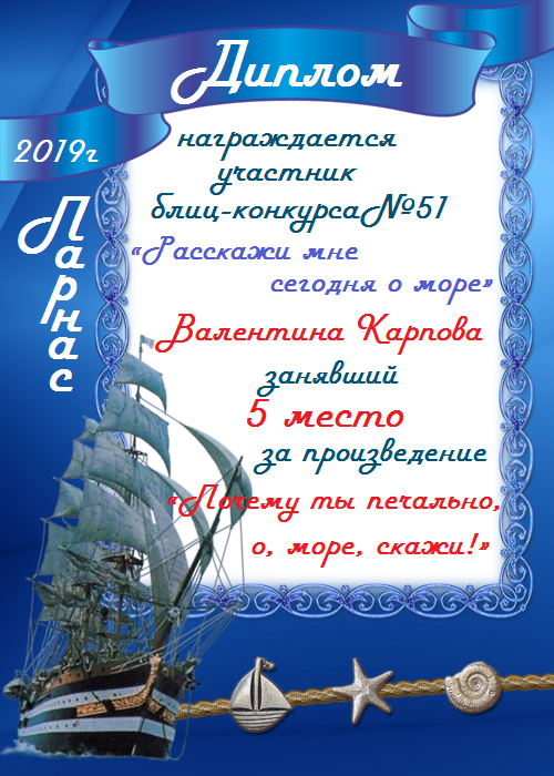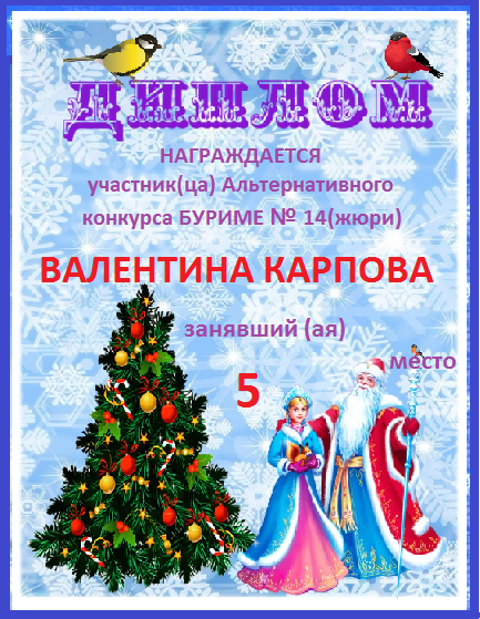 Грамота за 5 место в 145 конкурсе АКРОСТИХА (Альтернатива)! ПОЗДРАВЛЯЮ!