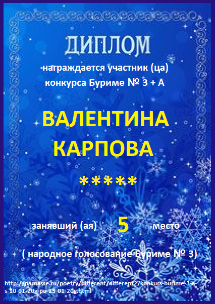 за 3 место в альтернативном конкурсе Буриме № 3 (народное голосование)