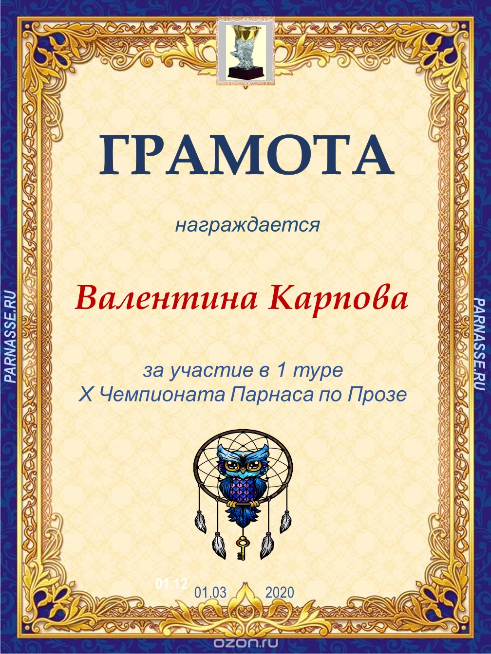 Огромное спасибо за участие в 3 туре X Чемпионата Парнаса по Прозе!
