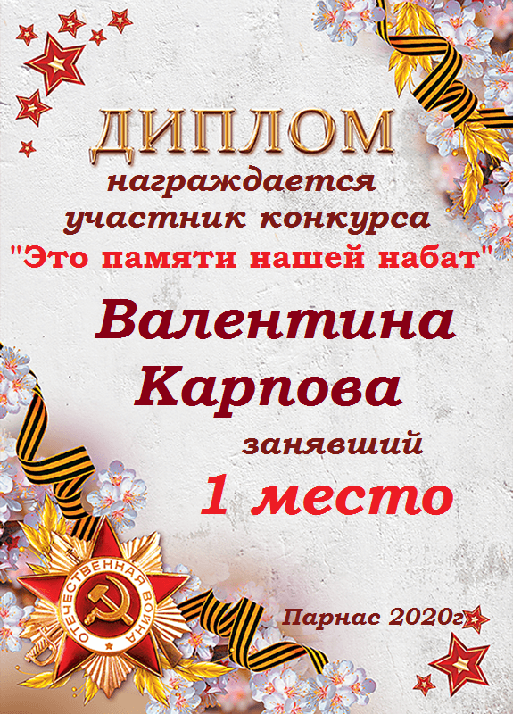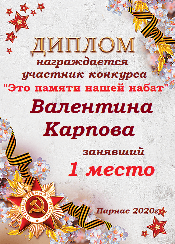 Первое место в судейском голосовании по итогам конкурса "Это памяти нашей набат"