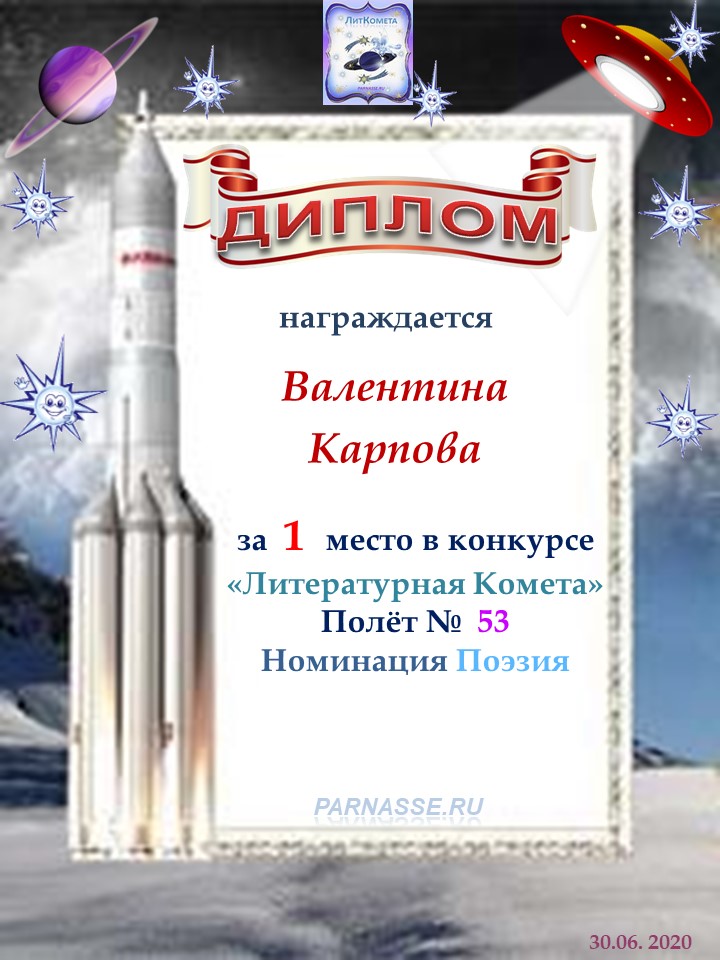 Поздравляем с 1 местом в конкурсе «Литературная Комета – Полёт № 32» - номинация поэзия!