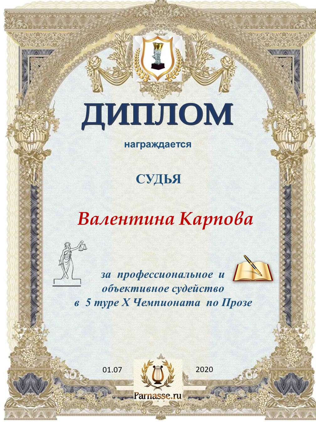 Спасибо за высокопрофессиональное и объективное судейство в 5 туре X Чемпионата Парнаса по Прозе!