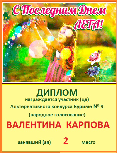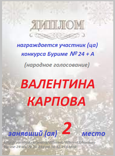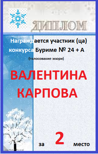 за 2 место в Альтерн.конкурсе Буриме № 24 (гол.жюри)