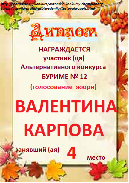 за 4 место в альтернативном конкурсе Буриме № 3 (народное голосование)