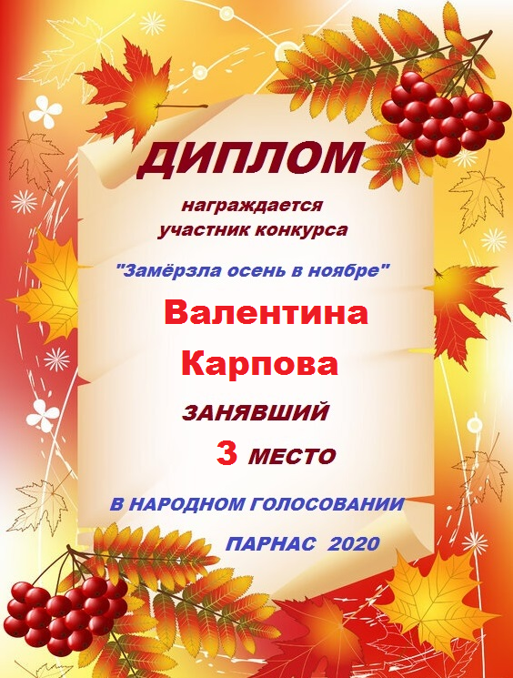 3 место в конкурсе "Картинки октября" в рамках проекта "Царские Забавы"