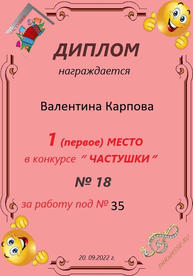 в конкурсе "ЧАСТУШКИ" № 18...за работу под № 35