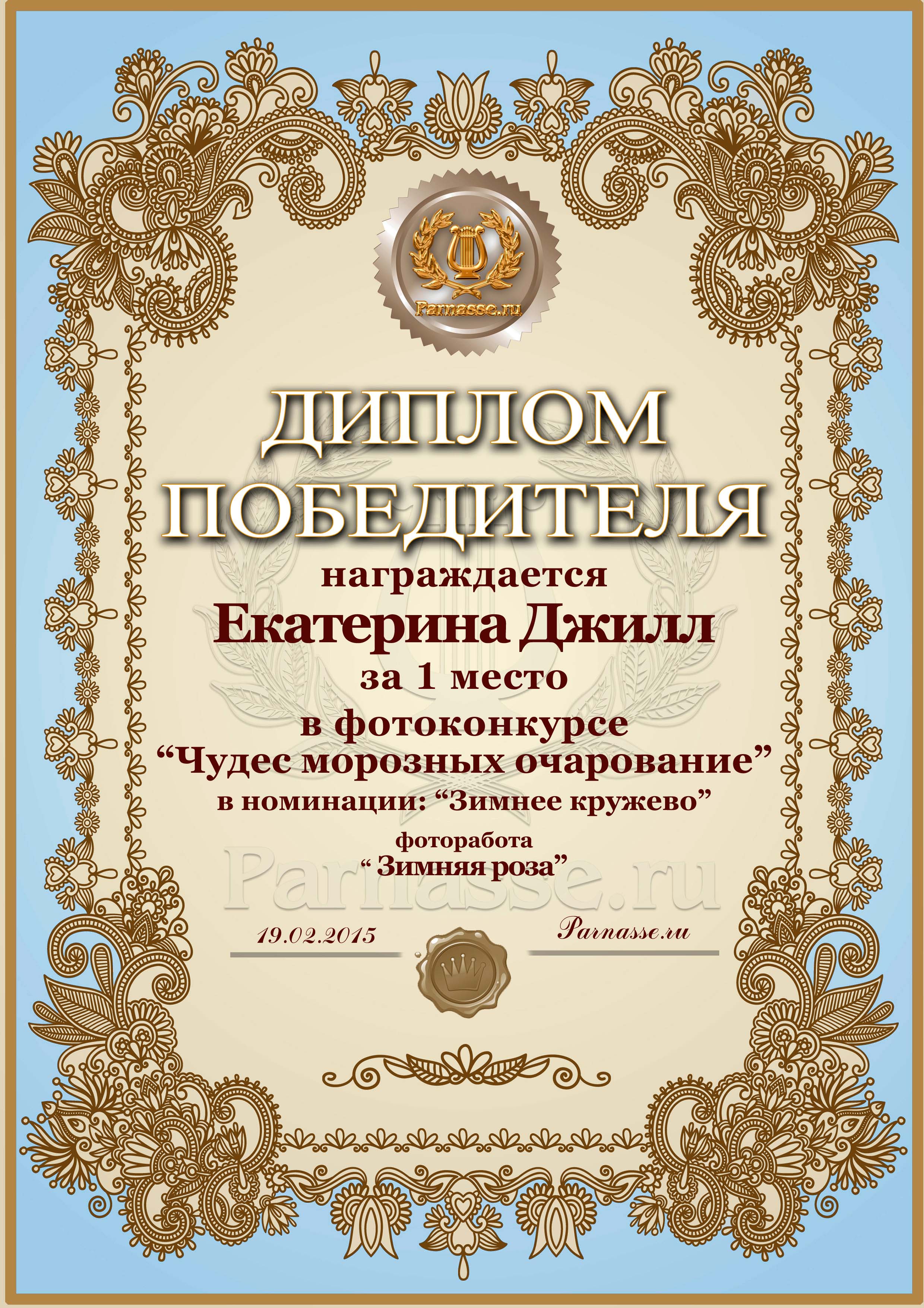 Диплом за 1 место в фотоконкурсе "Чудес морозных очарование"