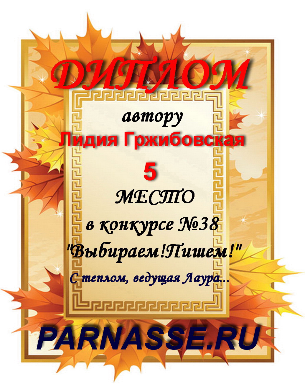 Диплом победителю в конкурсах Акростиха в связи с пятилетием конкурса Акростиха!