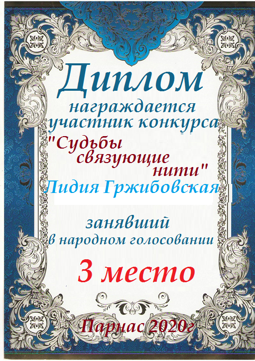 Третье место по итогам конкурса " Любовь – возвышенное чувство", народное голосование. Поздравляем с прекрасной победой!