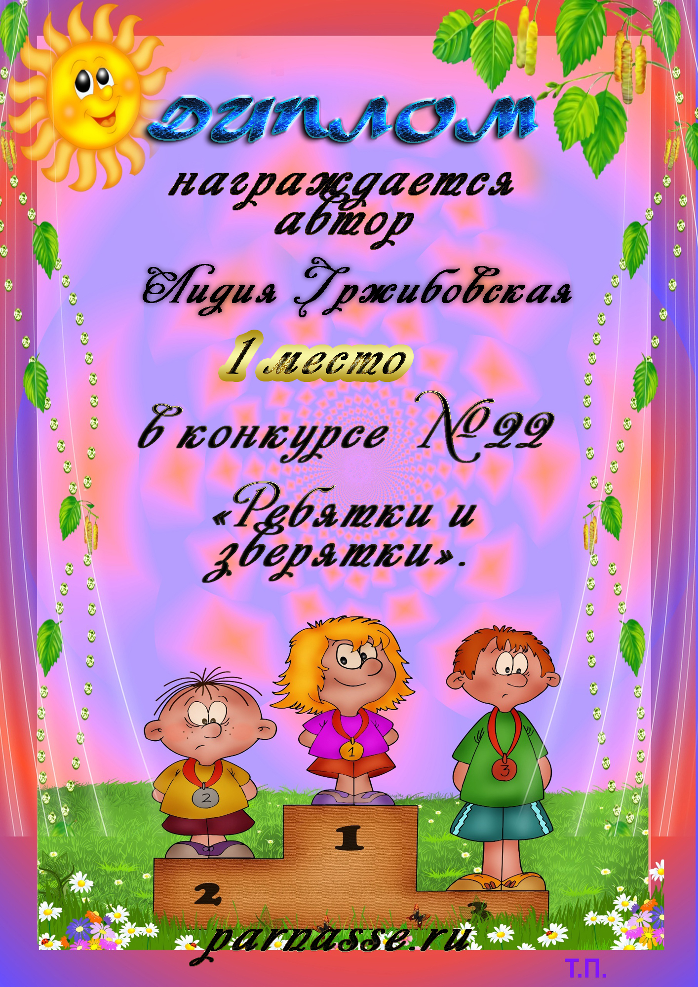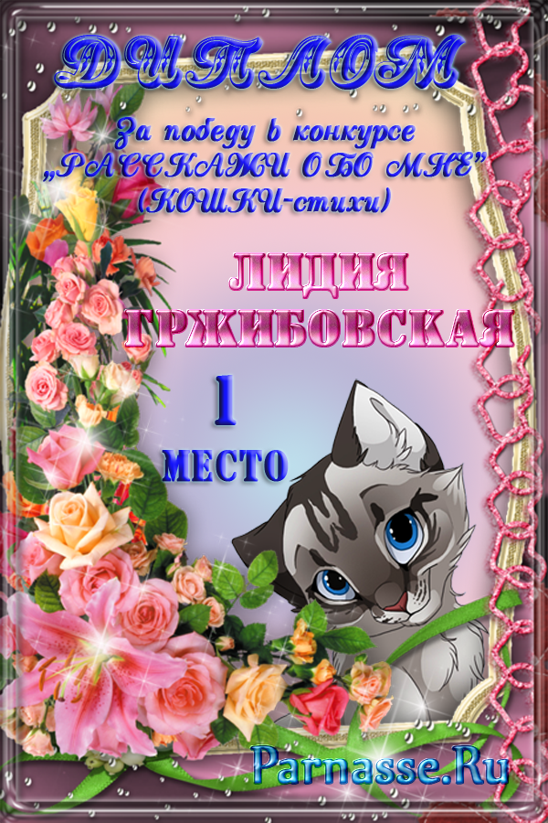 Диплом Победителя за 1 место в праздничном конкурсе "Поздравим Парнас с трёхлетием вместе!"