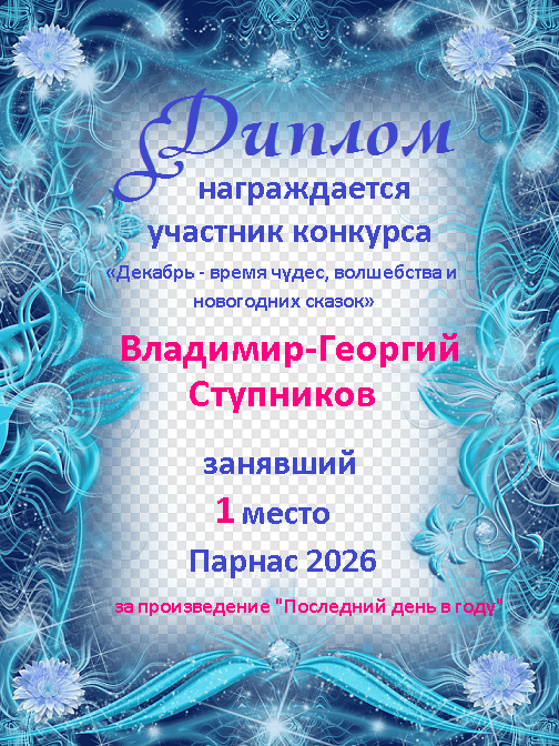 Поздравляю с занятым 3 местом в 11 туре XIV Чемпионата Парнаса по прозе!Георгий, Вы зря убрали свои работы. Они не хуже выставленных.