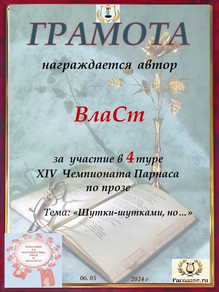 Спасибо за Ваше творчество в 4 туре XIV Чемпионата Парнаса по прозе!