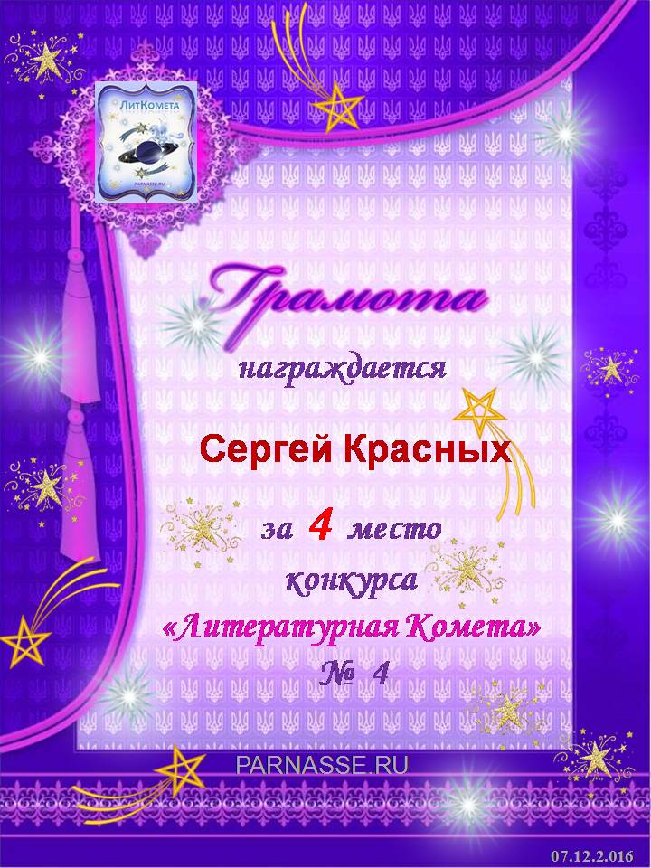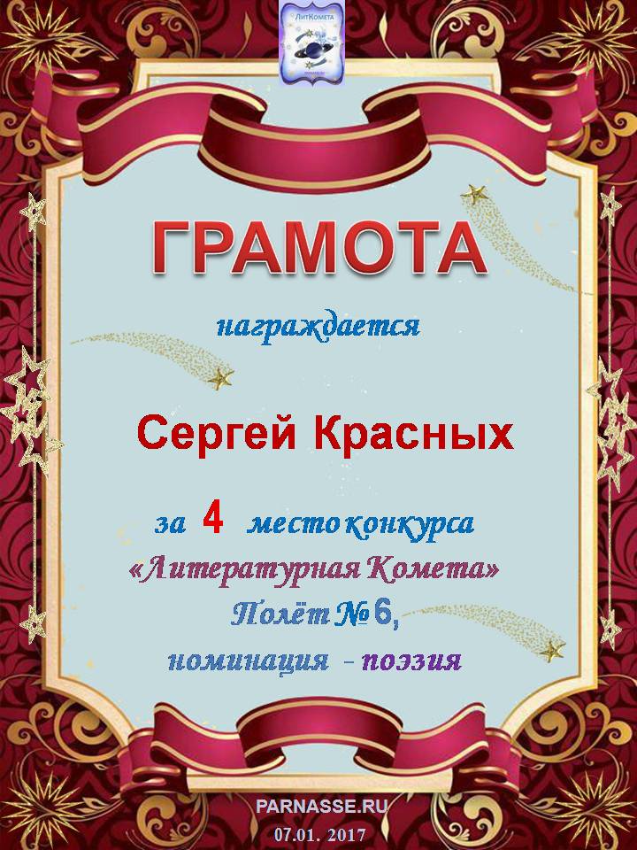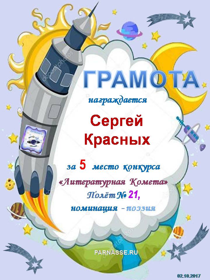 За 2 место конкурса "Литературная Комета" - Полёт № 25 - номинация Поэзия