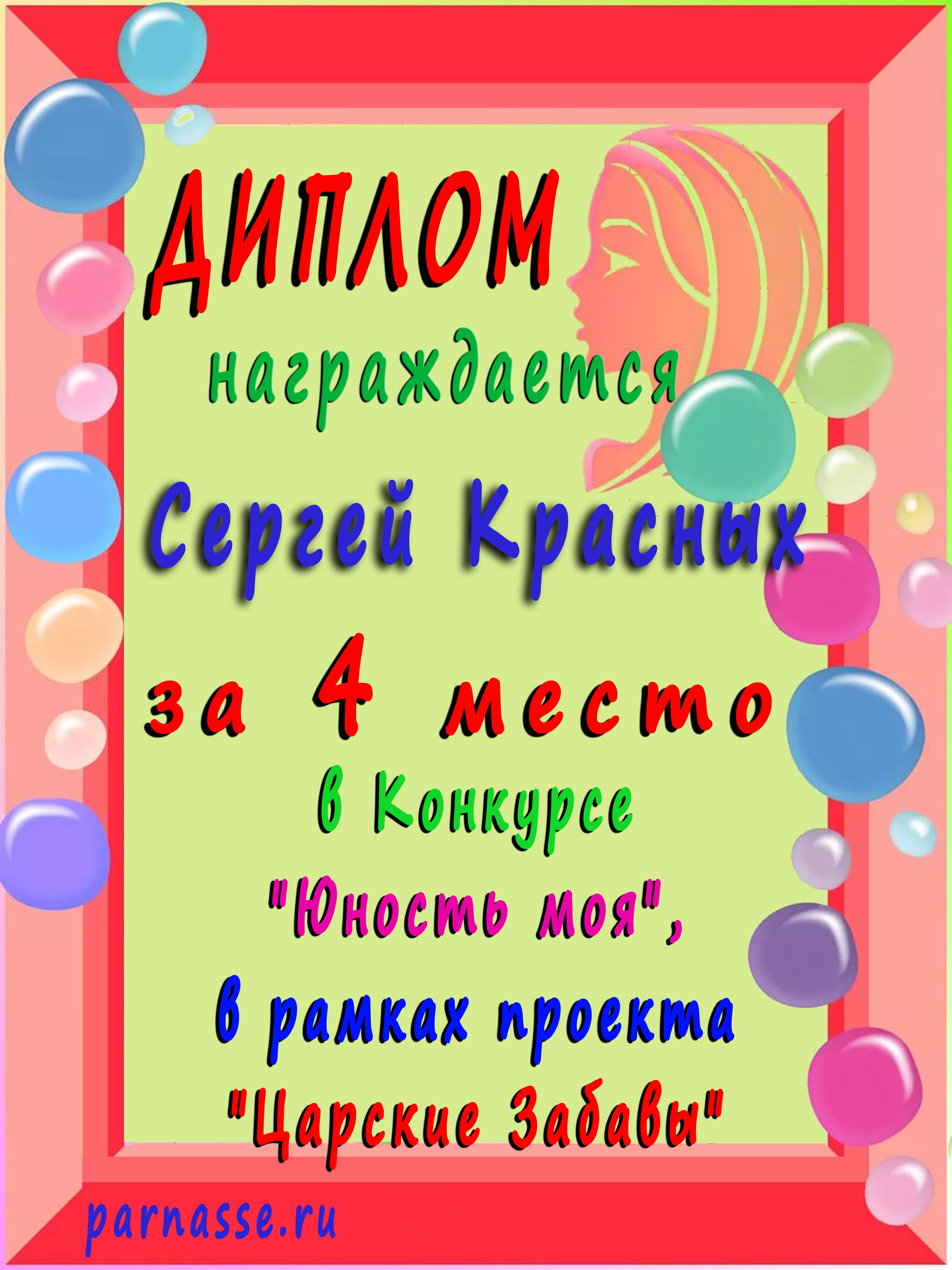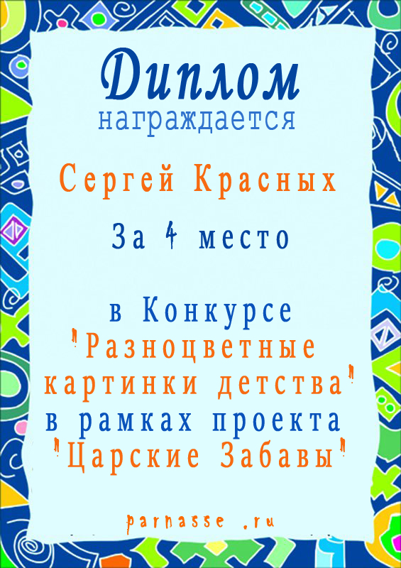 За 4 место в Конкурсе "Разноцветные картинки детства" в рамках проекта "Царские Забавы"