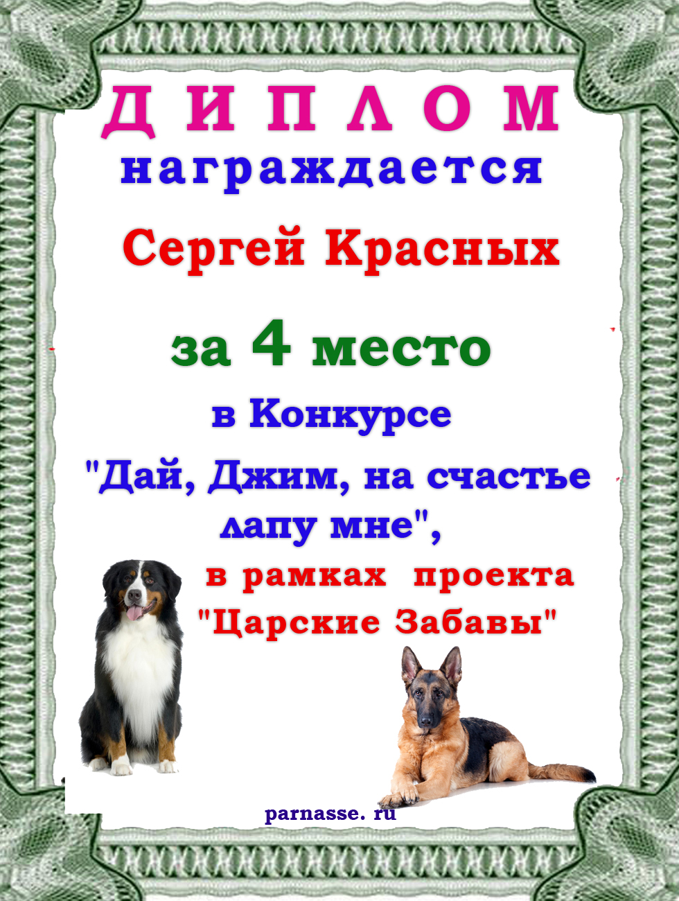 «4 место в Конкурсе "Дай, Джим, на счастье лапу мне". Поздравляем!»