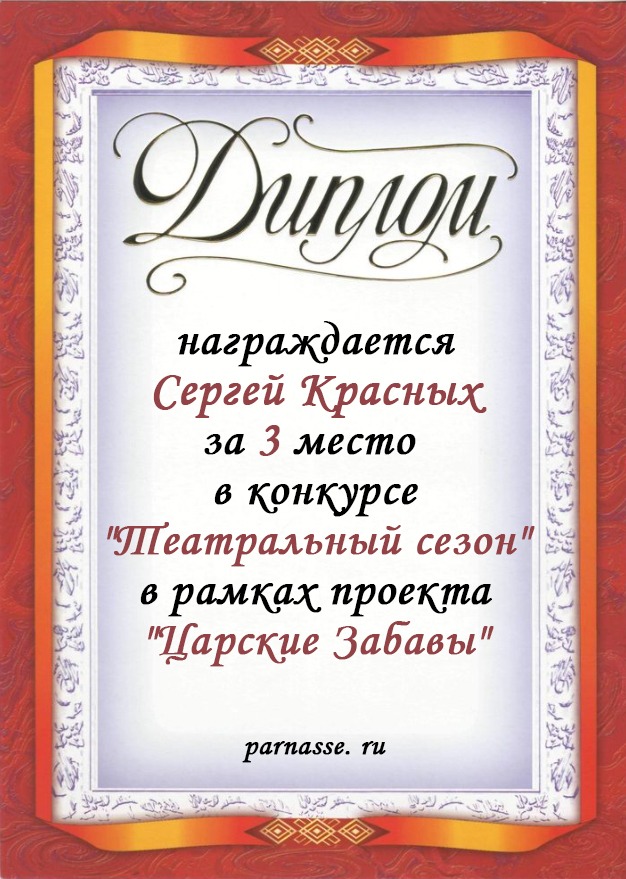 За 3 место в конкурсе "Театральный сезон" в рамках проекта "Царские Забавы". Поздравляем!