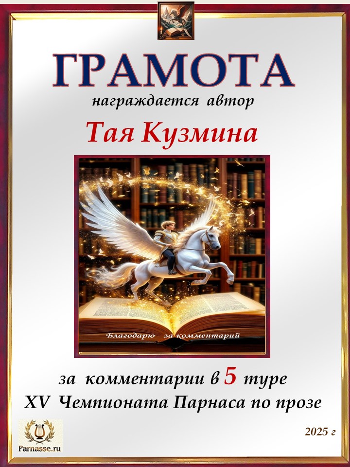 За неугасающую и неисчерпаемую творческую активность, постоянный контакт с Музой и признание сообществом "Парнасцев".От всей души желаем Вам, Таисия, здоровья, любви, успехов, благополучия, удачи и творческого вдохновения!