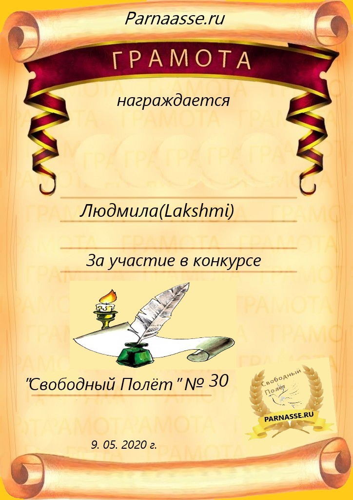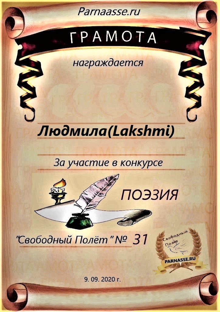 за участие в конкурсе"Свободный Полёт" № 31. ПОЭЗИЯ