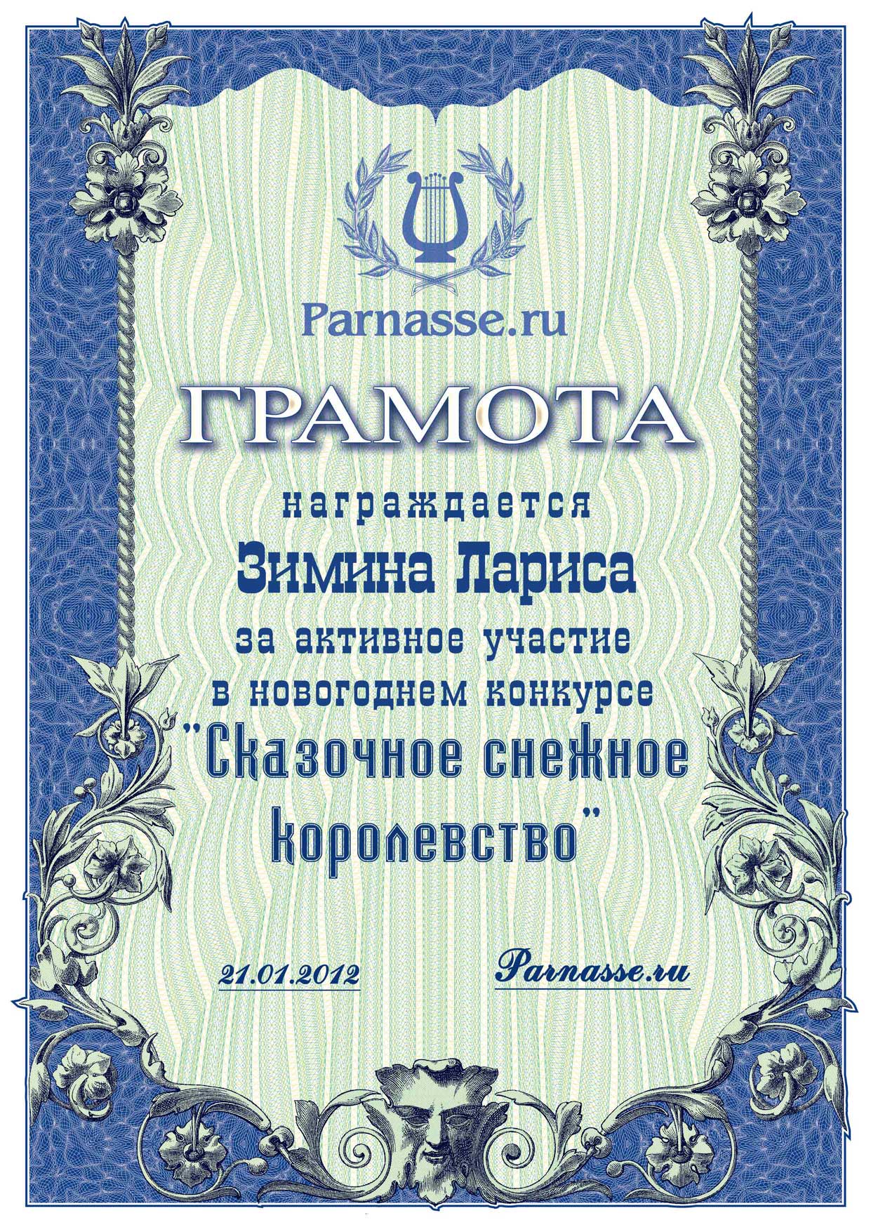 От лица Администрации творческого портала "Парнас" вручаем Вам этот памятный знак с самыми наилучшими пожеланиями! Пусть Вас весь год не покидает творческий запал, удача, а здоровье будет столь же крепким и нерушимым, как и традиция Новогоднего праздника! Счастья, успехов и любви Вам и Вашей семье, друзьям и близким!
