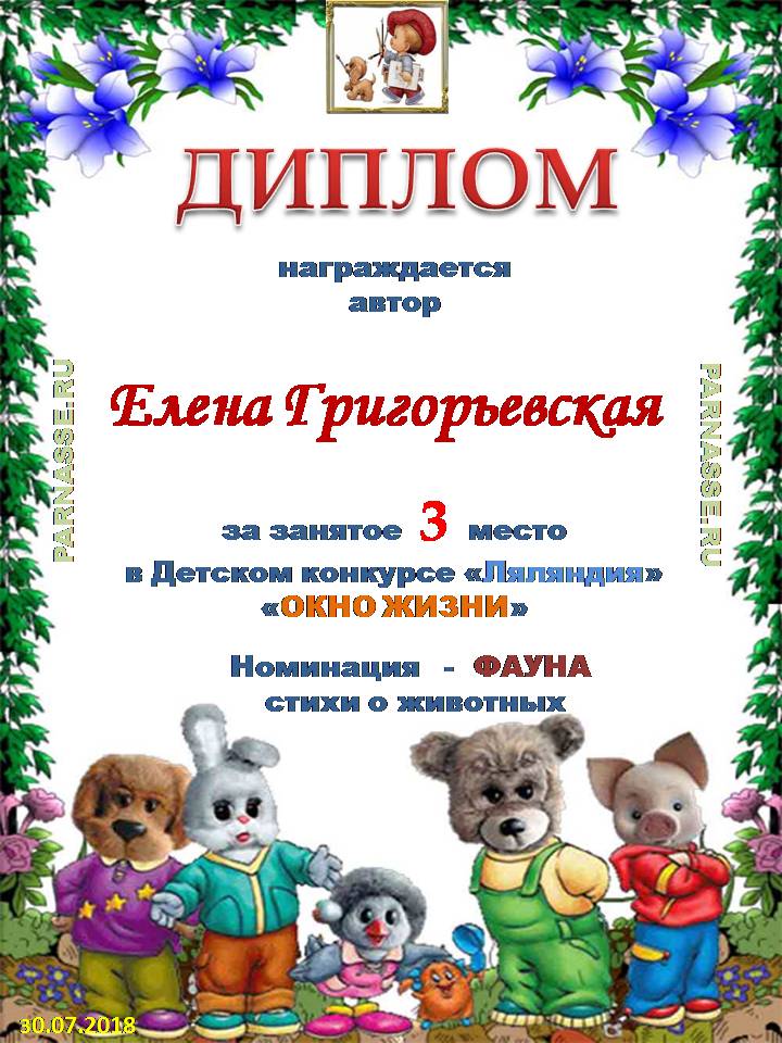 Третье место в ЛитКонкурсе "Творческие лучи июльского солнца", в поэтической номинации "Жара поэту не помеха". Судейское голосование. Поздравляем с прекрасной победой! Спасибо за активное участие! Ждем Ваши великолепные, изумительные стихи на новых ЛитКонкурсах.. Желаем много радости, счастья и море положительных эмоций!