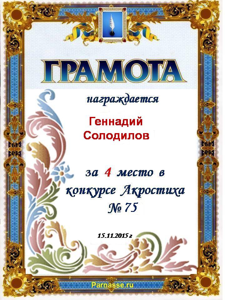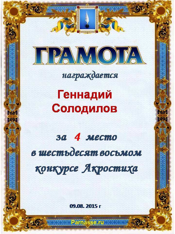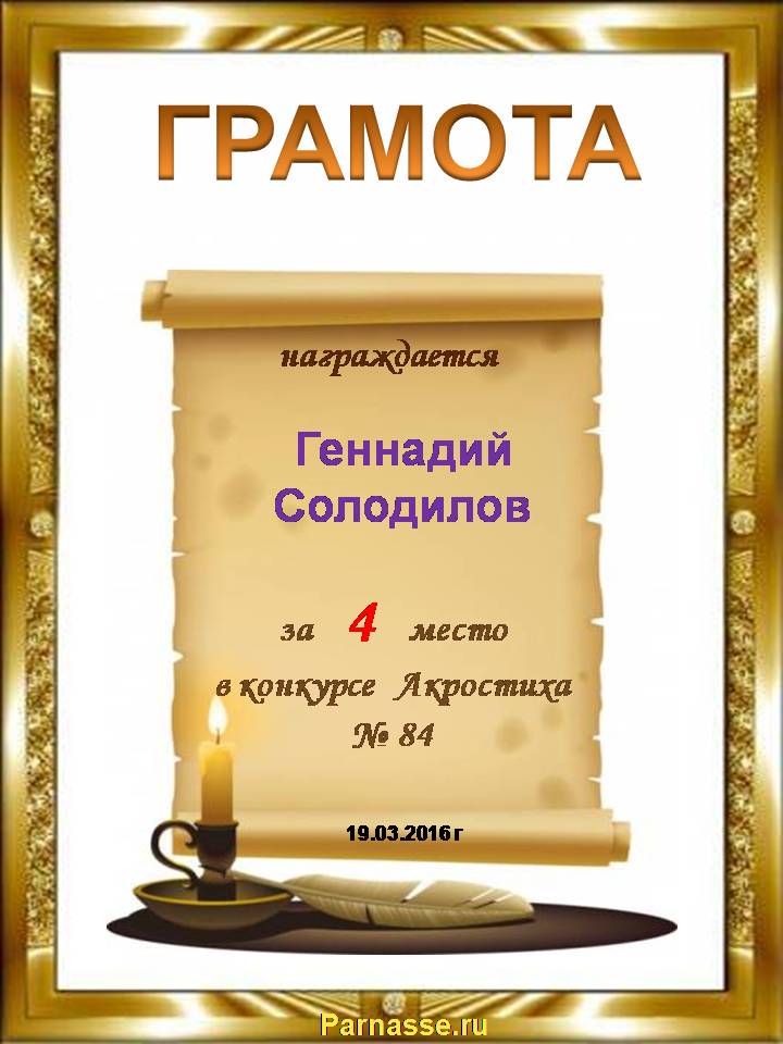 Грамота за двойное 4 место в 96 конкурсе АКРОСТИХА (Альтернатива)! ПОЗДРАВЛЯЮ!